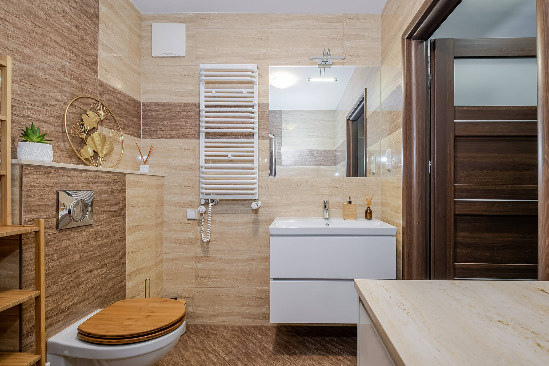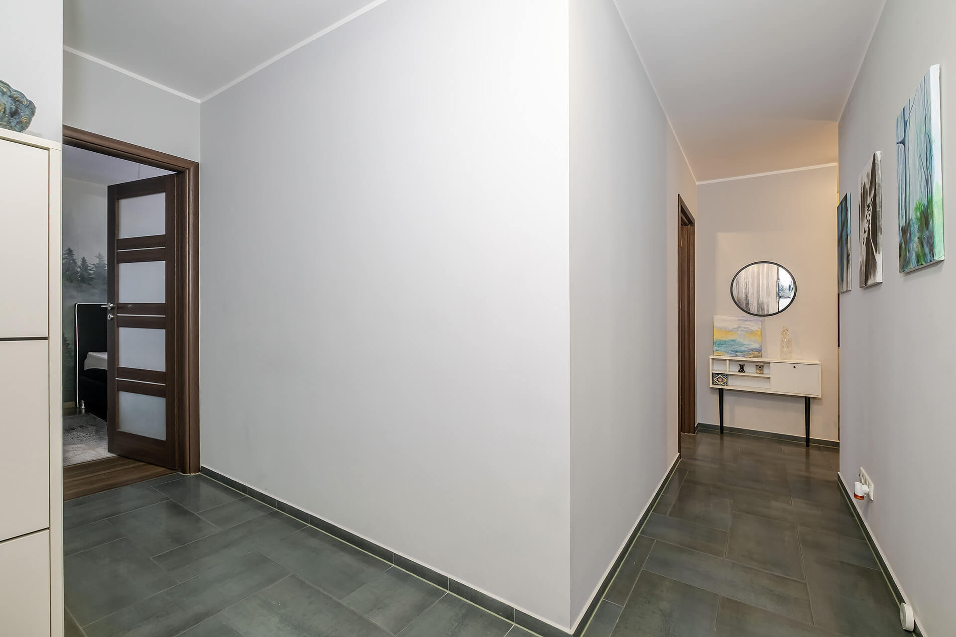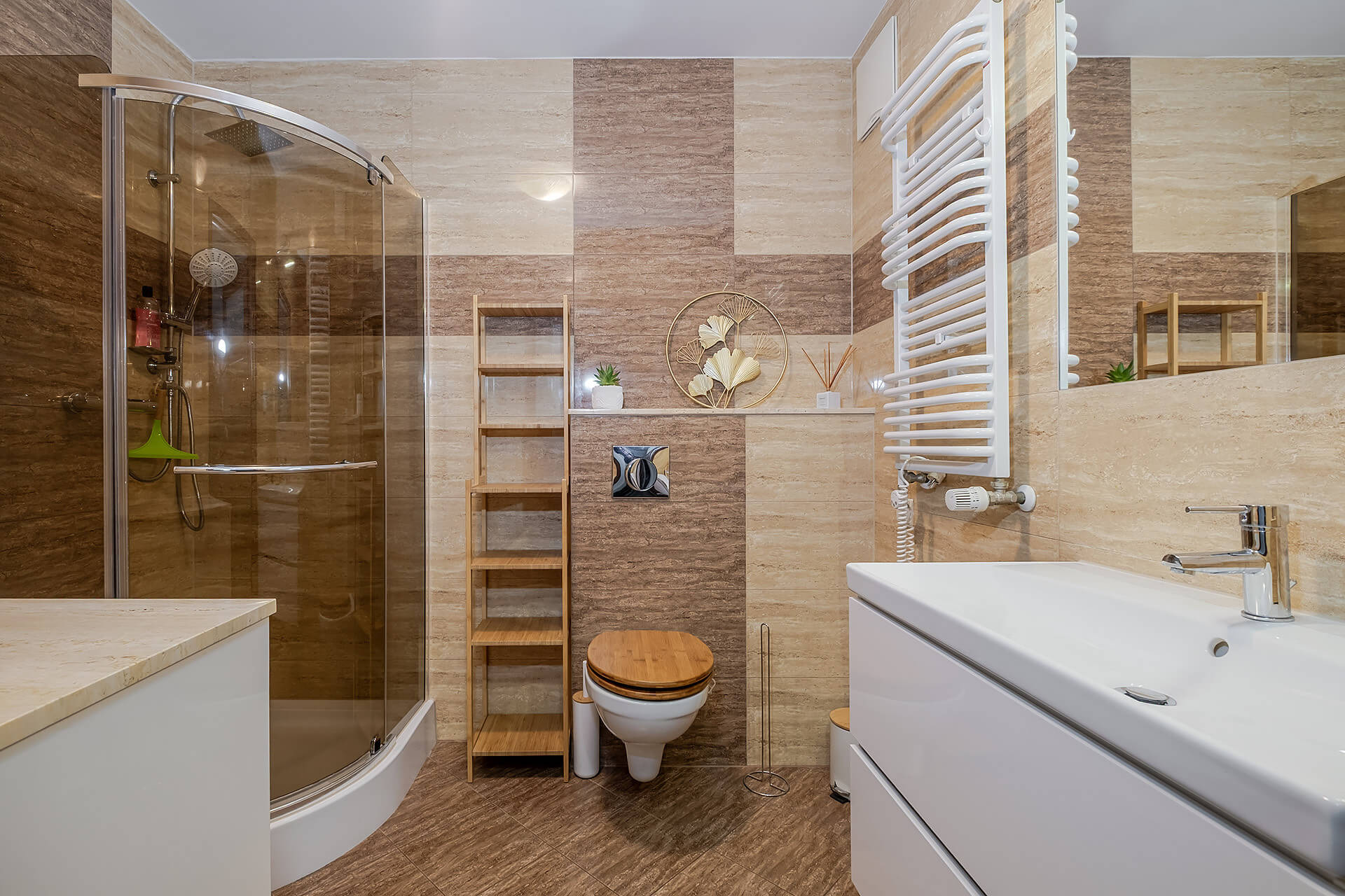 Standard wykończenia nieruchomości jest bardzo wysoki. W kuchni zastosowano eleganckie elementy wykończeniowe z naturalnego granitu, który został również wykorzystany na balkonie, podkreślając spójność i trwałość użytych materiałów. Łazienka została wykończona naturalnym kamieniem – trawertynem, nadającym wnętrzu luksusowy i ponadczasowy charakter. Dodatkowym atutem jest zabudowa kuchni oraz garderoby wykonana na wymiar przez stolarza, co zapewnia wysoką funkcjonalność, estetykę oraz idealne dopasowanie do przestrzeni.