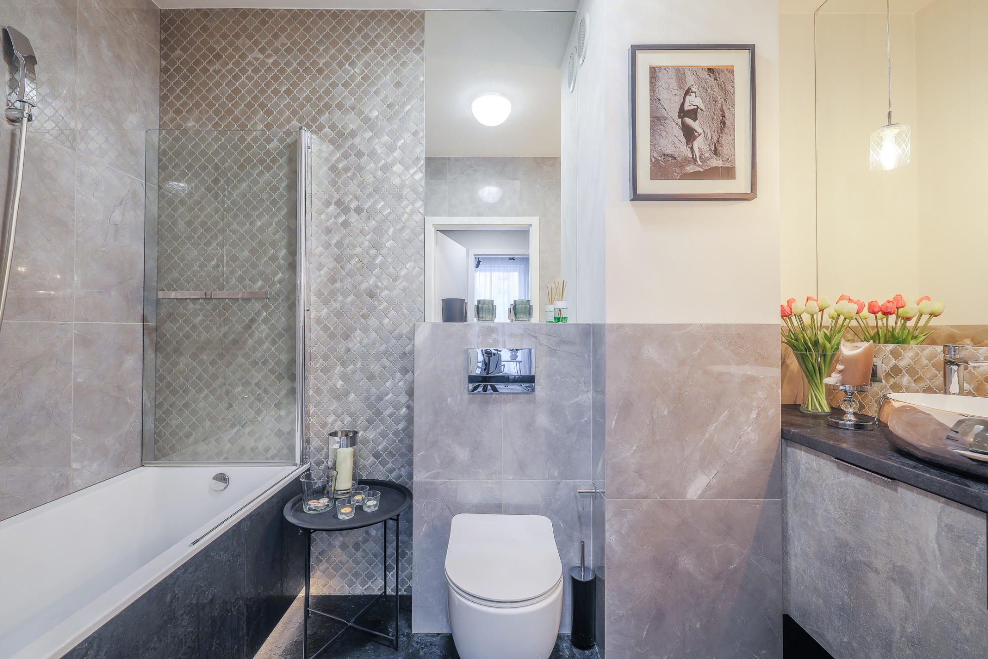 Do dyspozycji mieszkańców jest również osobna łazienka z wanną oraz praktyczne pomieszczenie gospodarcze, które pełni funkcję pralni i schowka.