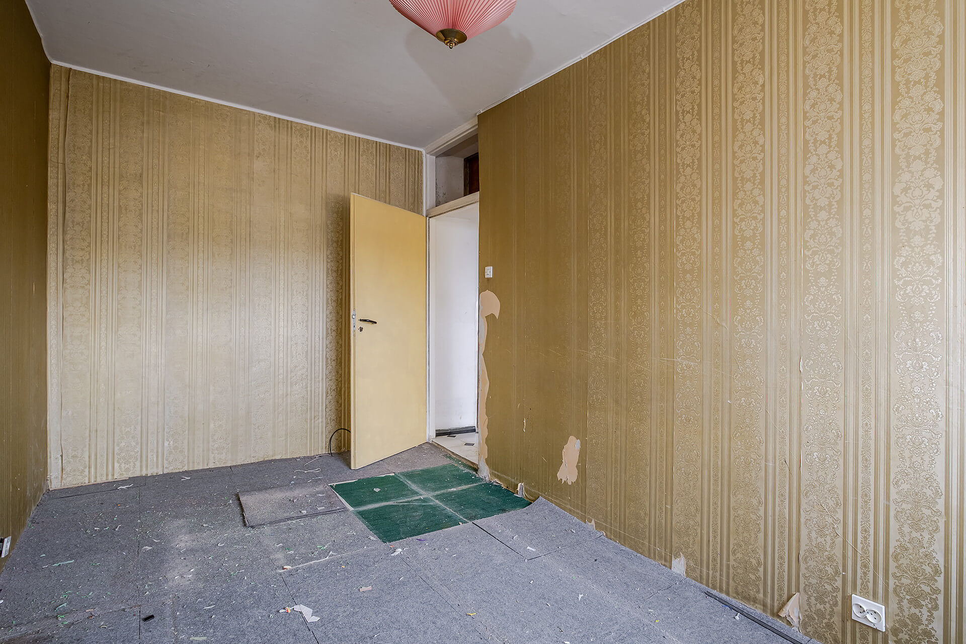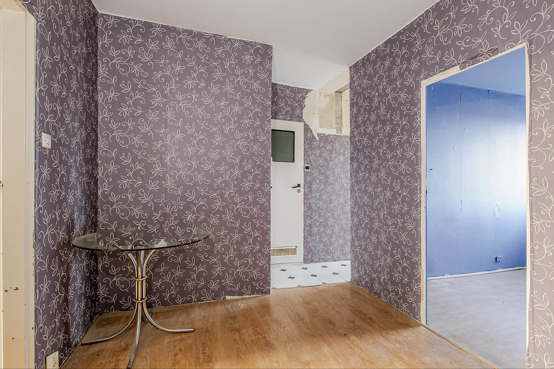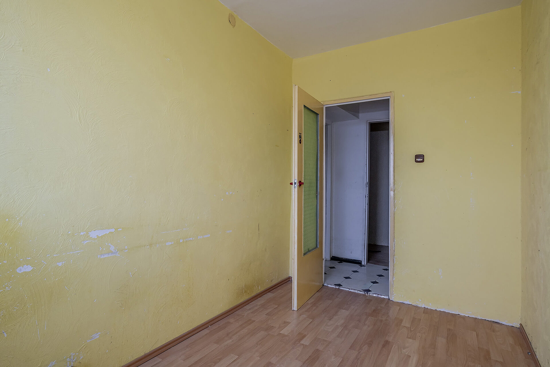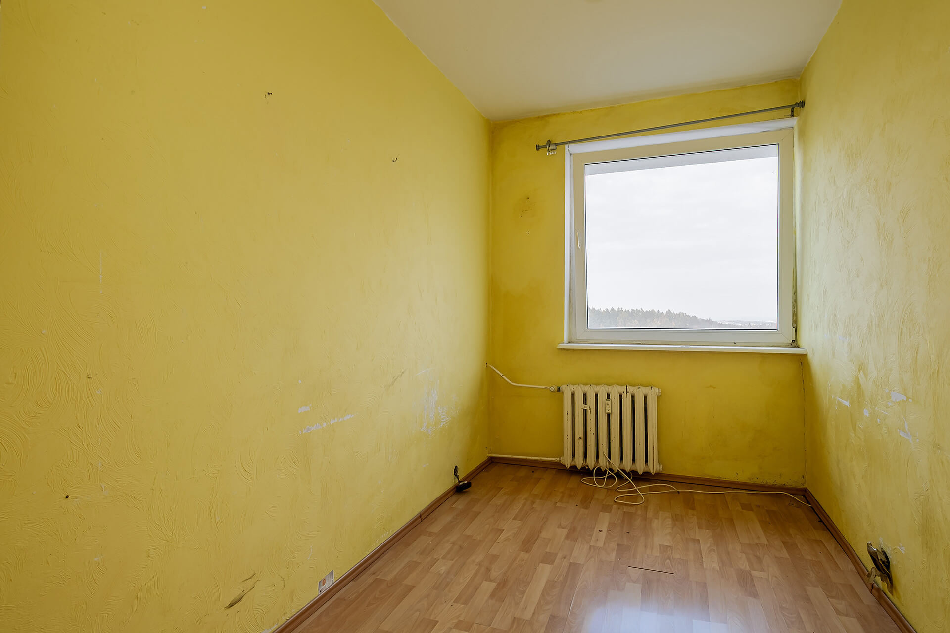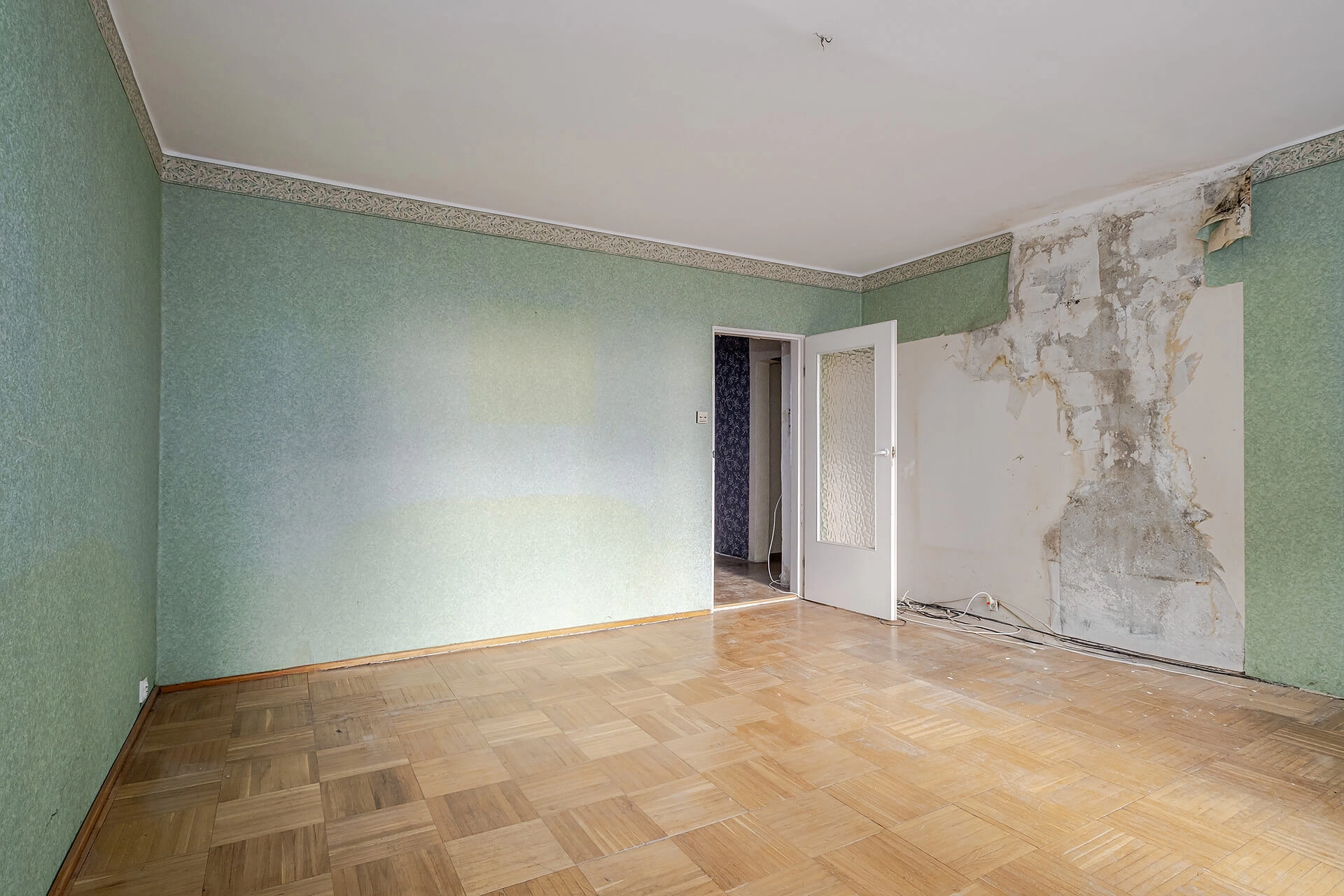 Na podłogach znajdziemy panele, parkiet oraz płytki. Przeznaczone jest do generalnego remontu.