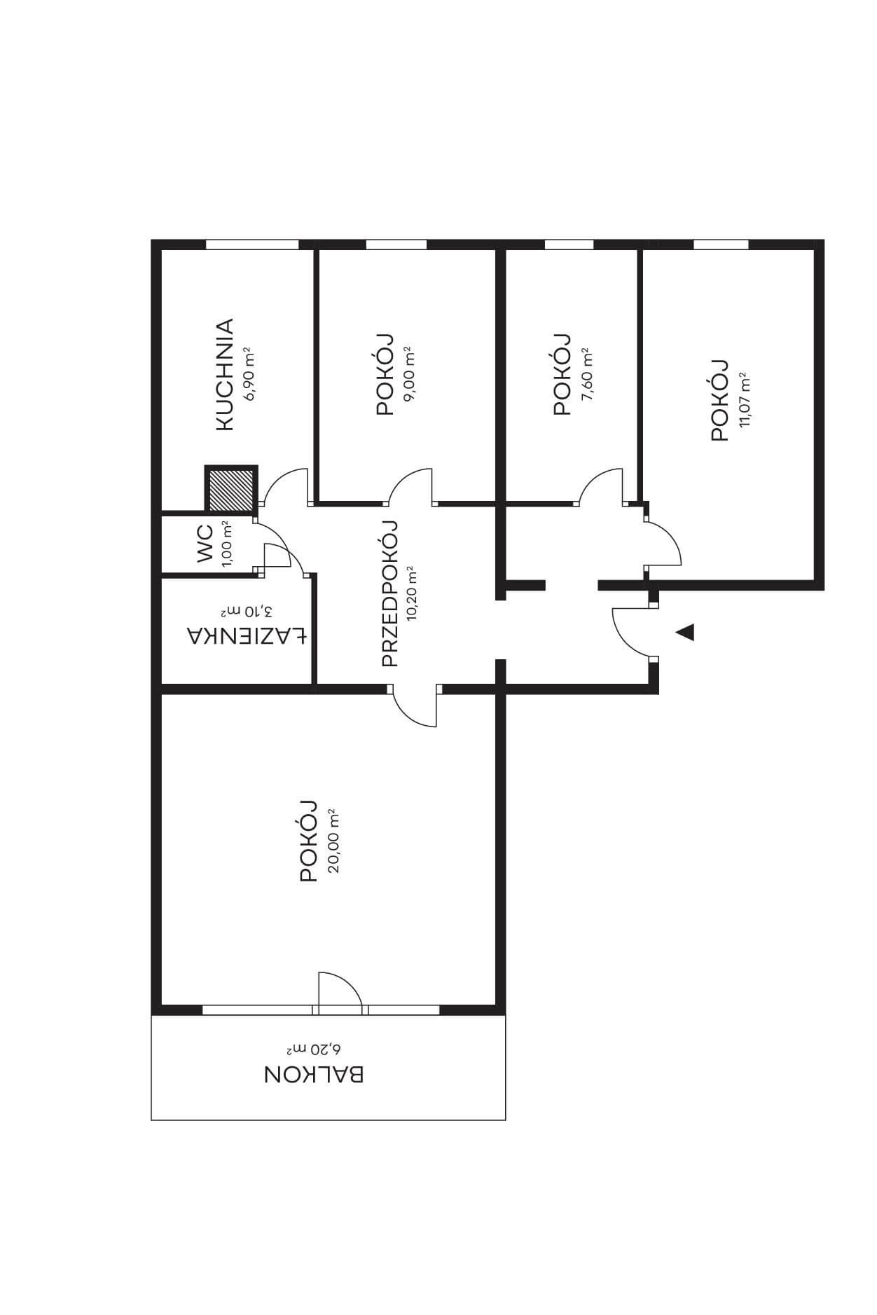 – 4 pokoje (20,00 m2; 11,70 m2; 7,60 m2, oraz 9,0 m2); z największego z nich wyjście na duży balkon,
