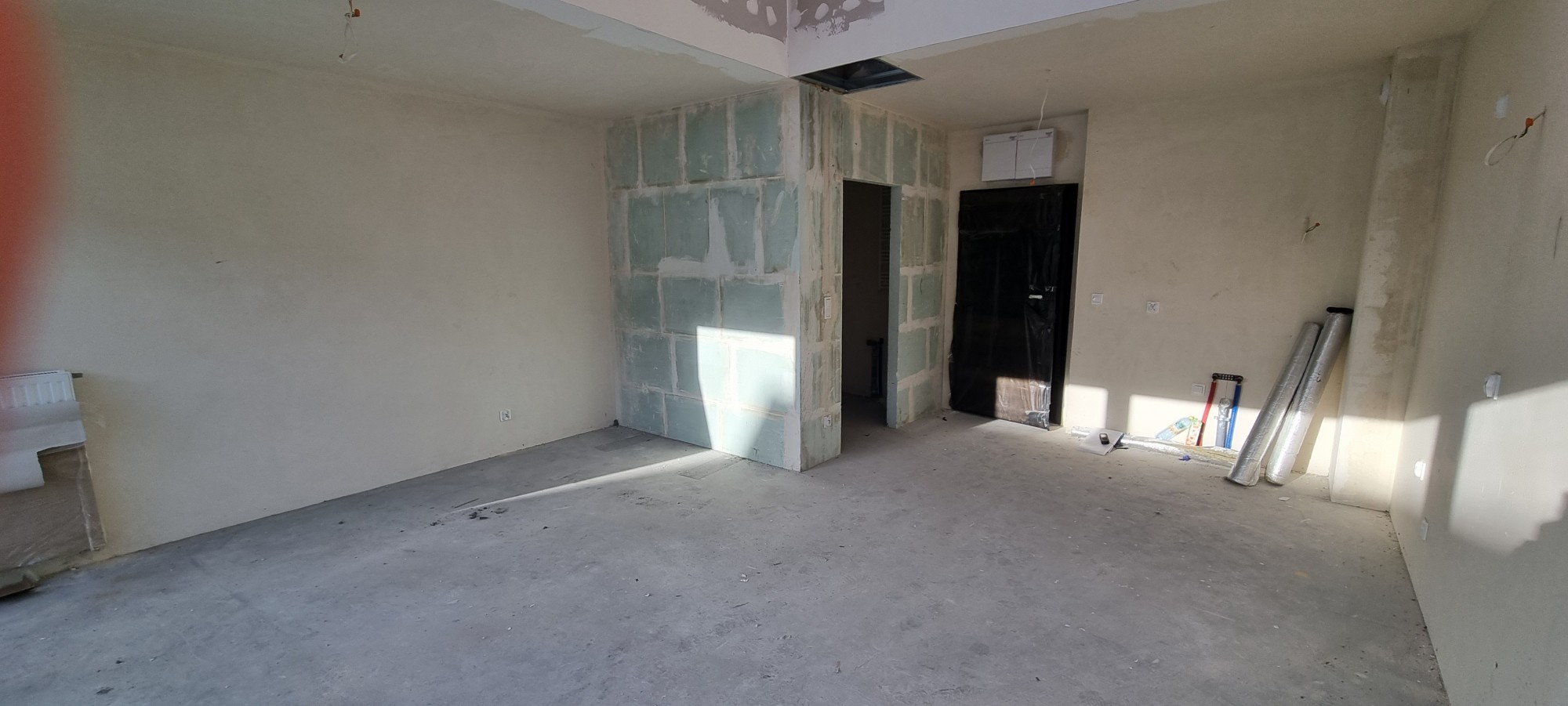 Mieszkanie jest w stanie deweloperskim, do własnego wykończenia i aranżacji. Składa się ono z pokoju dziennego z aneksem kuchennym, antresolą i wyjściem na duży balkon oraz łazienki z toaletą.