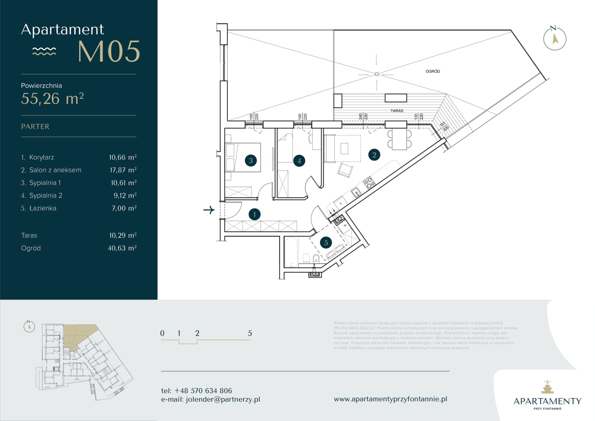 Na sprzedaż apartament o pow. 55,26 m2 na parterze budynku składający się z :