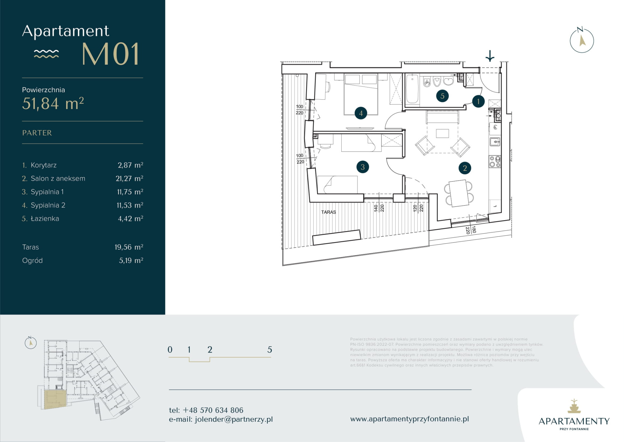 Na sprzedaż apartament o pow. 51,84 m2 na parterze budynku składający się z :