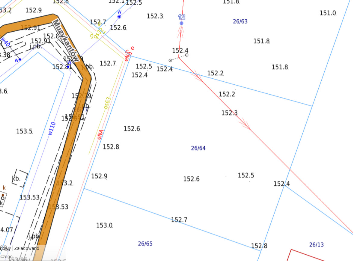 Działka ma regularny, prostokątny kształt i jest położona jest przy ulicy Muzykantów, która jest częściowo wyłożona płytami jumbo.