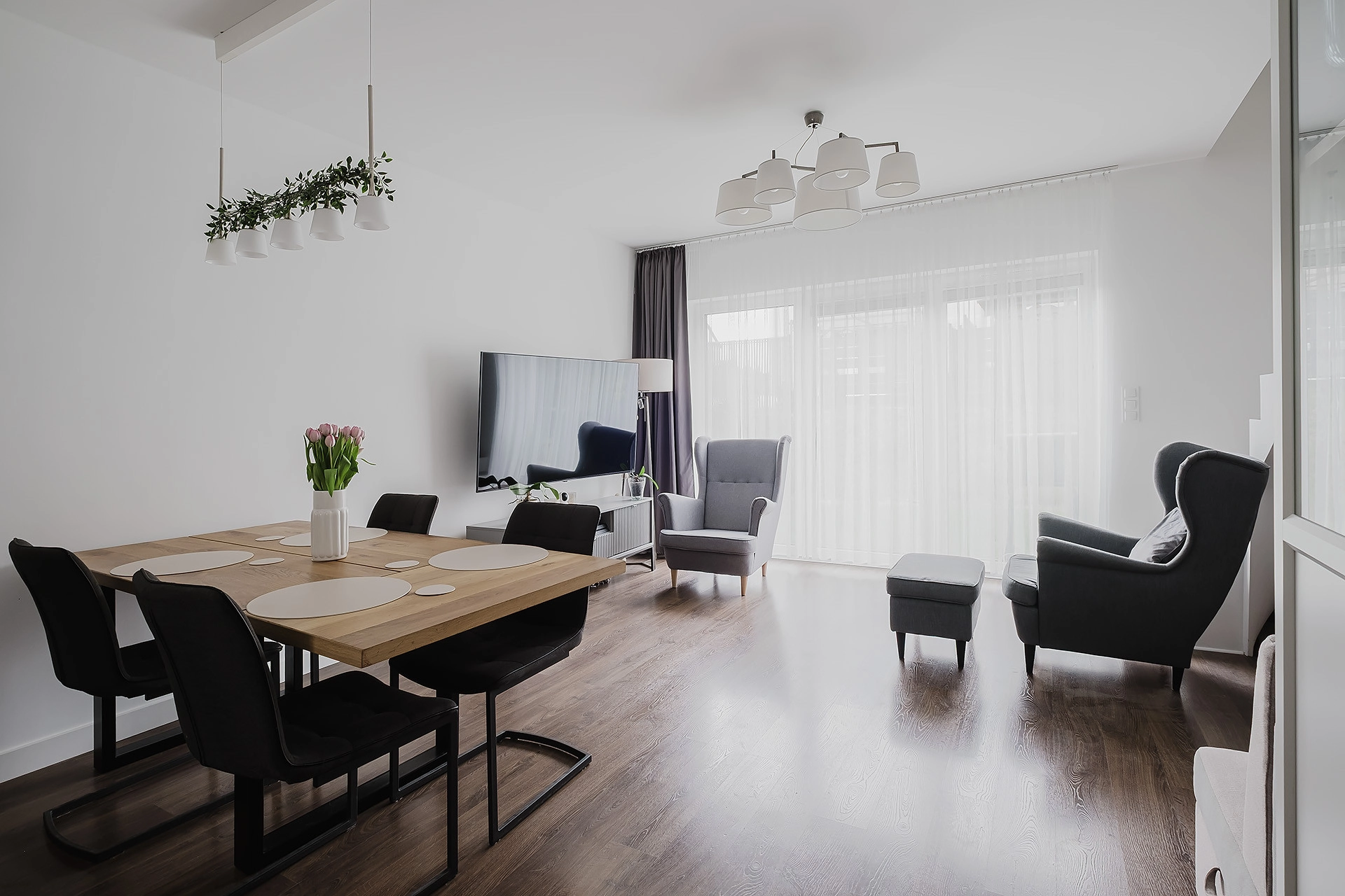 – Salon z w pełni wyposażoną kuchnią i wyjściem do ogródka 29,09 m2