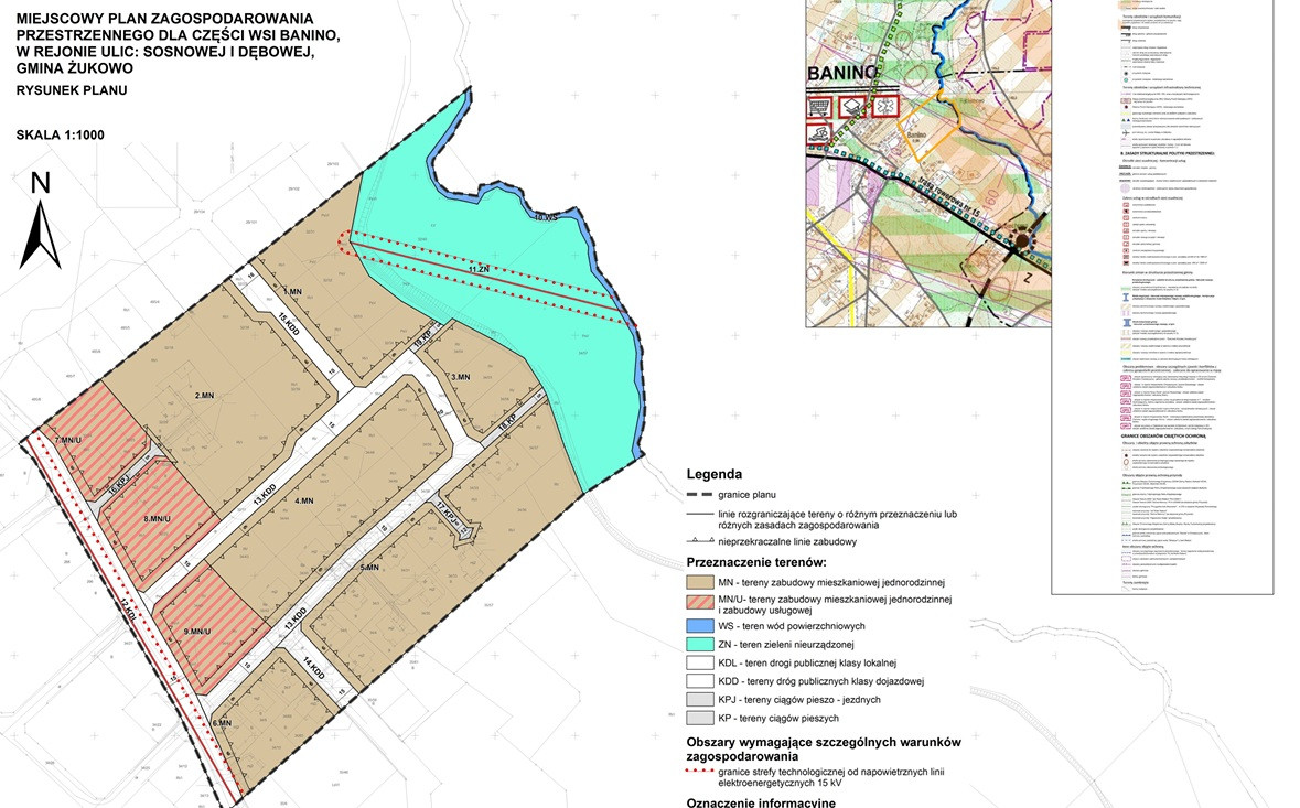 PRZEZNACZENIE: działka budowlana o powierzchni 2924 m2, w MPZP oznaczona symbolem 1.MN (UCHWAŁA NR XXVIII/311/2016 RADY MIEJSKIEJ W ŻUKOWIE z dnia 27 września 2016 r. w sprawie uchwalenia miejscowego planu zagospodarowania przestrzennego dla części wsi Banino, w rejonie ulic: Sosnowej i Dębowej, gmina Żukowo)