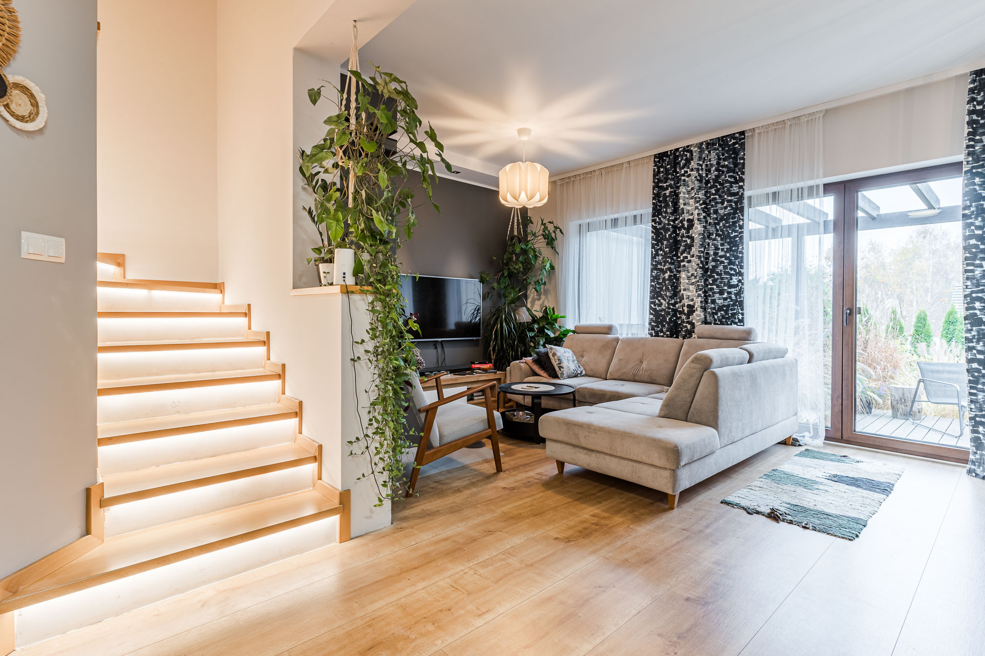 Ogólny stan domu należy uznać za bardzo dobry. Na podłogach znajdują się wysokiej jakości panele, kafle oraz gres. Ścian gładzone oraz malowane. Schody wykonano z drewna jesionowego.