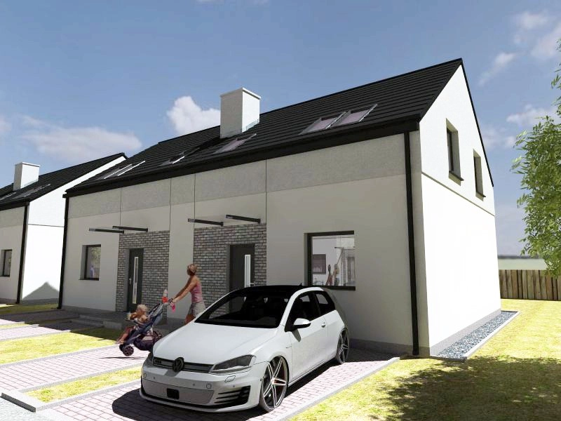 Domy w zabudowie bliźniaczej o powierzchni 101,35 m2 (93,93 m2 pow. użytkowej), o nowoczesnej architekturze, wykonany z wysokiej jakości materiałów z zastosowaniem energooszczędnej technologii. Dom większy niż pozostałe propozycje dostępne na rynku, z bardzo funkcjonalny rozkład pomieszczeń: