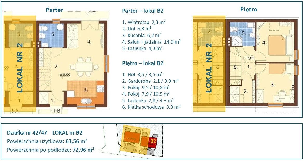 Mieszkanie w budynku wolnostojącym dwu lokalowym. Pow. użytkowa 63,56m2