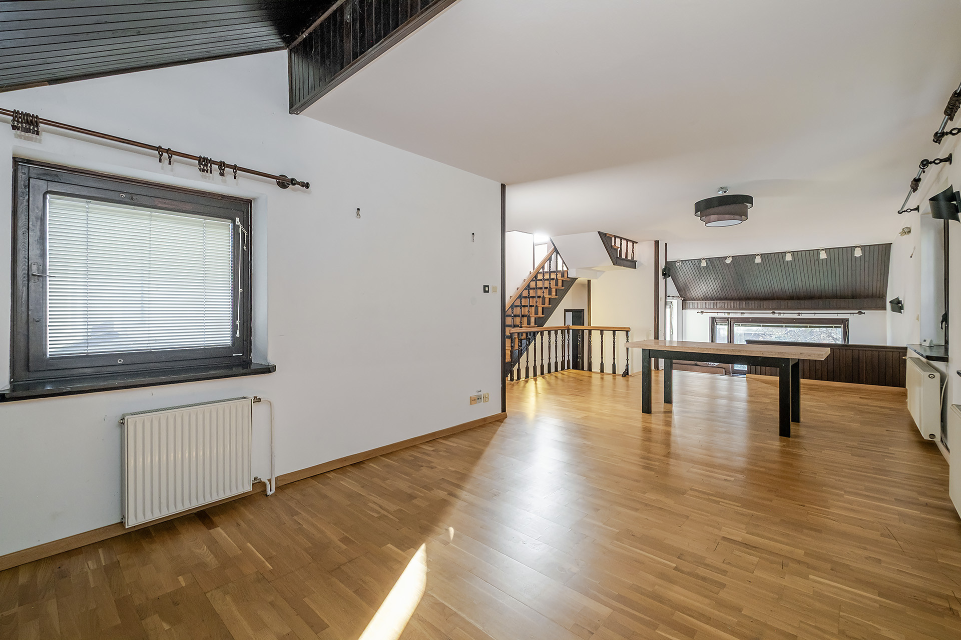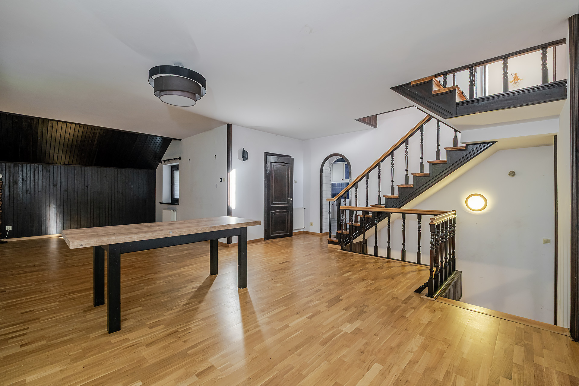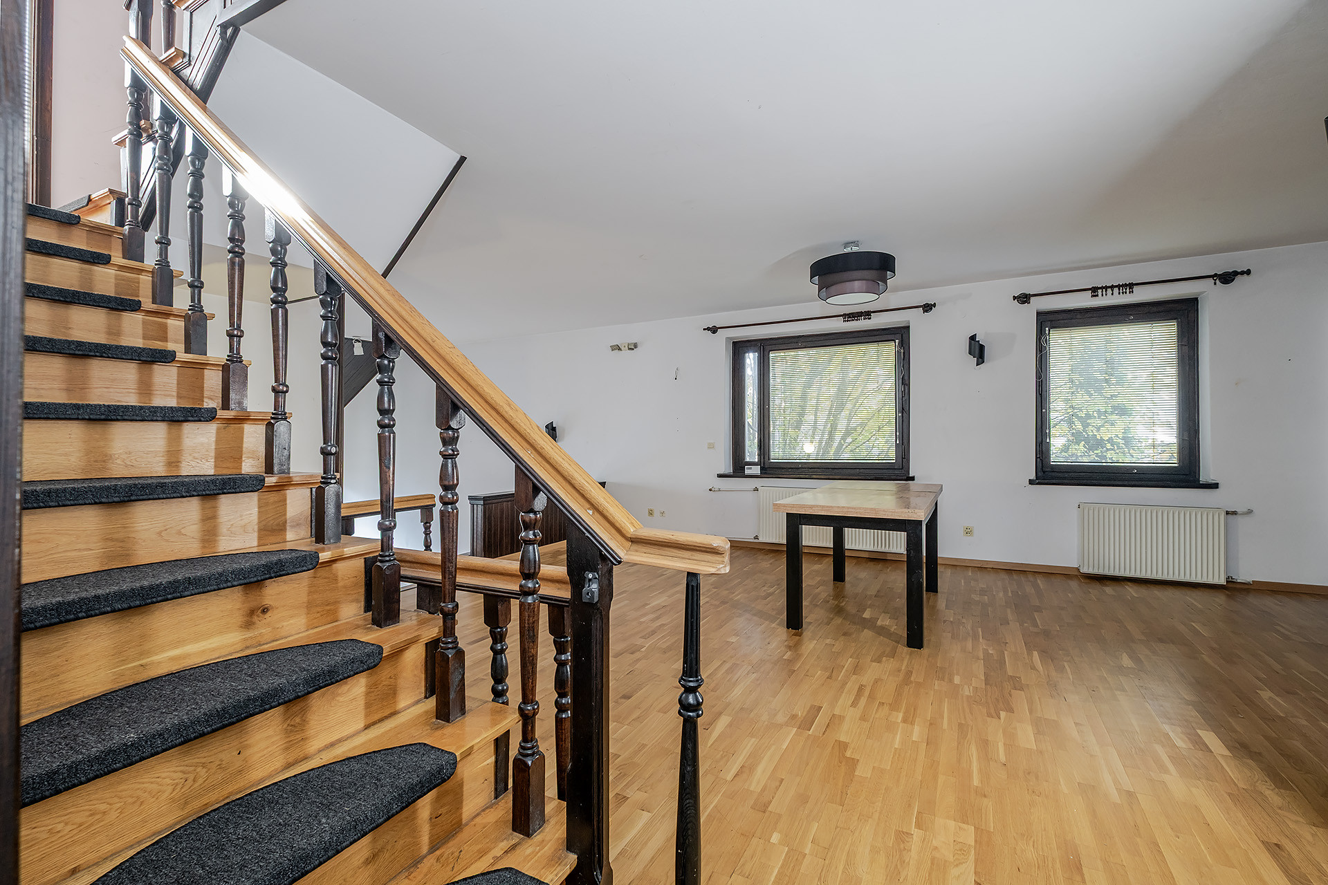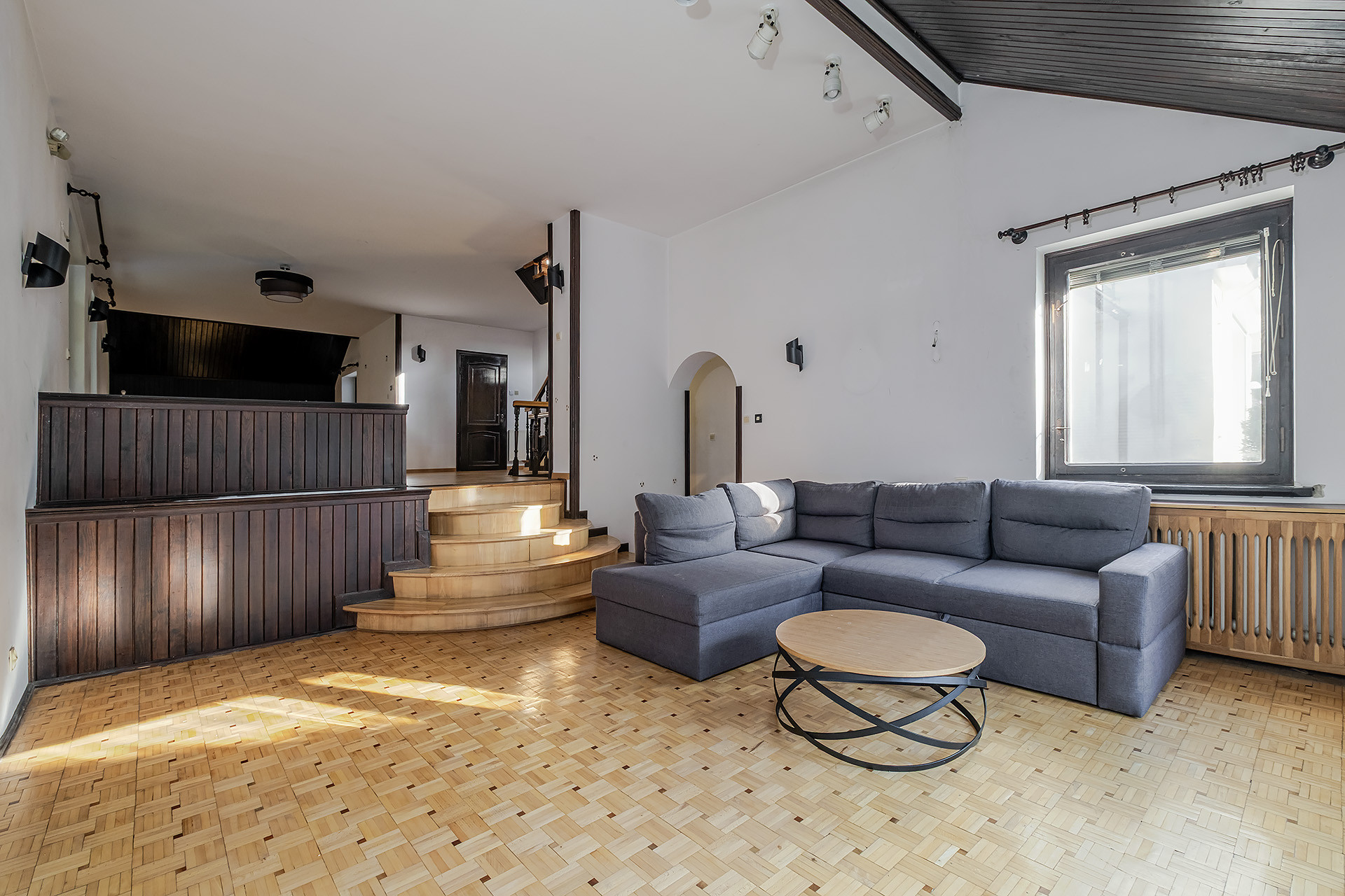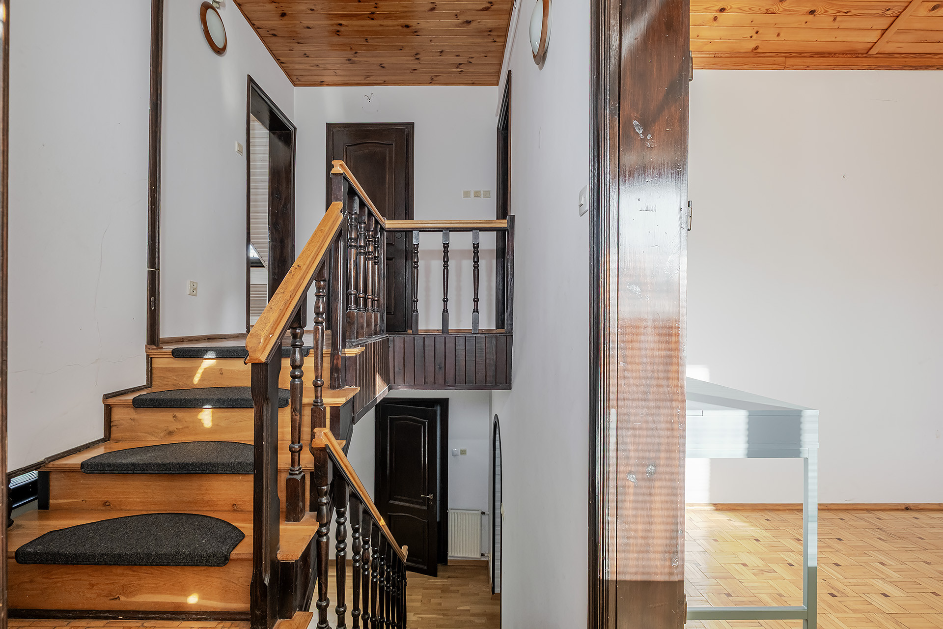 Dom w zabudowie bliźniaczej o powierzchni użytkowej 180 m² + powierzchni gospodarczej 43,22 m², a całkowitej 258,11 m2 posadowiony na działce ok. 340 m².Zbudowany w tradycyjnej technologii z gazobetonu, ocieplony styropianem, pokryty dachówką betonową. Wnętrze wymaga odświeżenia, ale oferuje oryginalne, nietypowe, a zarazem ciekawe rozwiązania aranżacyjne.