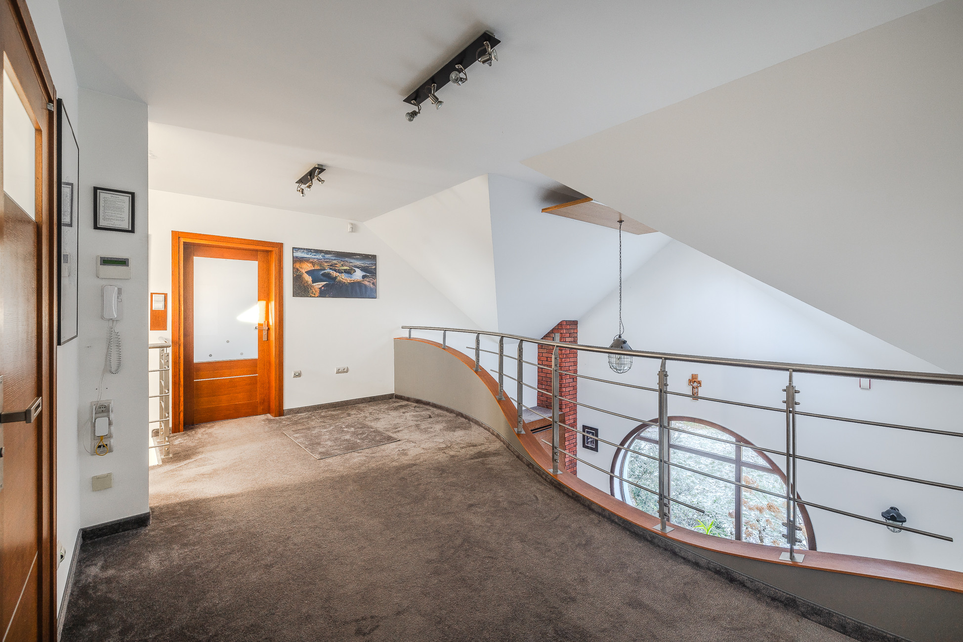 – antresola nad salonem, barierki ze stali nierdzewnej matowej