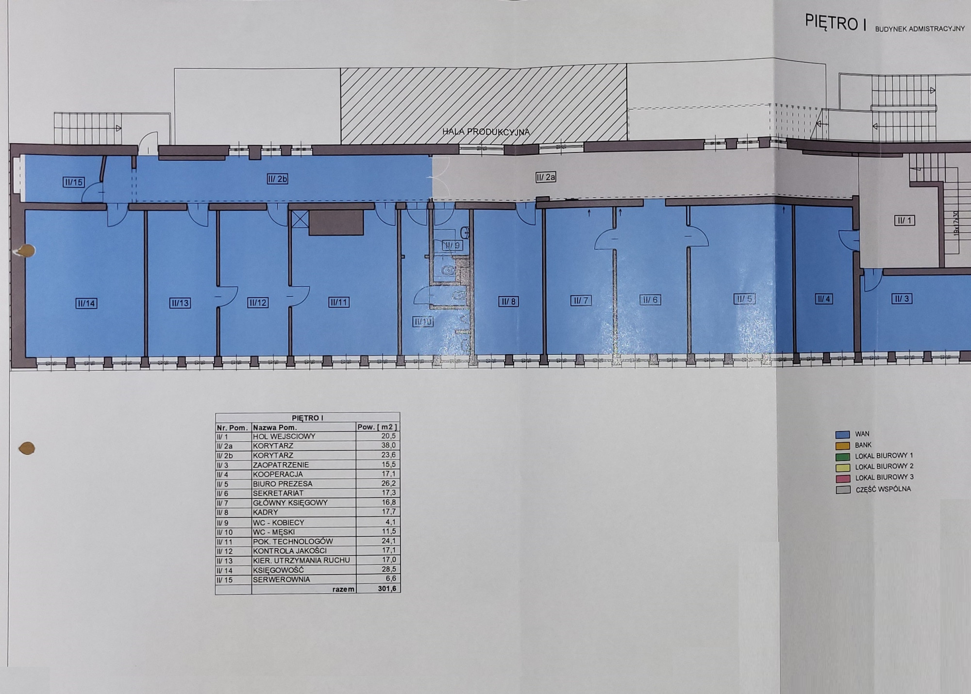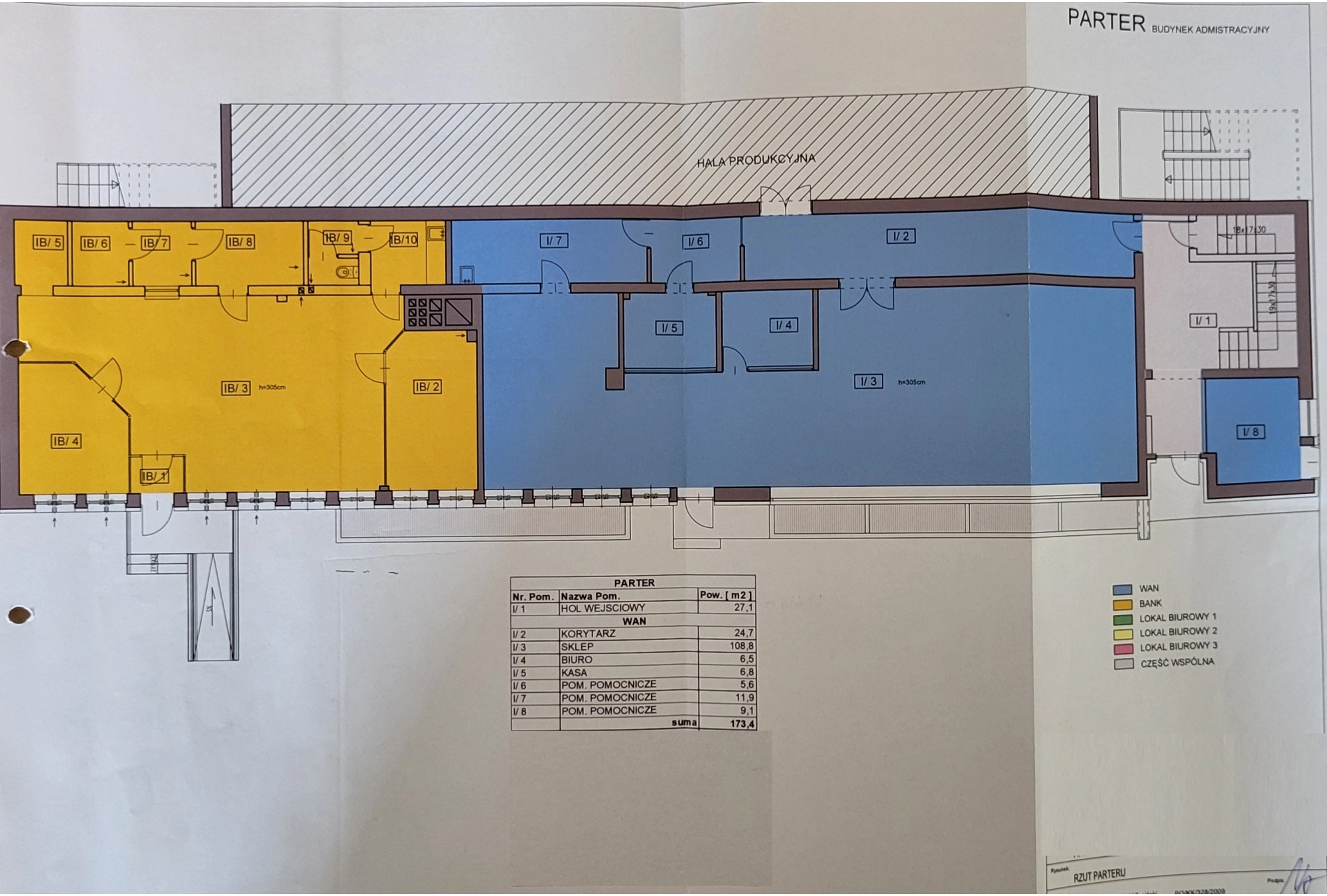 Budynek usługowo biurowy z dużą salą sprzedaży na parterze, oddany do użytkowania w 1961r. Przy budynku zewnętrzne miejsca parkingowe. W budynku centralne ogrzewanie zlokalizowane w piwnicy.