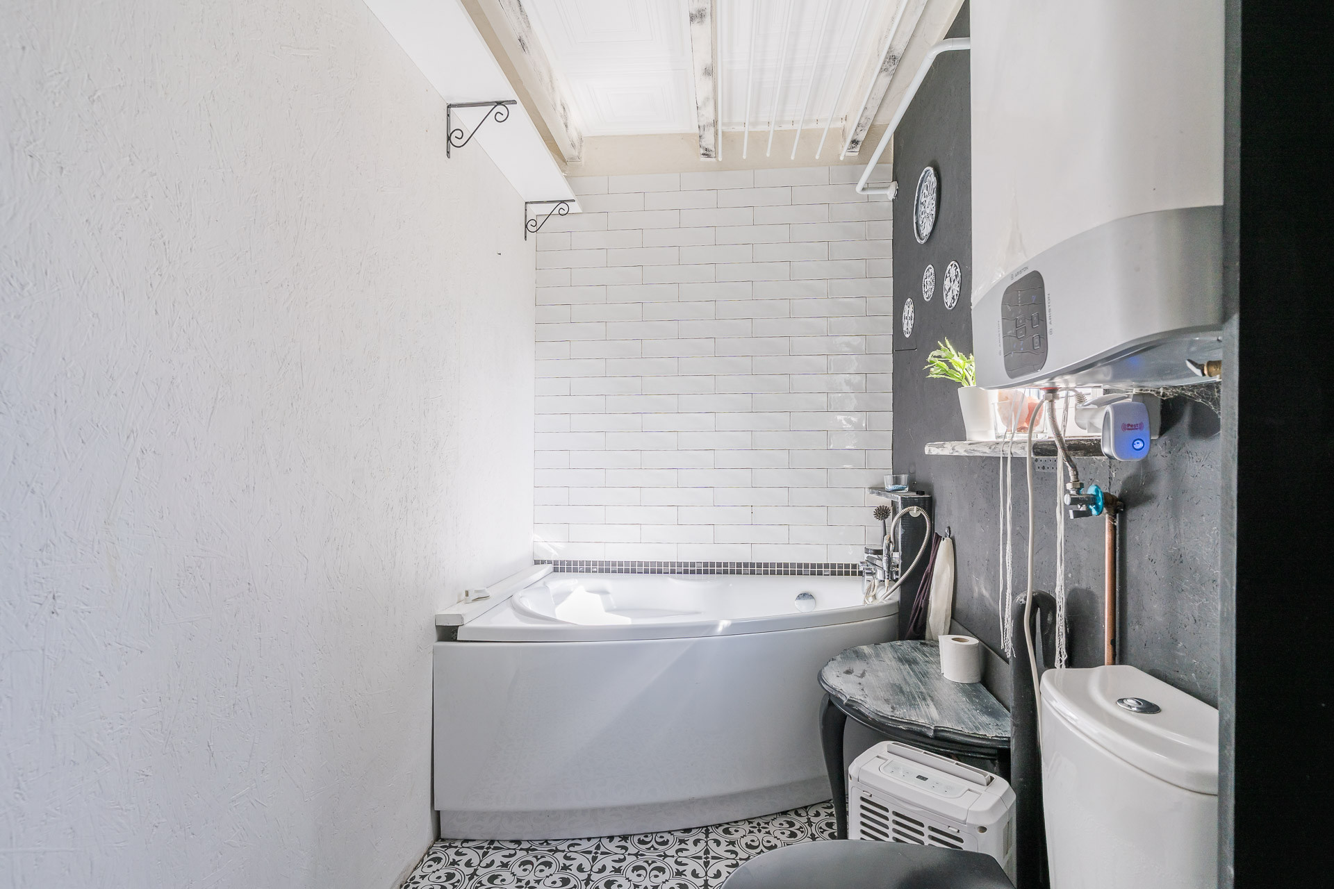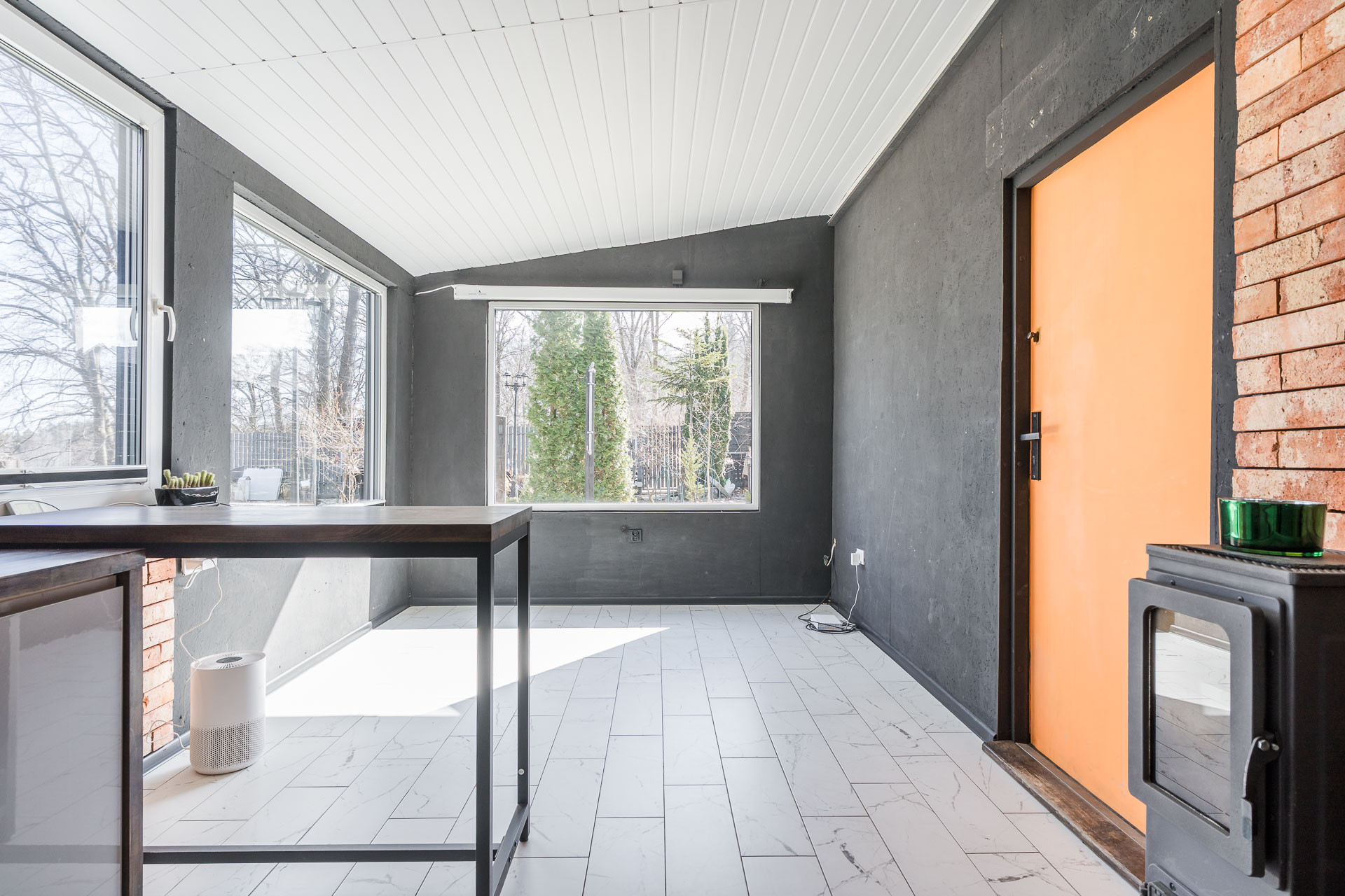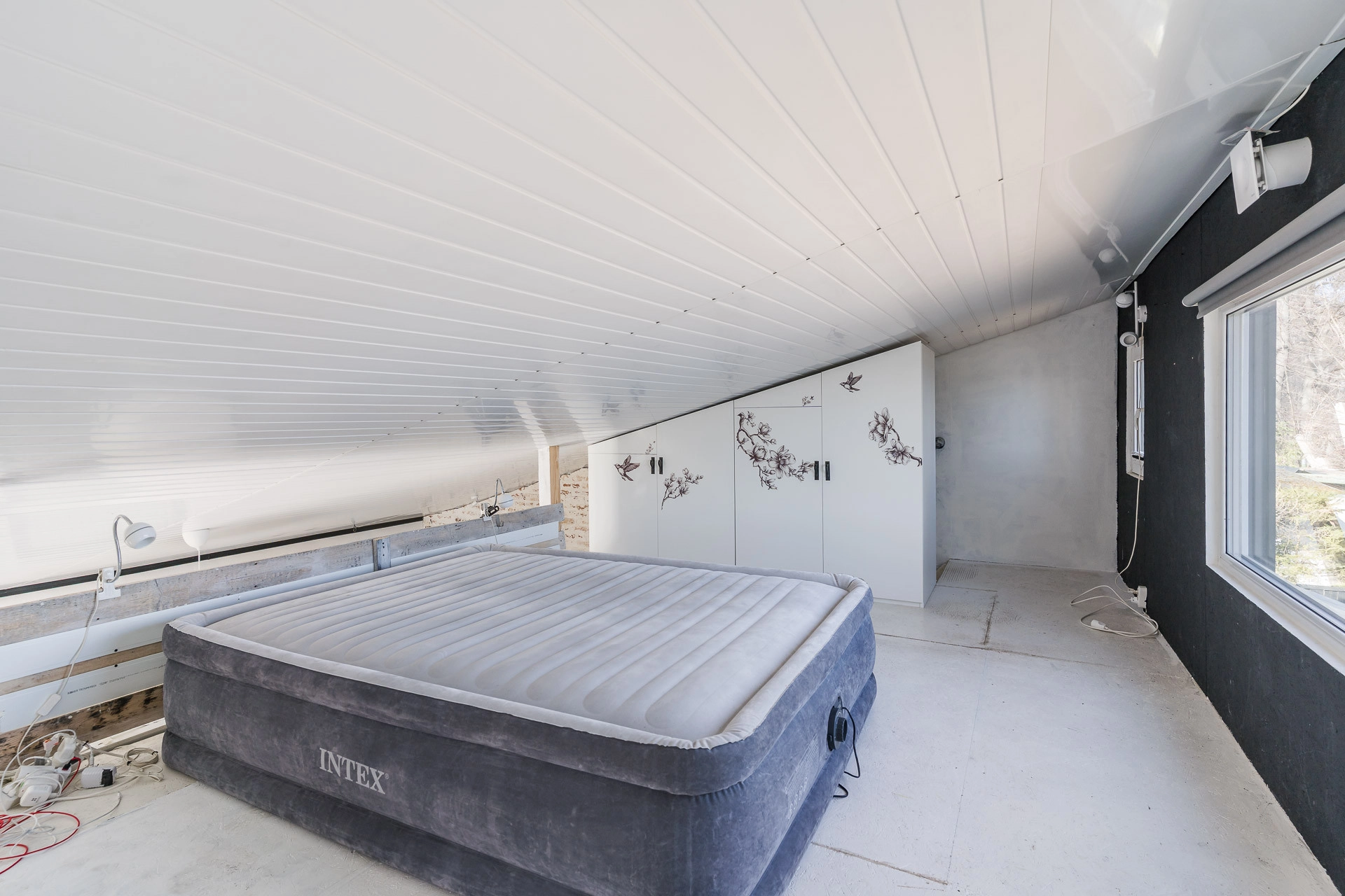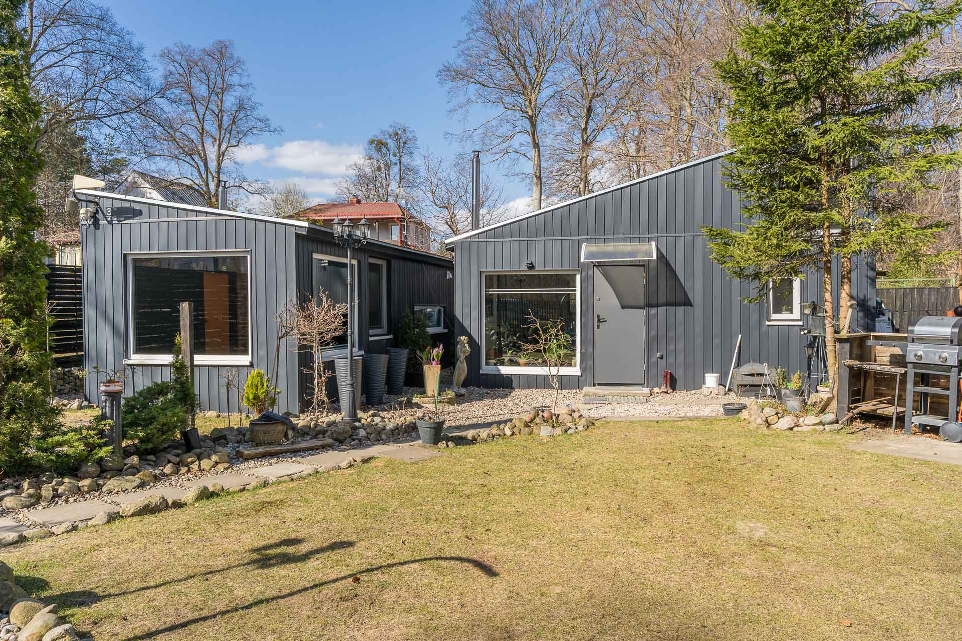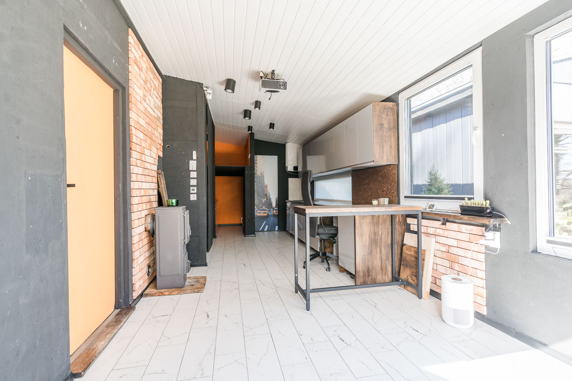 Drugi dom o powierzchni 30m2. Powstał z myślą jako studio lub dodatkowe miejsce do wypoczynku. Posiada kominek na drewno oraz ogrzewanie podłogowe. Zabudowana kuchnia połączona z wyznaczonym miejscem do relaksu wykończona na najwyższym poziomie tworzy wspaniały klimat. W domku jest oddzielona łazienka oraz garderoba. Budynek posiada wysokiej jakości rekuperator wymiany powietrza. Również posiada panoramiczne okna, które wypełniają potrójne szyby. Oświetleniem oraz ogrzewaniem również sterowność daje nam system Smart Home.