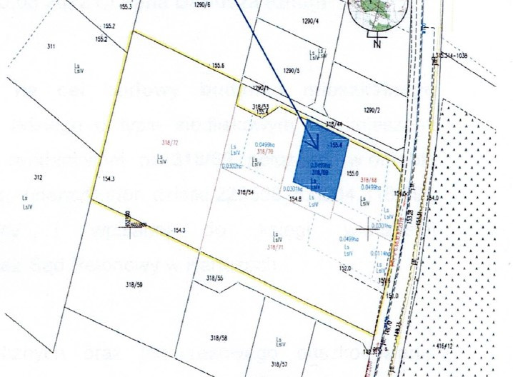 Sprzedaje osoba fizyczna. Pierwokup dot. lasu – tak, ale powiat nie korzysta. Wynika to z faktu, że w ewidencji gruntów teren oznaczony jest nadal jako LsIV, natomiast warto tu wspomnieć że sprzedający uzyskał decyzje o wyłączeniu 499 metrów powierzchni tej działki z produkcji leśnej.