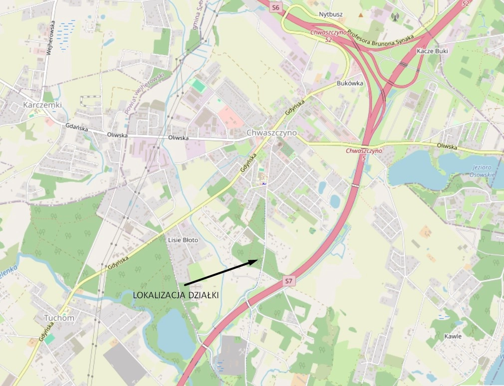 Działka mieszkalno-usługowa o pow. 800  m.kw. w leśnym otoczeniu w Chwaszczynie, ul. Mickiewicza.