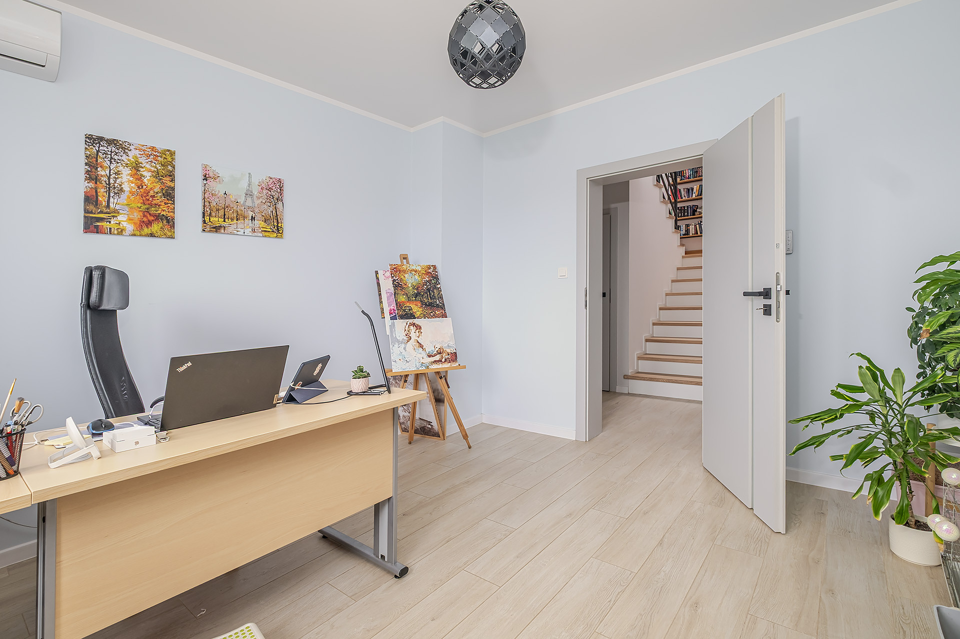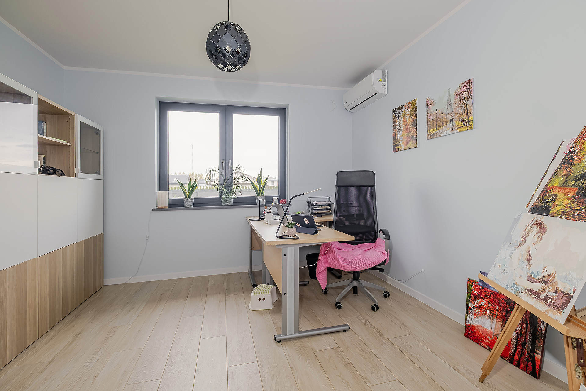 dom wolnostojący wzniesiony w 2023 roku o powierzchni całkowitej 208 m² (użytkowa około 174 m²). Budynek został wybudowany jako prywatna inwestycja, dlatego jest doskonale przemyślany oraz wykonany z należytą starannością przy pomocy użyciu wysokiej jakości materiałów.