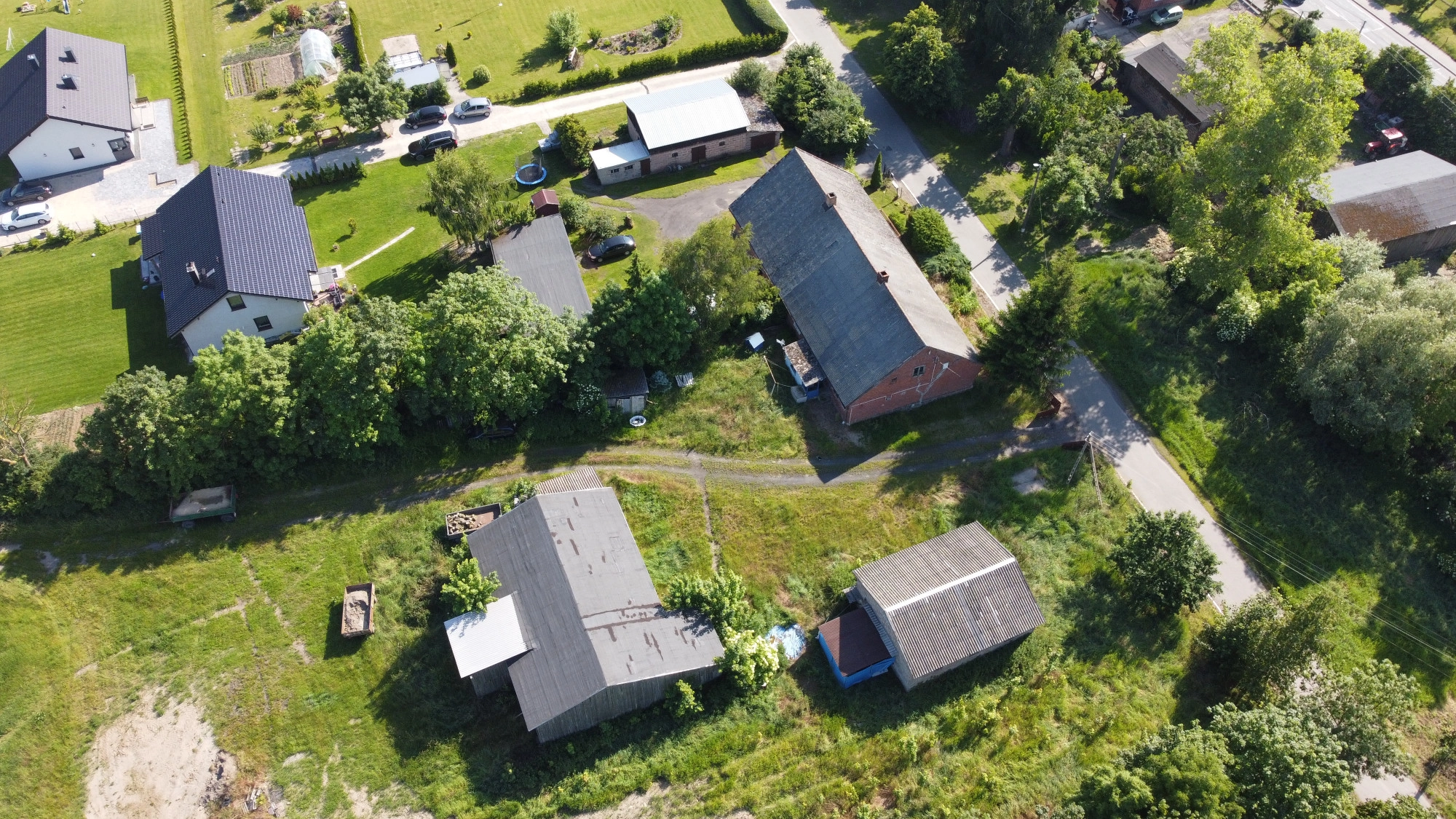 Na sprzedaż dom bliźniak z garażem oraz stodołą, usytuowany na dużej działce o powierzchni 4 878 m2, podzielonej na 4 części, gotowe do użytkowania lub sprzedaży.