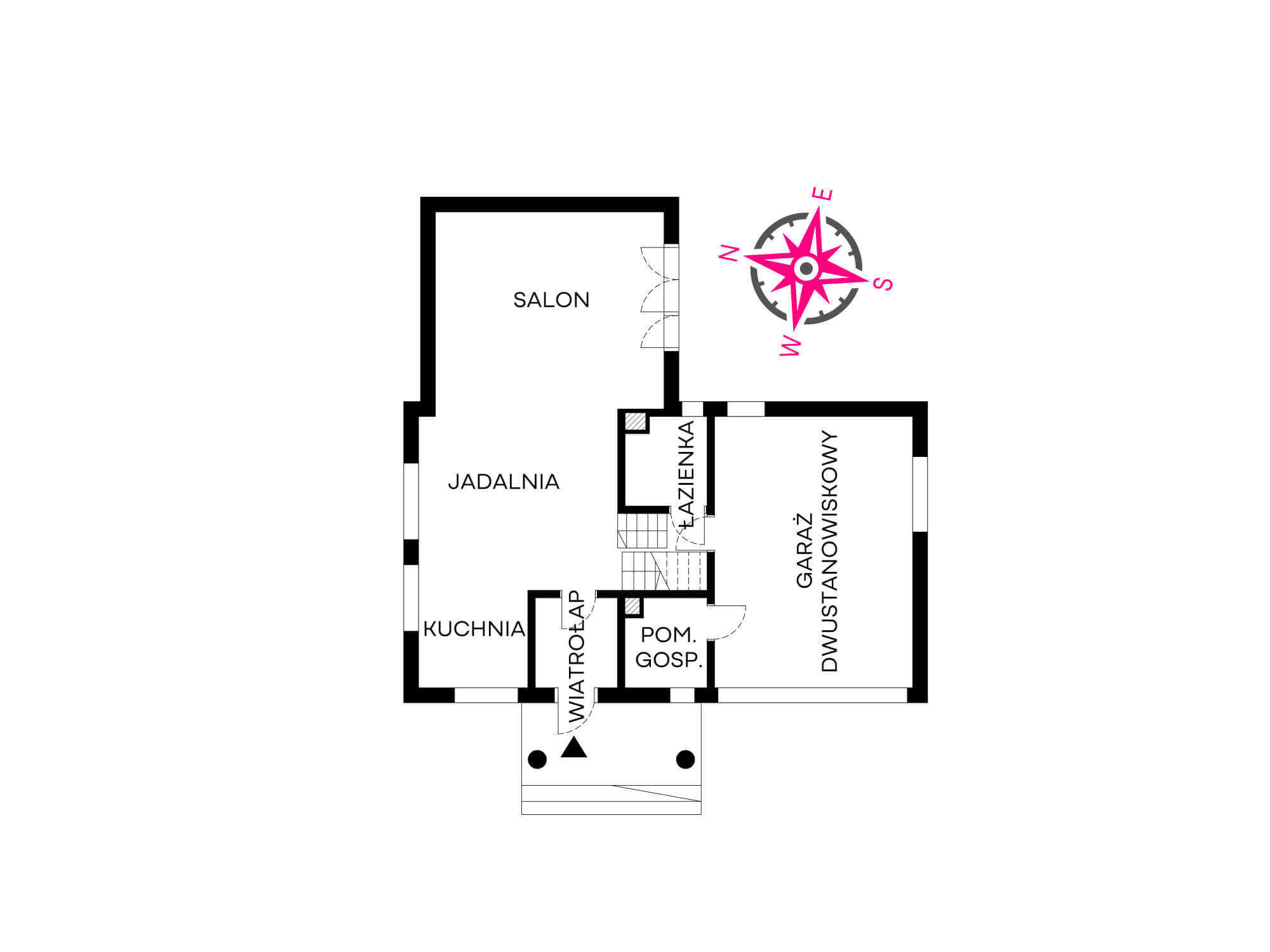 – wejście do garażu dwustanowiskowego z pom. gospodarczym, brama garażowa automatyczna