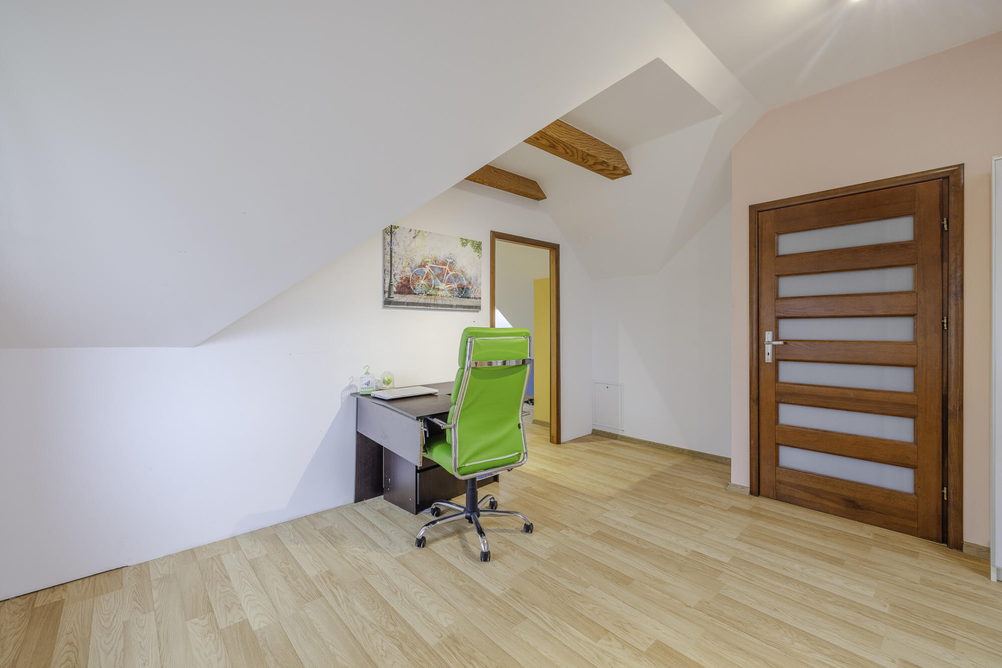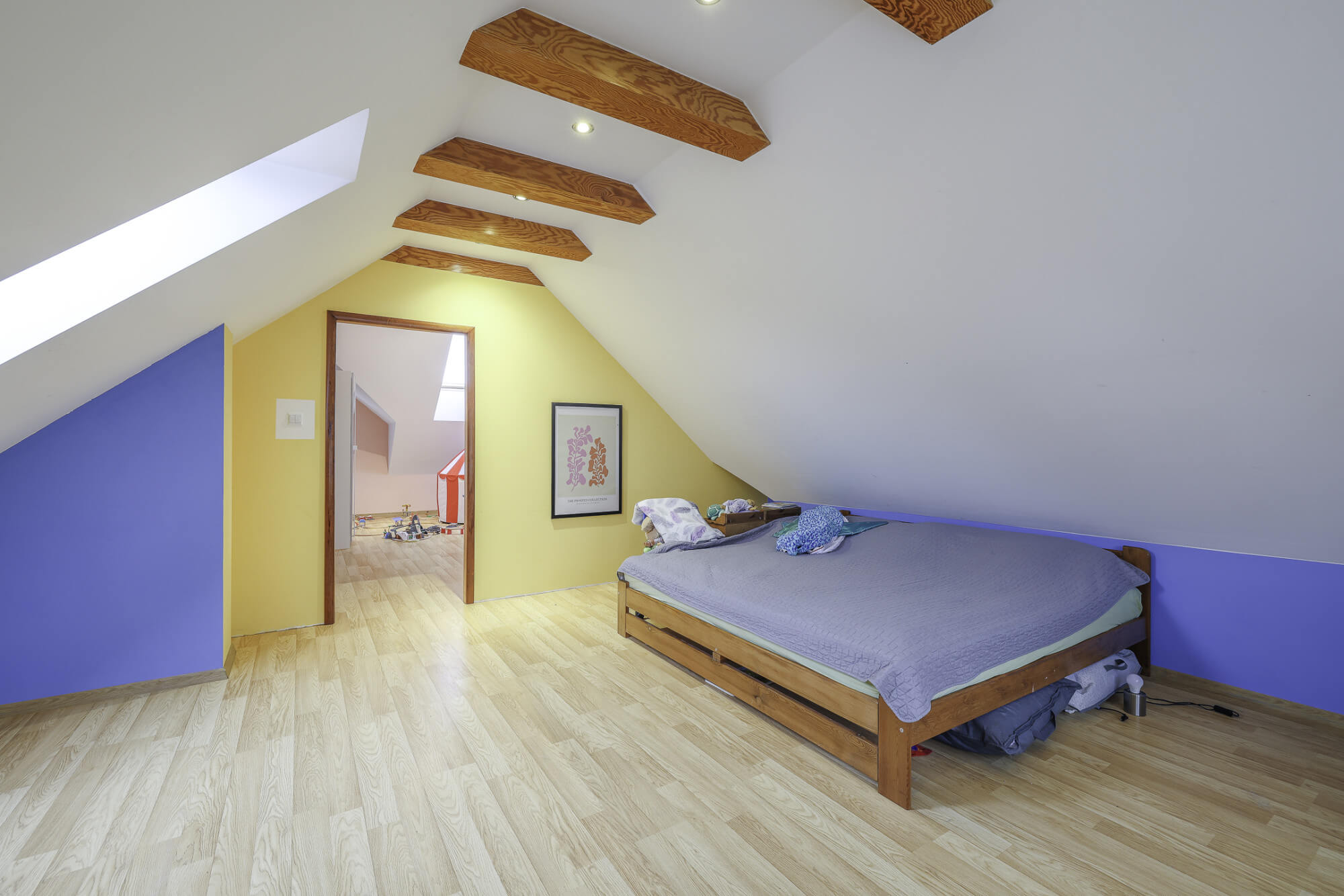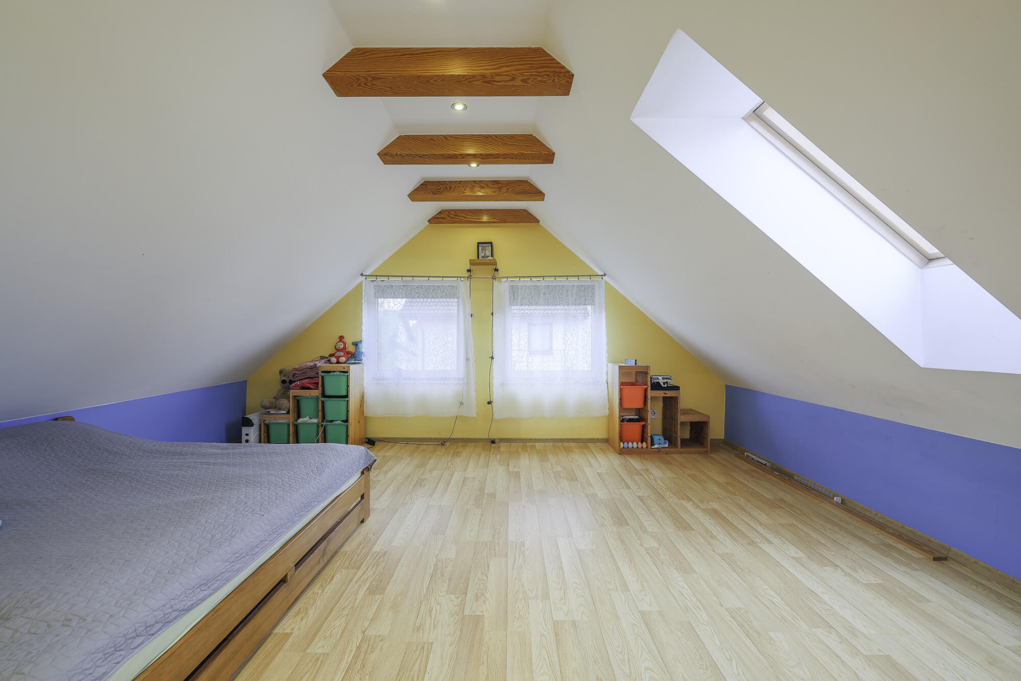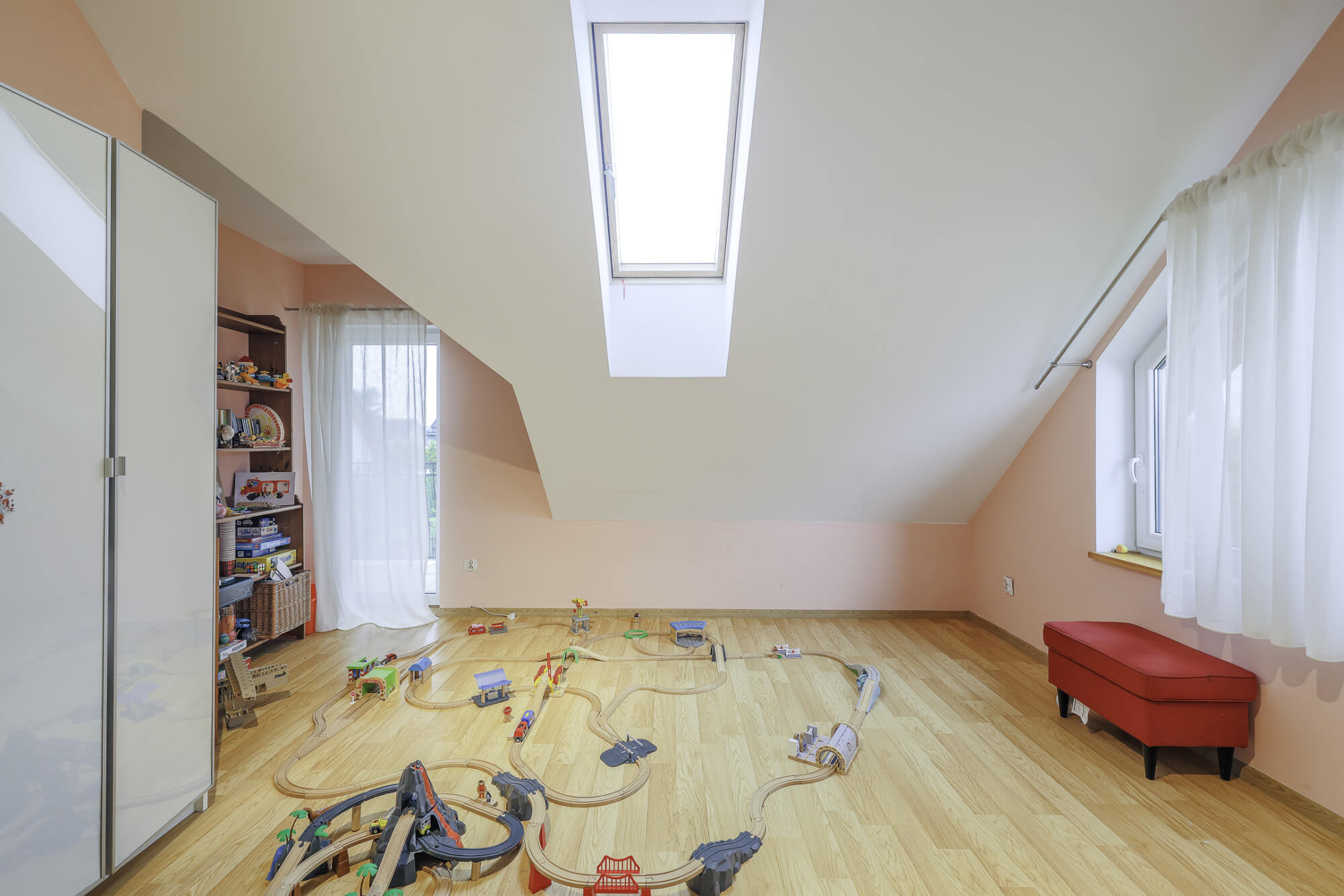 – łącznie aż pięć sypialni w tym jedna z obszerną garderobą (jednej z pokoi przechodni ale jest możliwość oddzielania ścianką działową, a jeden z pokoi jest obecnie połączony w jedną dużą przestrzeń).