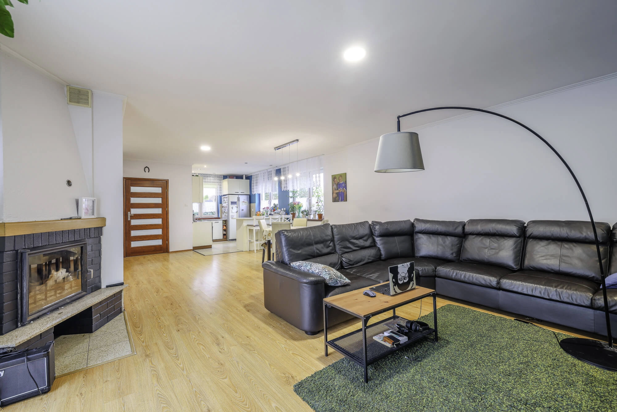 – przestronny salon z kominkiem i jadalnią oraz wyjściem na ogród