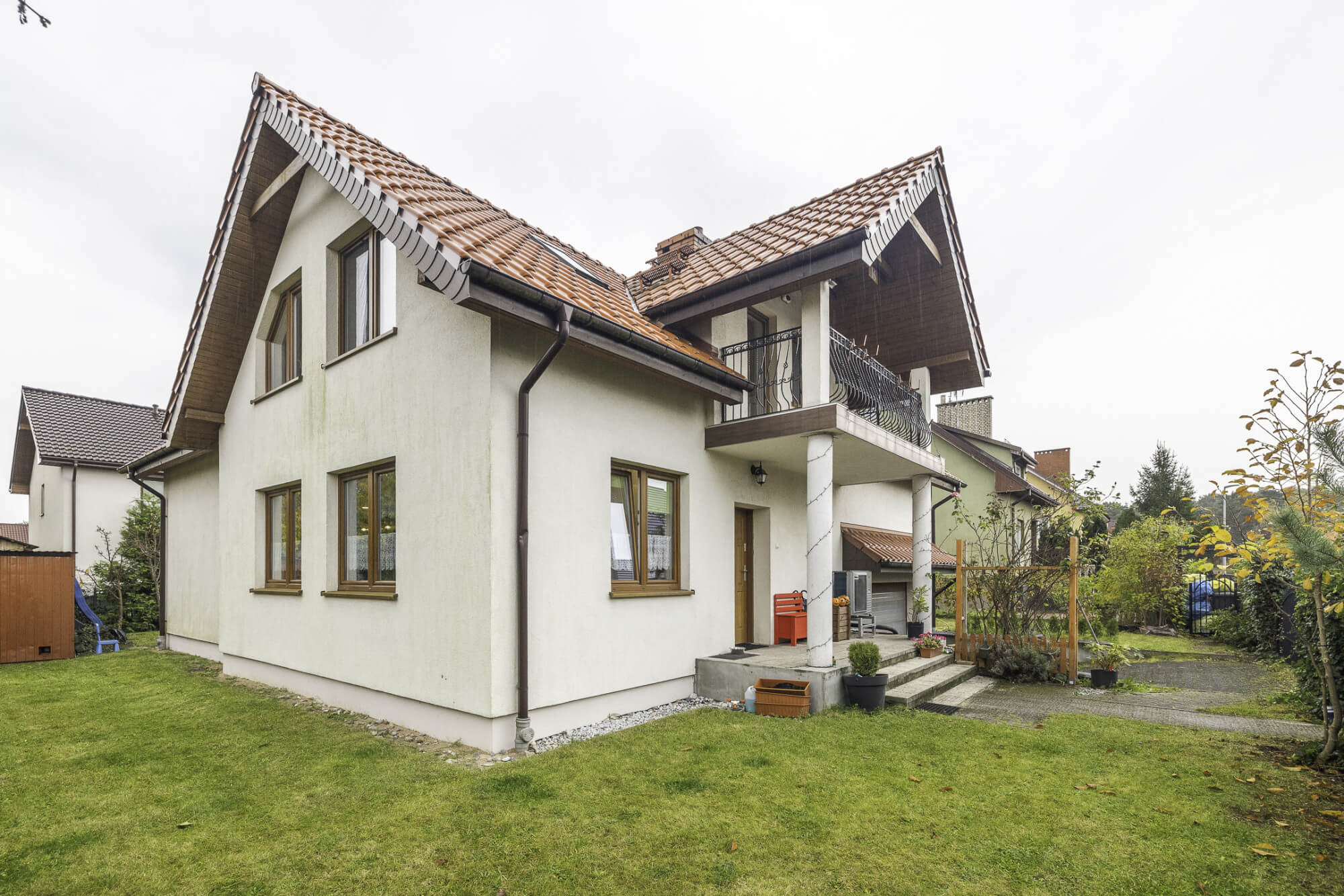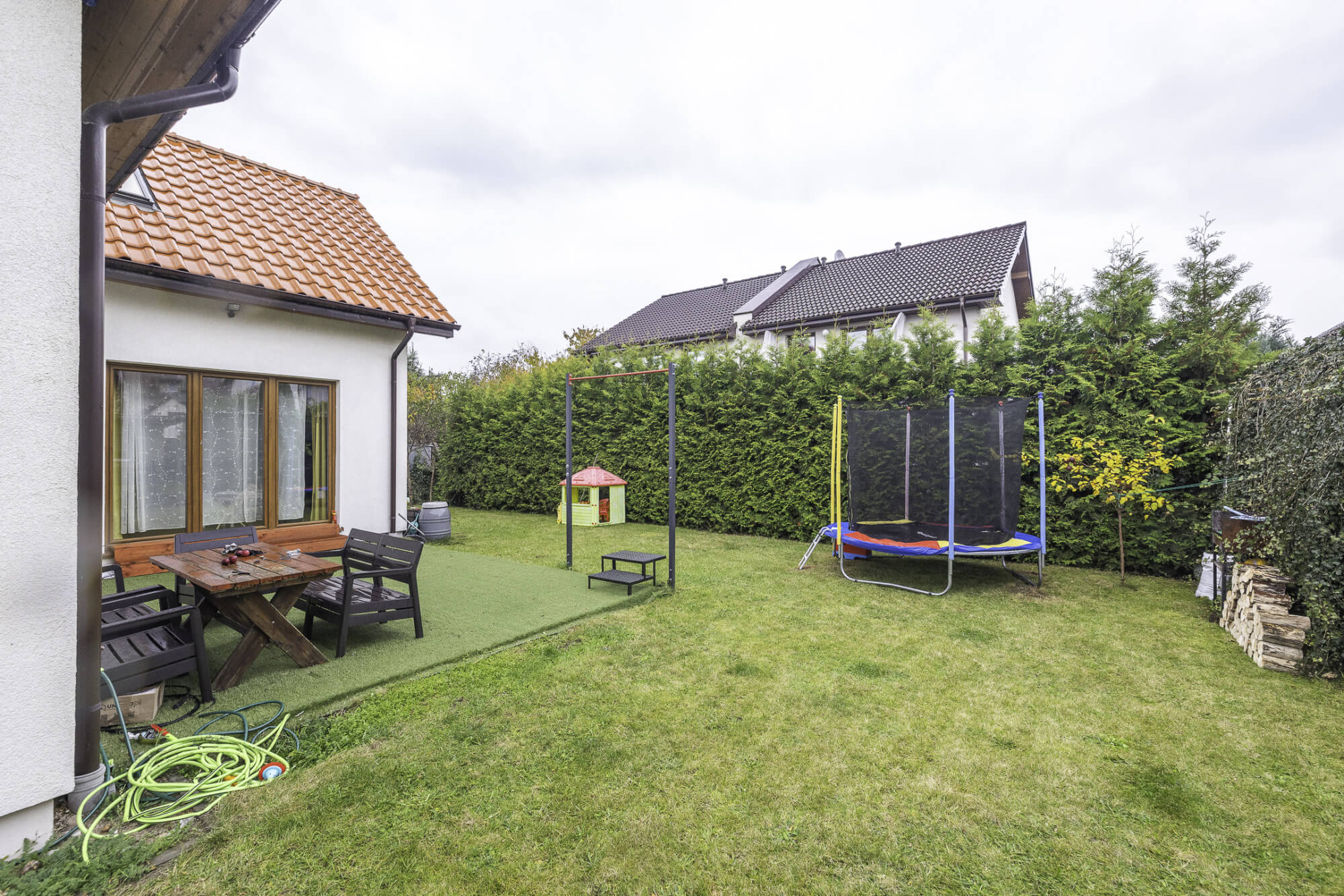 – zagospodarowany ogród, w pełni otoczony innymi posesjami z mnóstwem zieleni