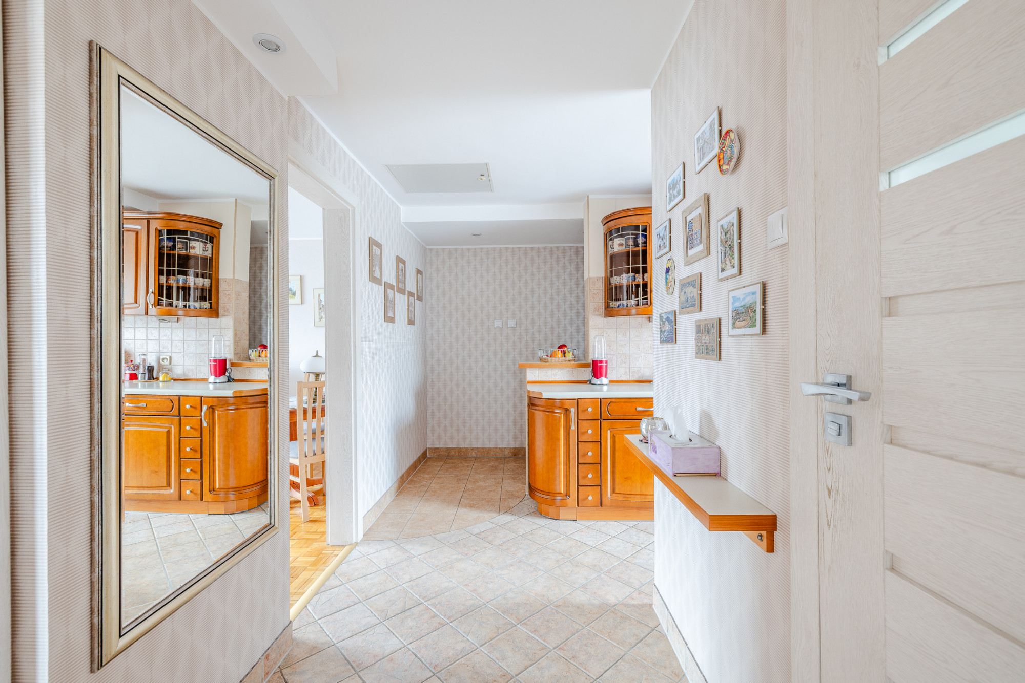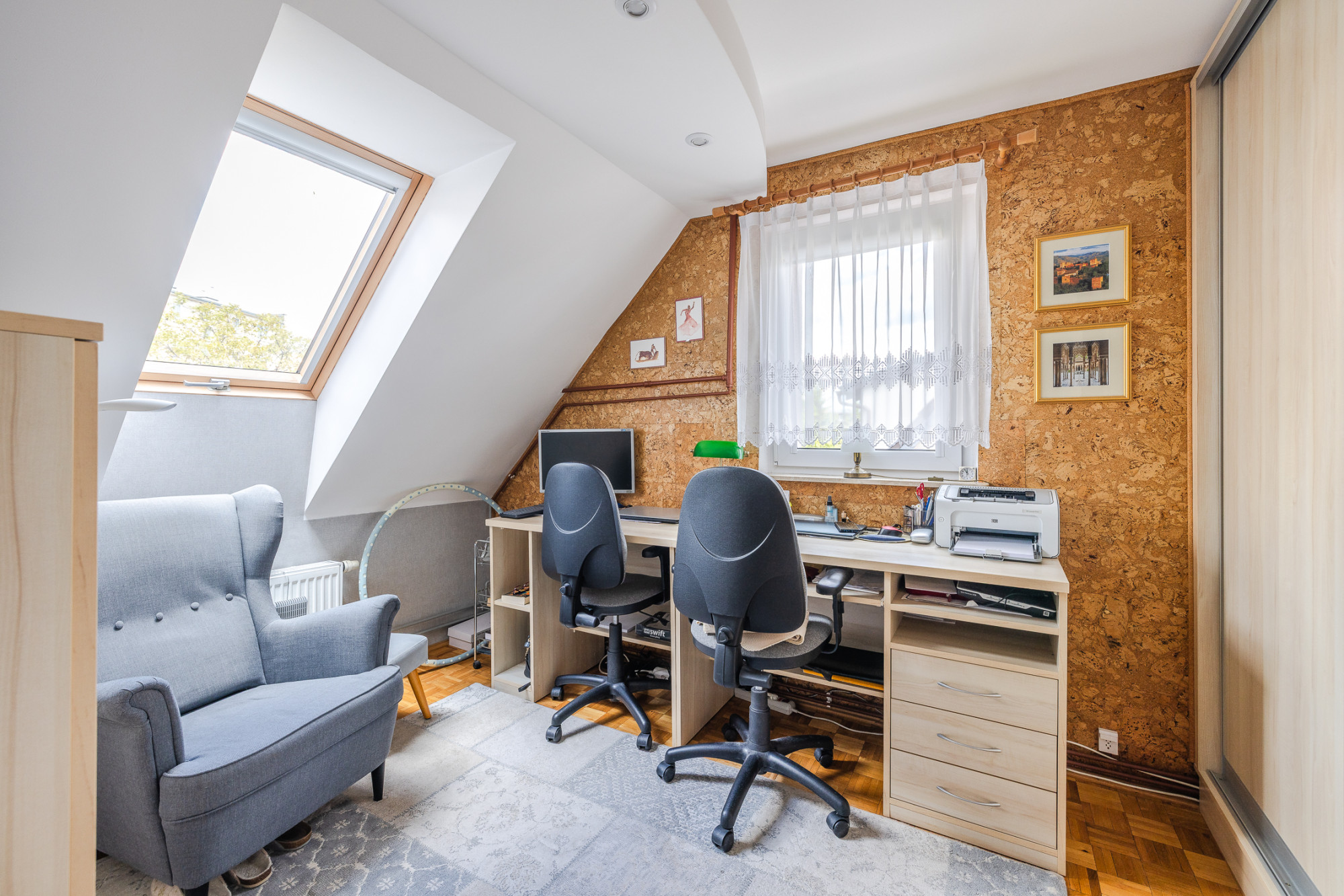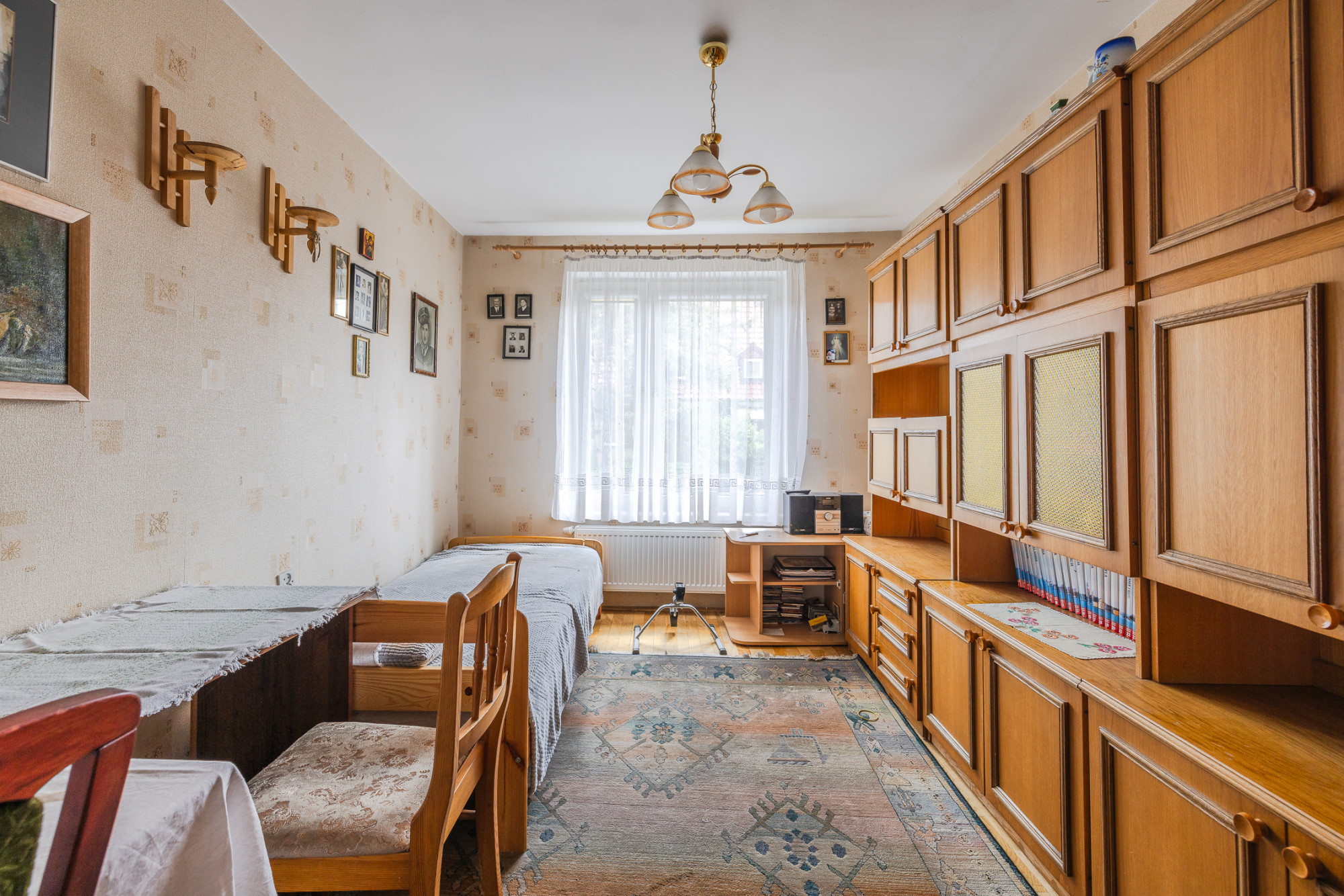 NIERUCHOMOŚĆ: Dom w zabudowie bliźniaczej o dużym potencjale, zarówno dla jednej dużej rodziny, jak i dwóch pokoleń – dzięki wyodrębnionym księgom wieczystym dla parteru i piętra, można korzystać z niego jako dwóch niezależnych mieszkań! Dom o powierzchni użytkowej ok. 137 m2, powierzchni całkowitej ok. 216 m2, wybudowany z cegły ceramicznej i pustaka w 1960 r., ocieplony 10 cm warstwą styropianu, na bieżąco modernizowany i remontowany (w ostatnich latach remont przeszło pierwsze piętro budynku). Dach pokryty blachą modułową, okna PCV, ogrzewanie gazowe (zainstalowane termostaty) oraz za pomocą pieca na paliwo stałe (piec w piwnicy). Do budynku doprowadzony jest światłowód. Powierzchnia piwnicy: 74,95 m² – pełne podpiwniczenie zapewnia dodatkową przestrzeń do przechowywania, miejsce na siłownię, pralnię lub domowe biuro. Duży garaż dwustanowiskowy (miejsca zastawne) dodatkowe miejsca postojowe przed domem – bez problemu pomieścisz auta całej rodziny