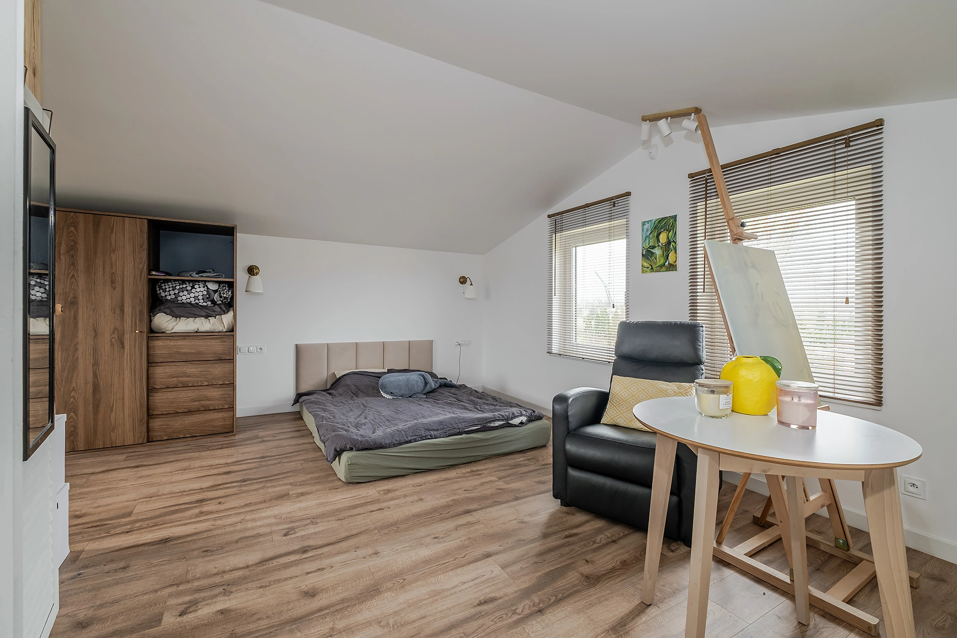 Dom został wybudowany w 2021 roku, na indywidualnych warunkach i według przemyślanego projektu właściciela – z myślą o komforcie i funkcjonalności. Budynek jest wciąż modernizowany i wykańczany, dzięki czemu przyszły nabywca może dopracować go pod własne potrzeby.