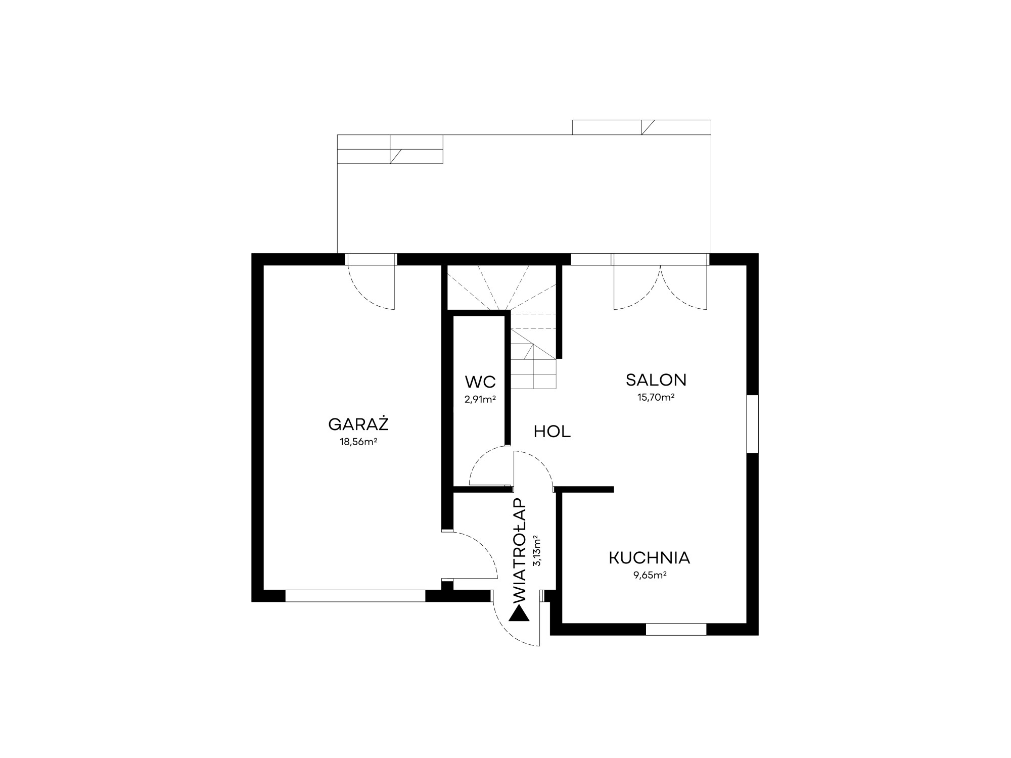 -wiatrołap (3,1 m2) z przejściem do garażu,