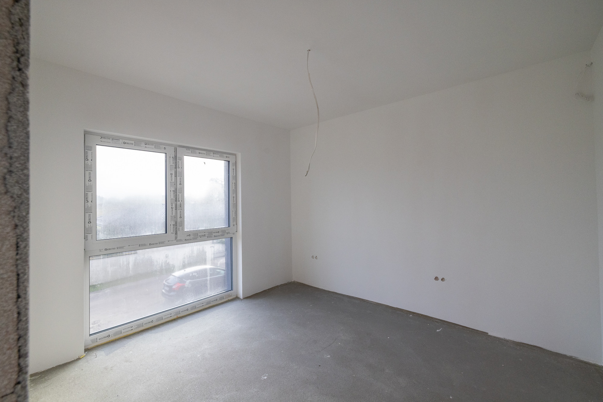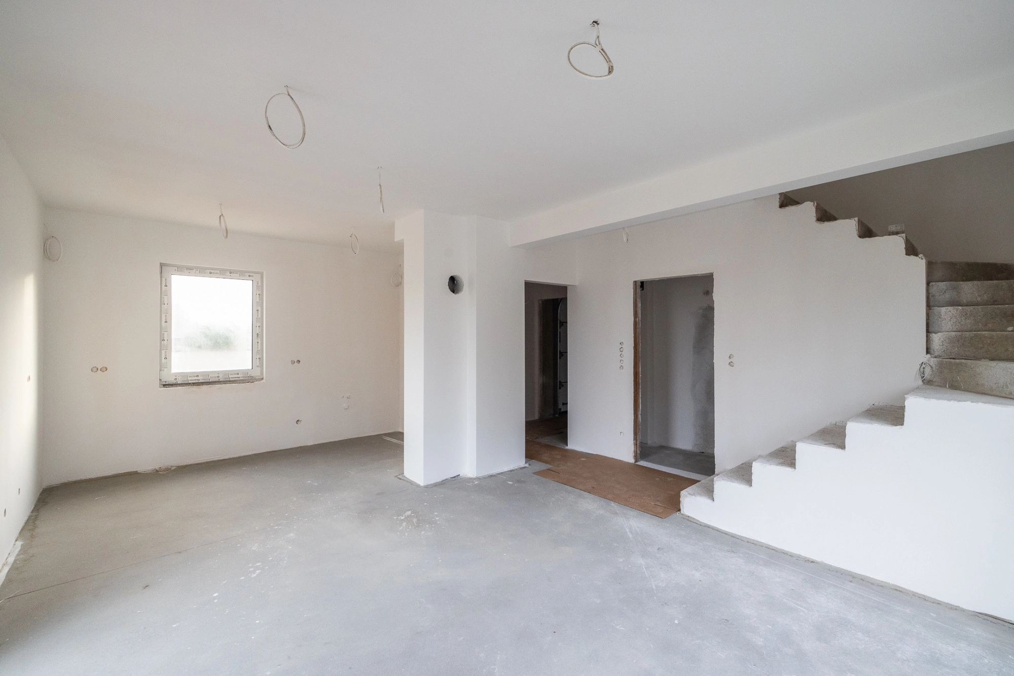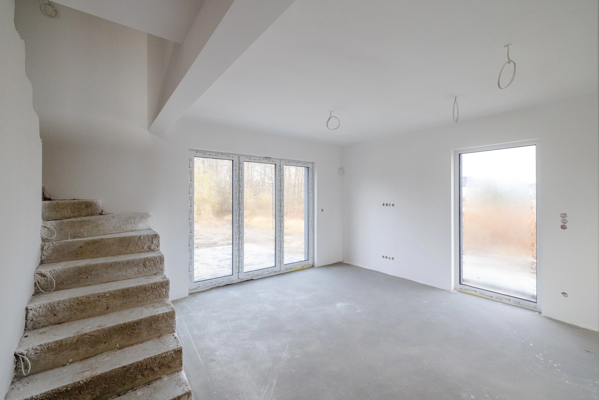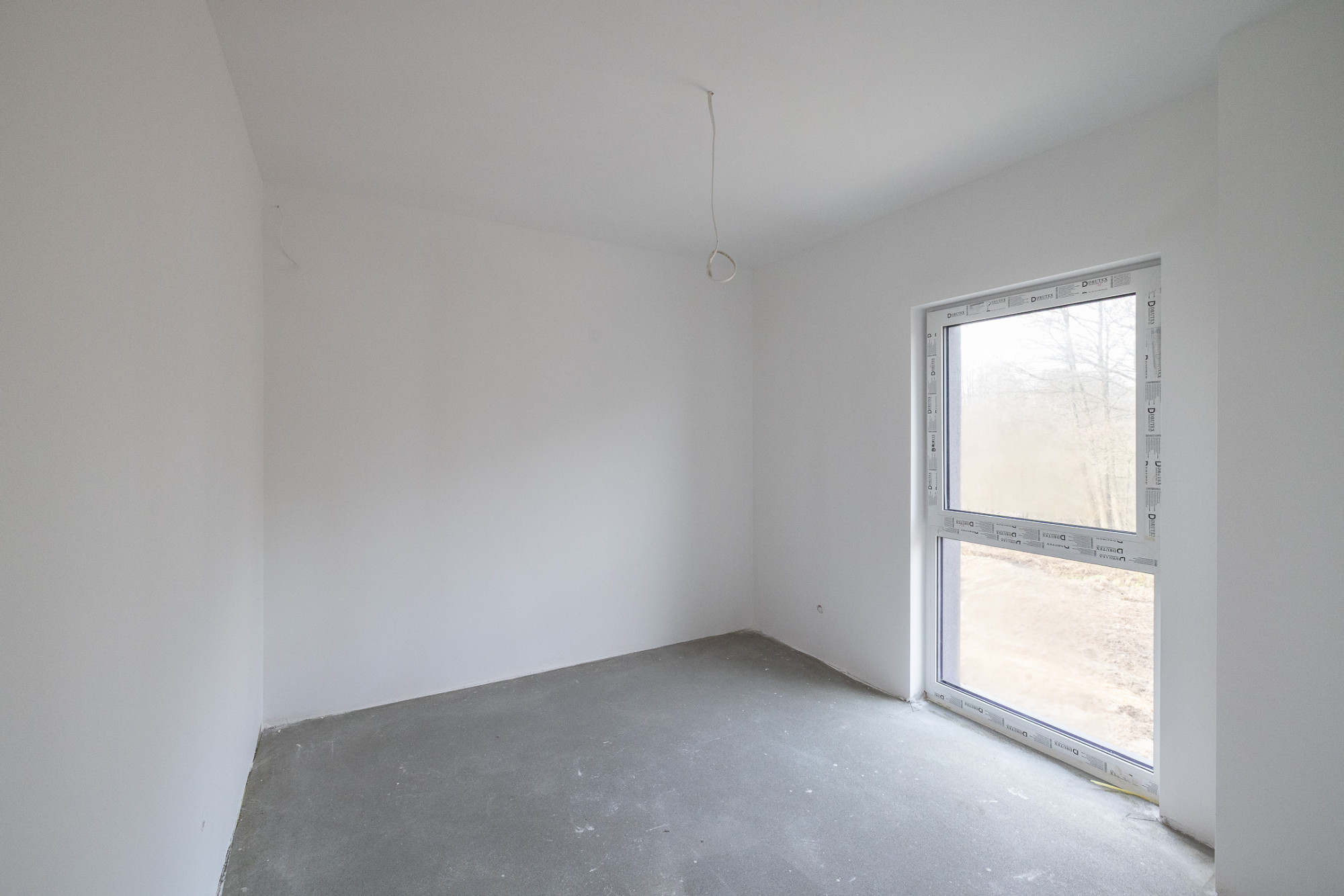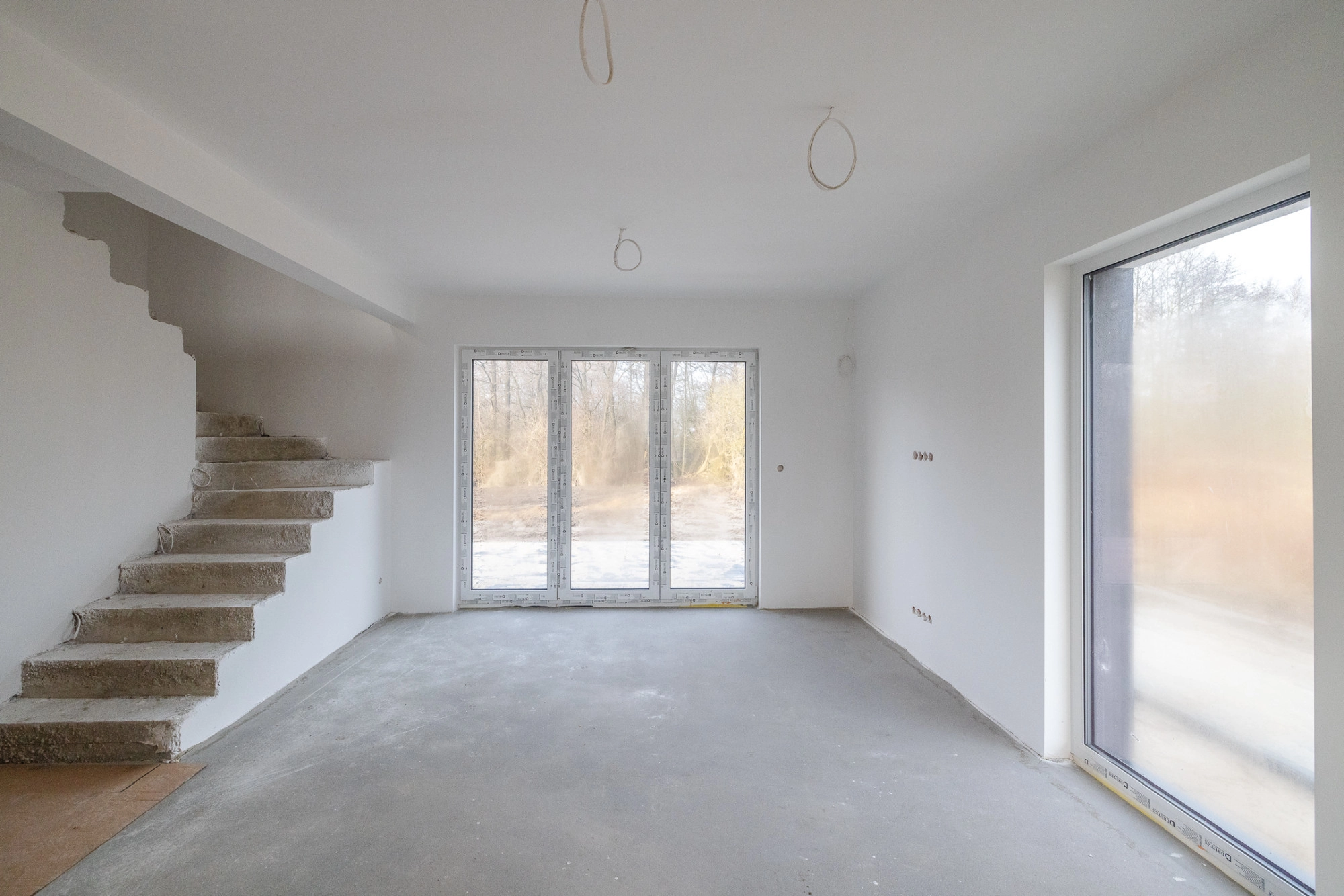 W całym budynku zastosowano trzyszybowe okna i drzwi z ciepłym montażem, co zapewnia doskonałą szczelność oraz ogranicza straty ciepła. Elewację wykończono silikonowym tynkiem zewnętrznym w nowoczesnych, eleganckich odcieniach, co nadaje budynkowi ponadczasowy i estetyczny charakter.