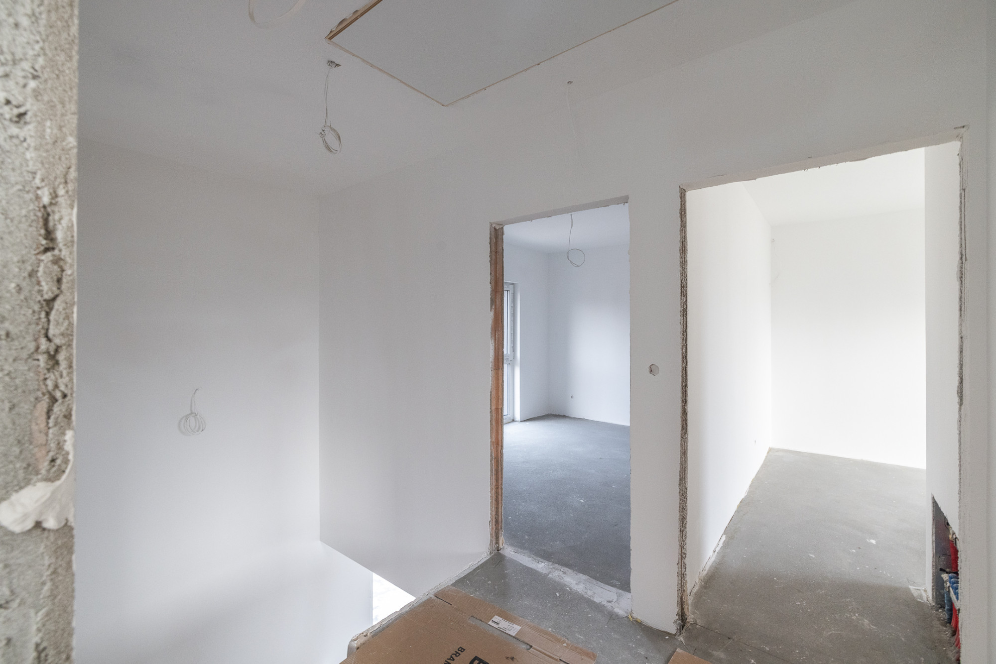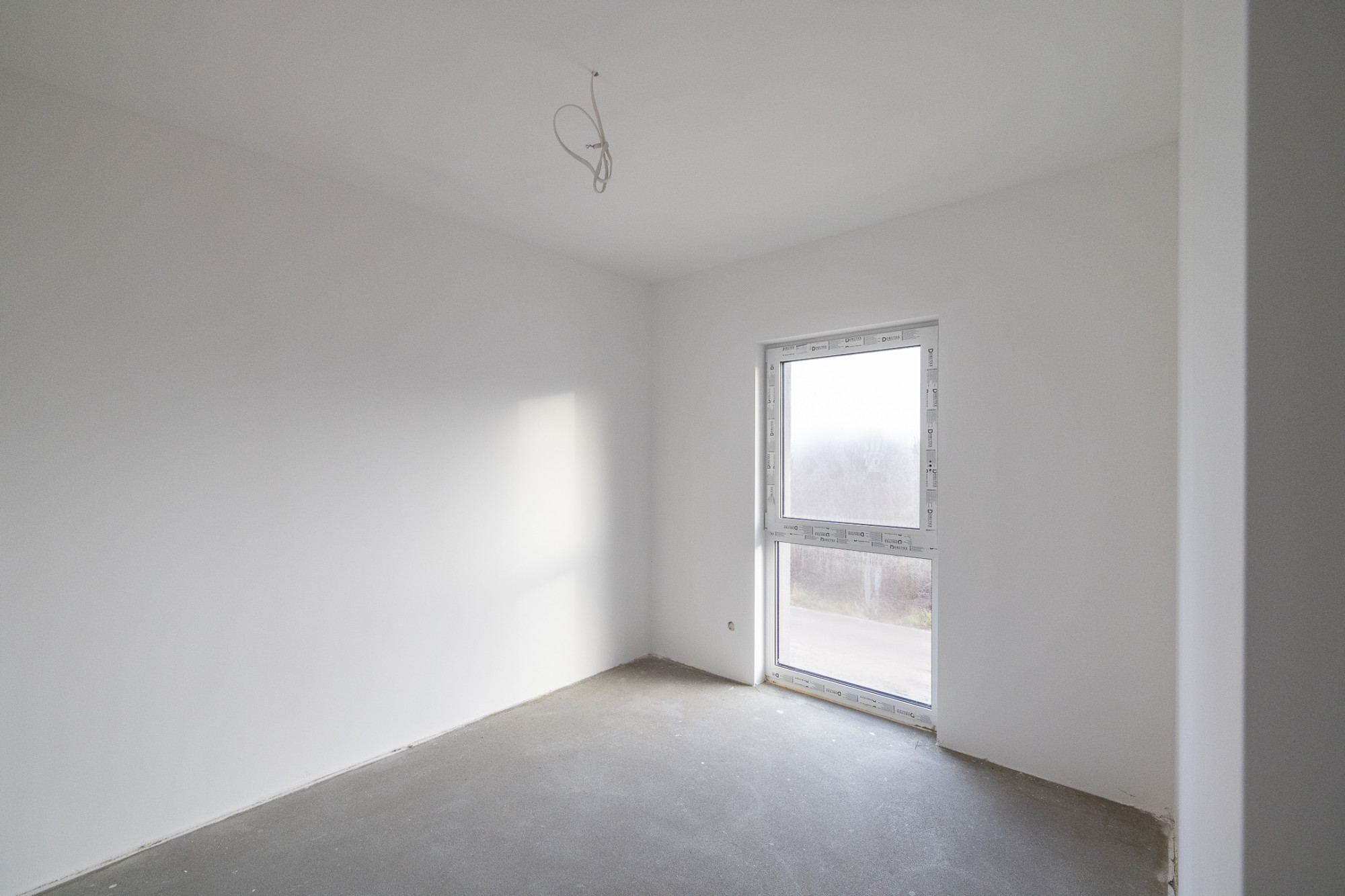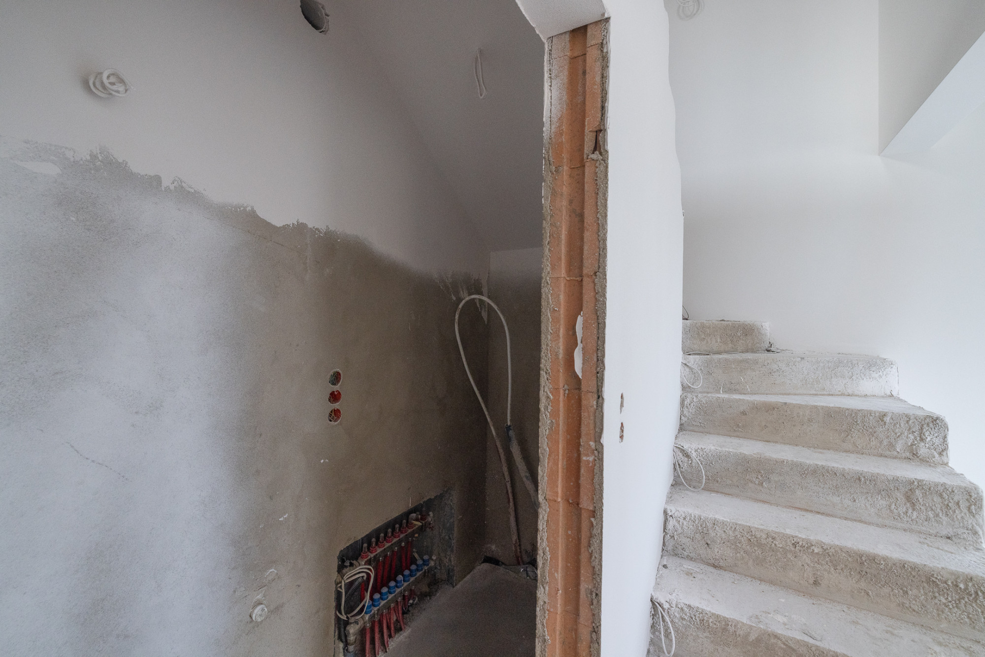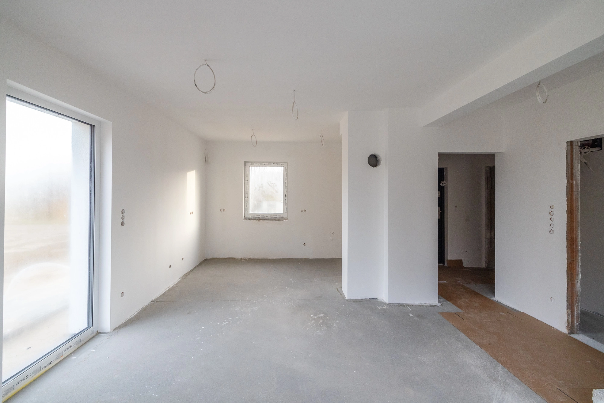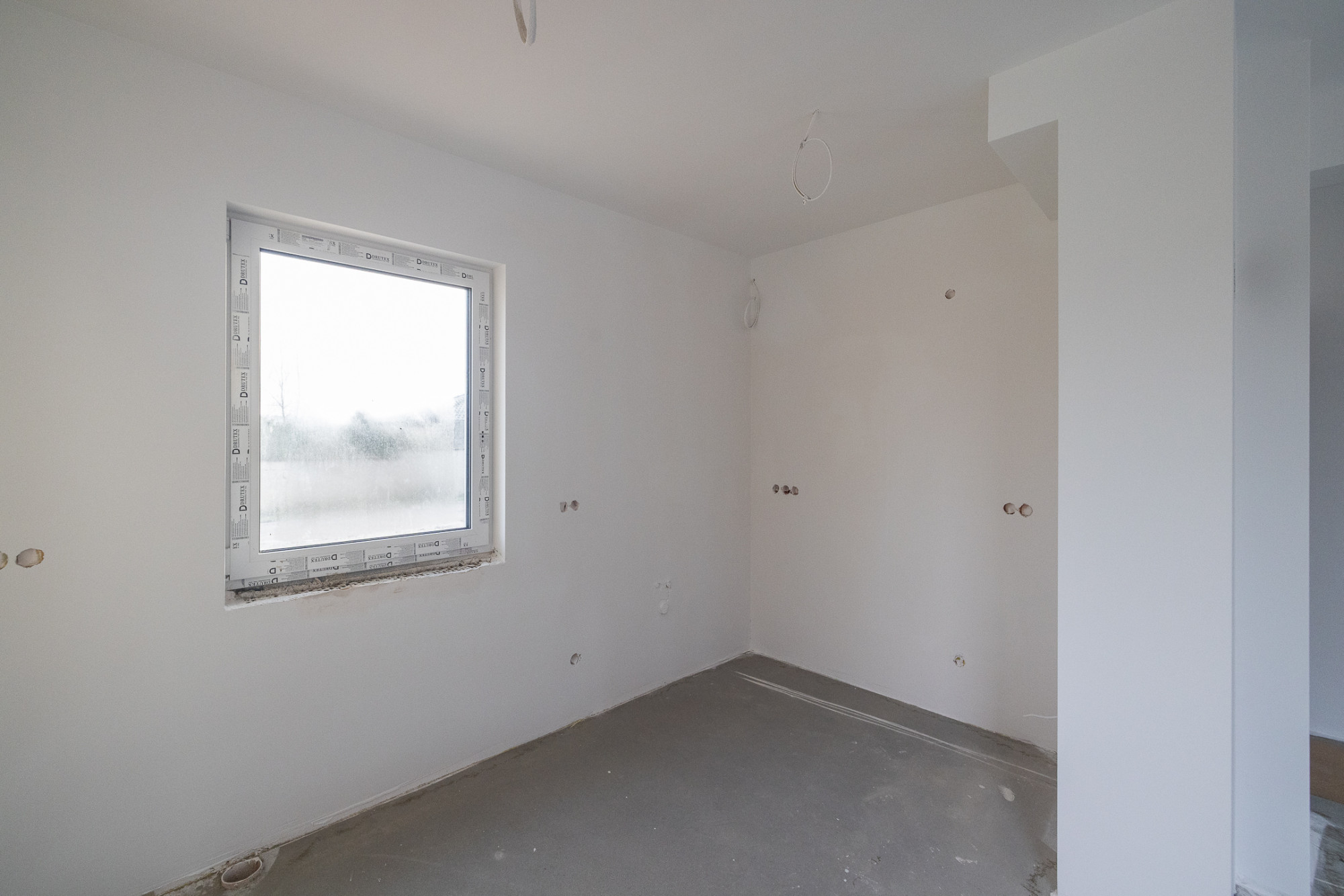 W całym budynku zastosowano trzyszybowe okna i drzwi z ciepłym montażem, co zapewnia doskonałą szczelność oraz ogranicza straty ciepła. Elewację wykończono silikonowym tynkiem zewnętrznym w nowoczesnych, eleganckich odcieniach, co nadaje budynkowi ponadczasowy i estetyczny charakter.