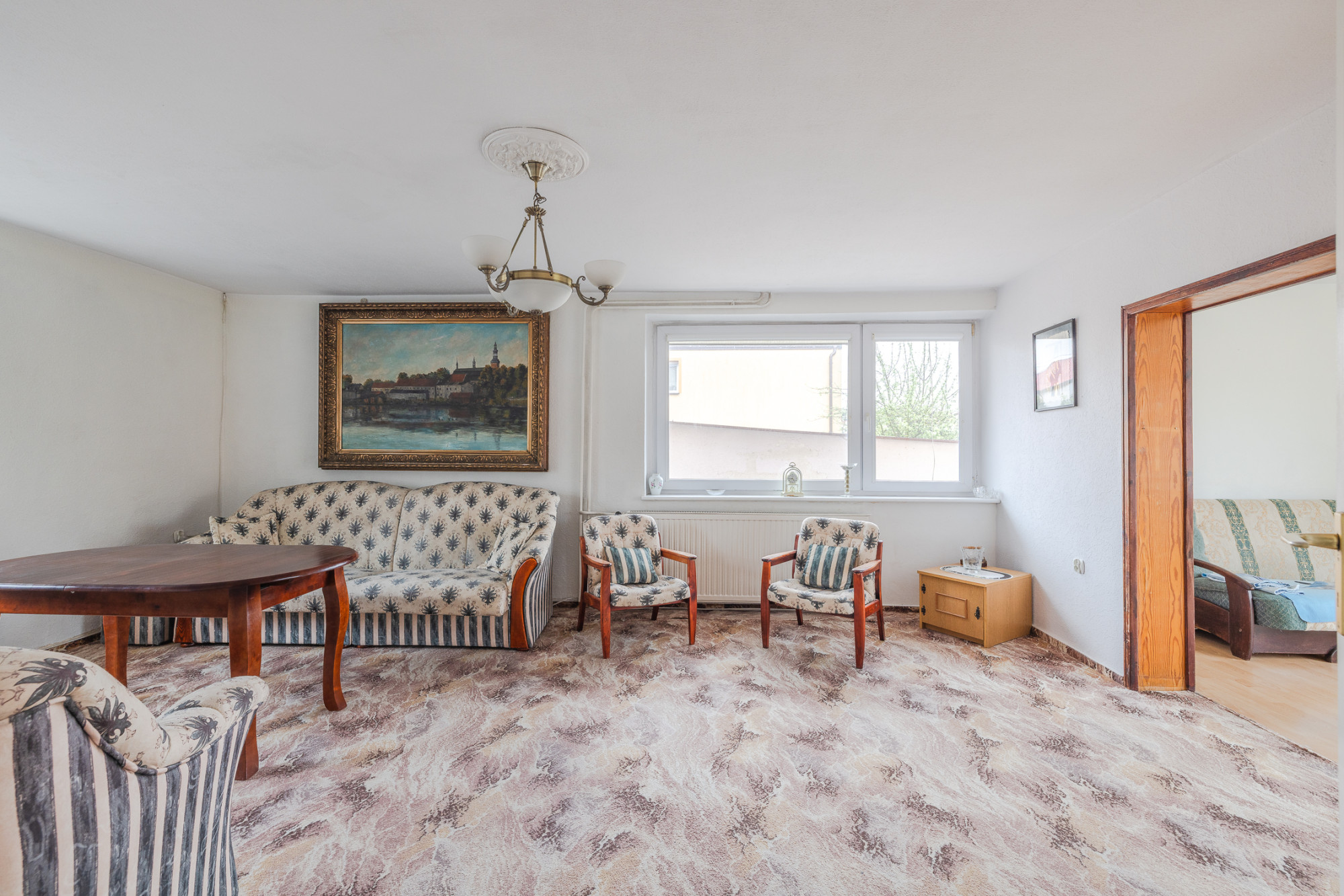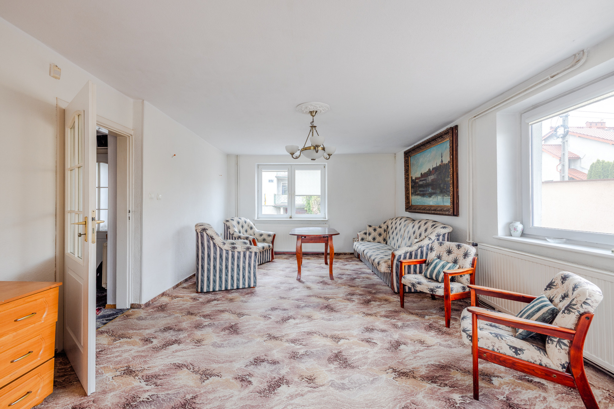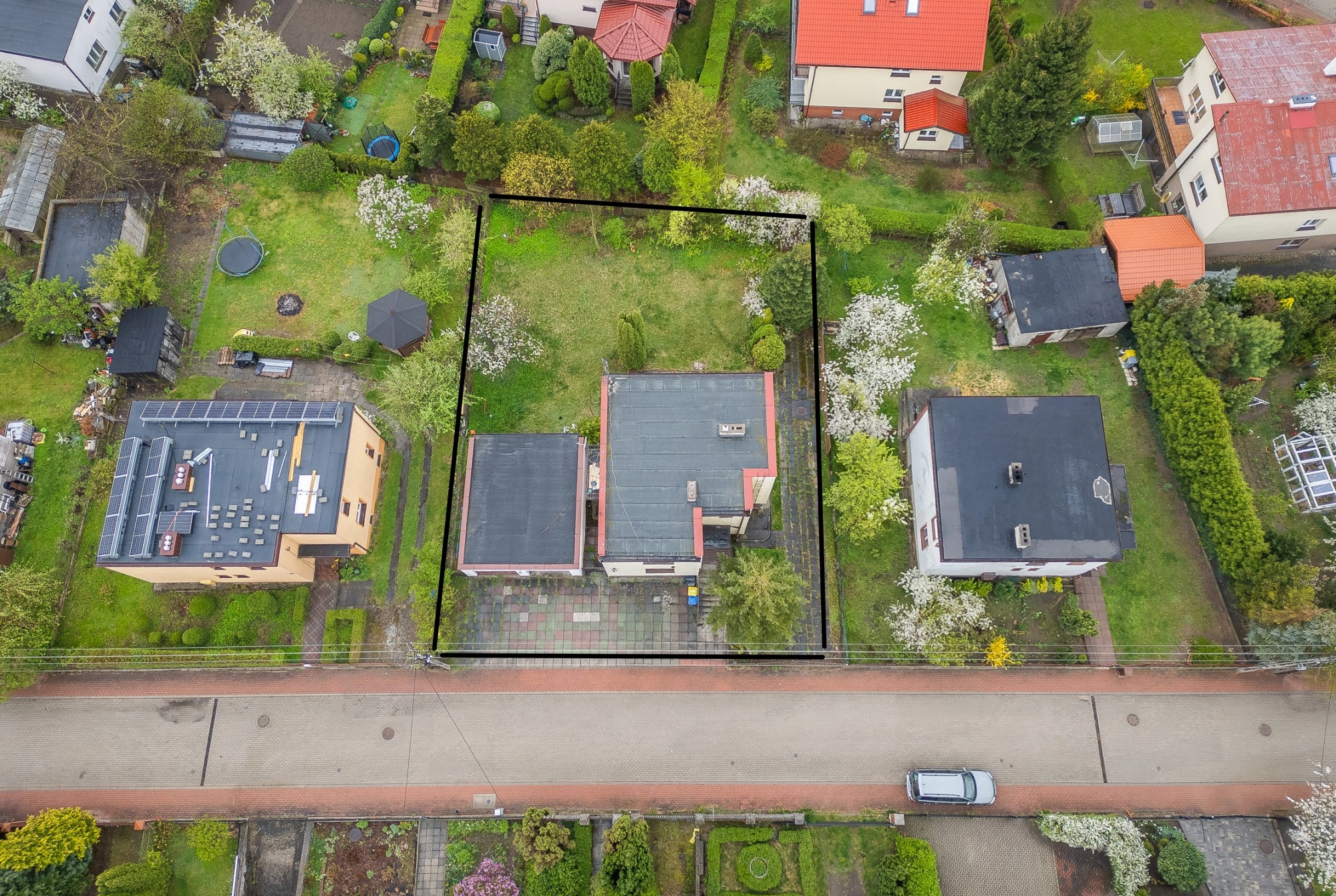 Działka o powierzchni 700 m2, w całości ogrodzona. Dom o powierzchni ok. 200 m2, zbudowany z pustaka na planie zbliżonym do prostokąta o solidnej konstrukcji. Obok domu garaż wolnostojący o powierzchni ok. 50 m2, na 2 samochody.