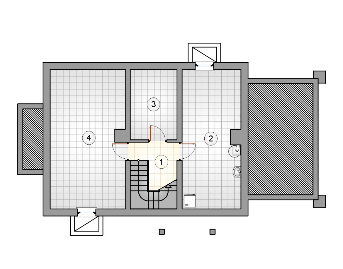składa się z trzech pomieszczeń o łącznej powierzchni 41,4 m2