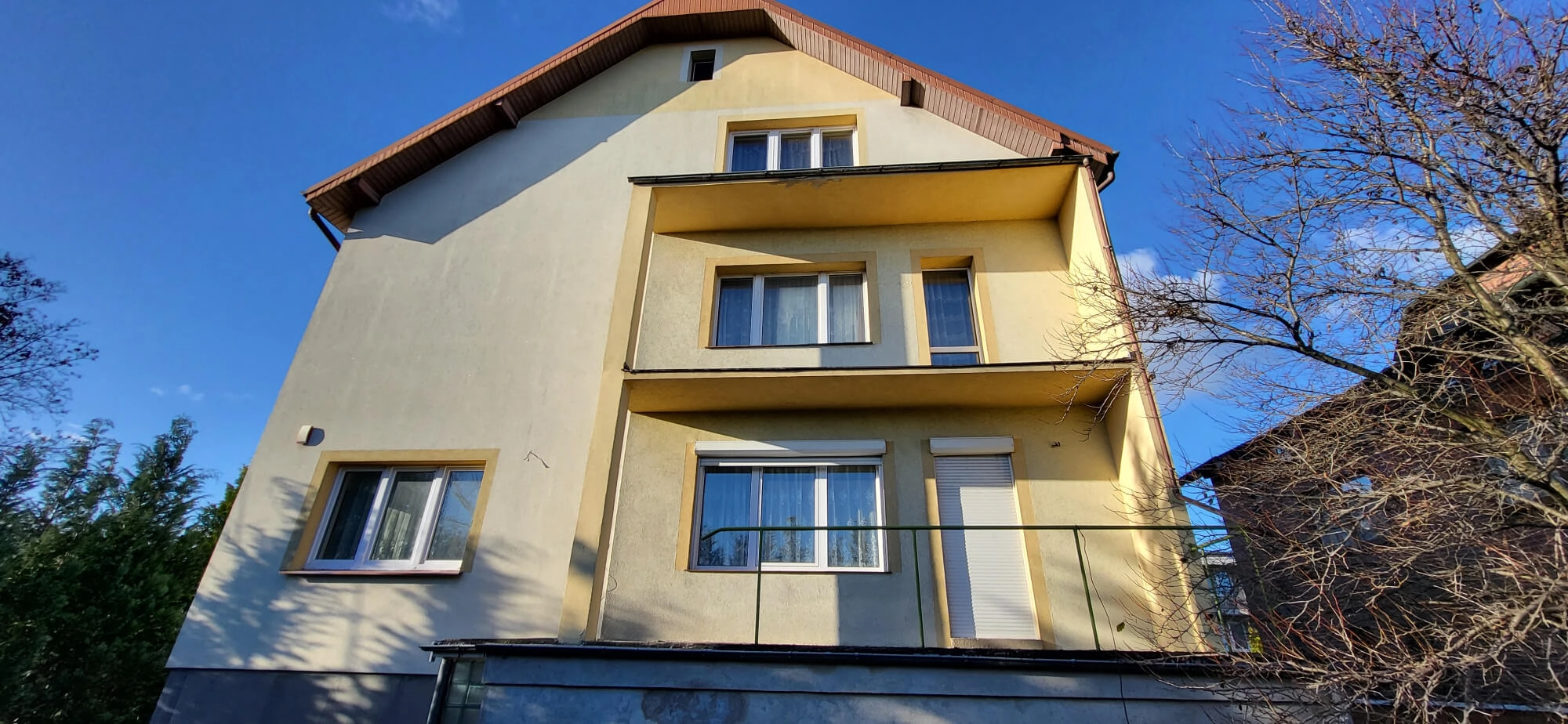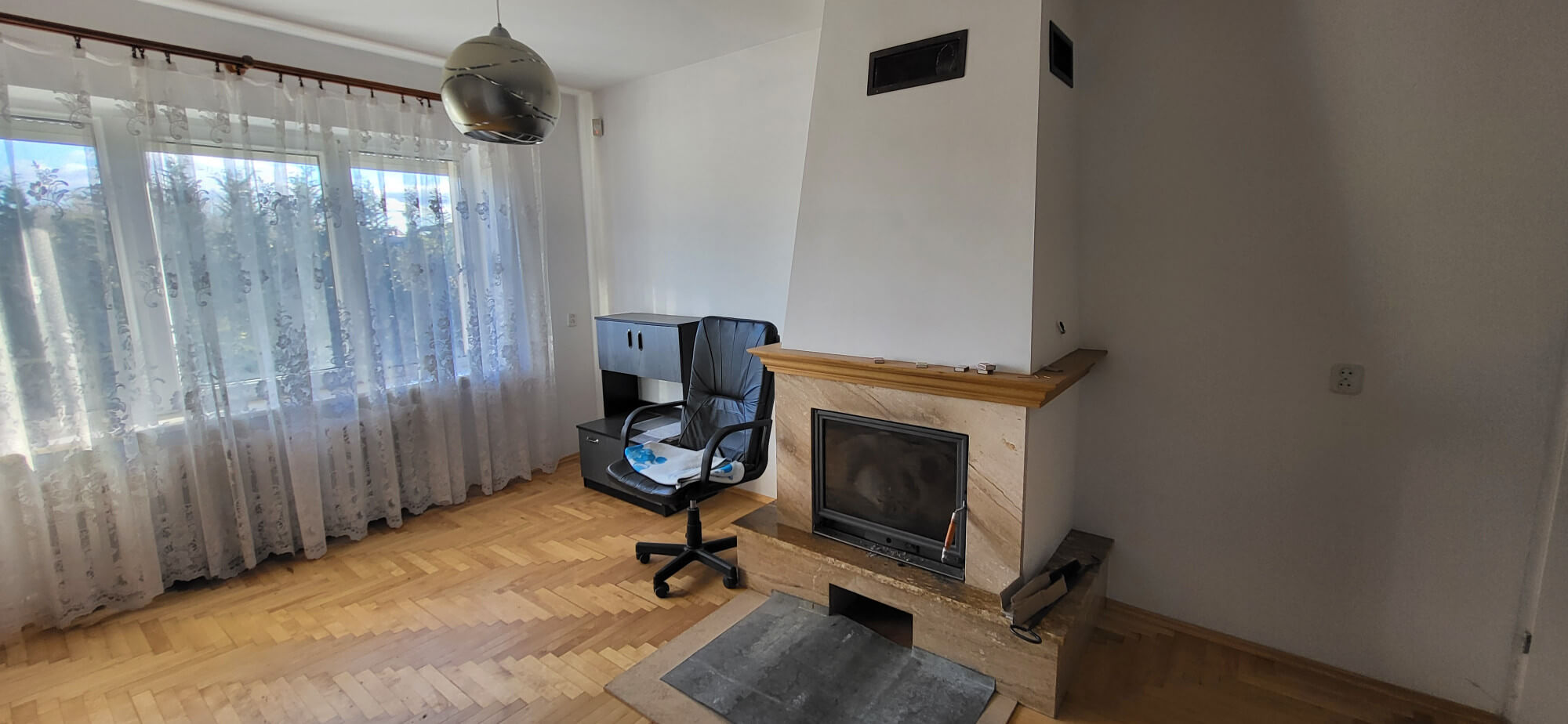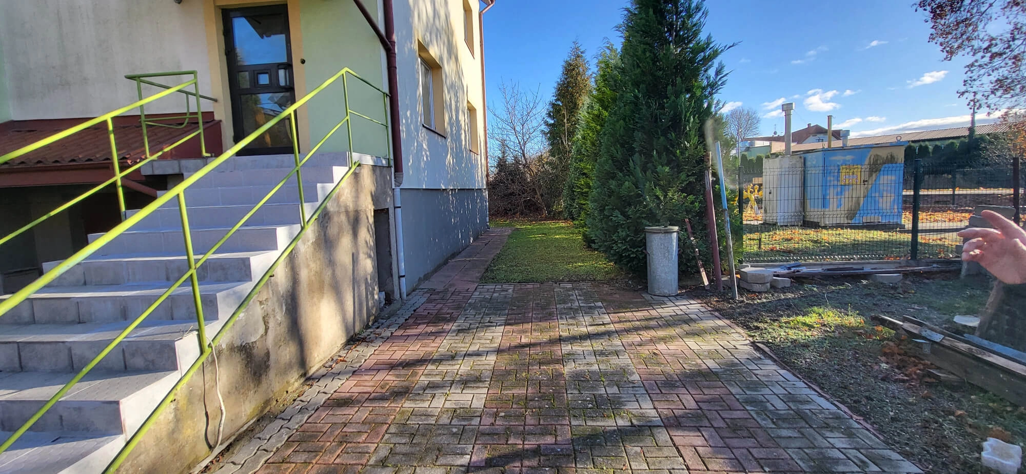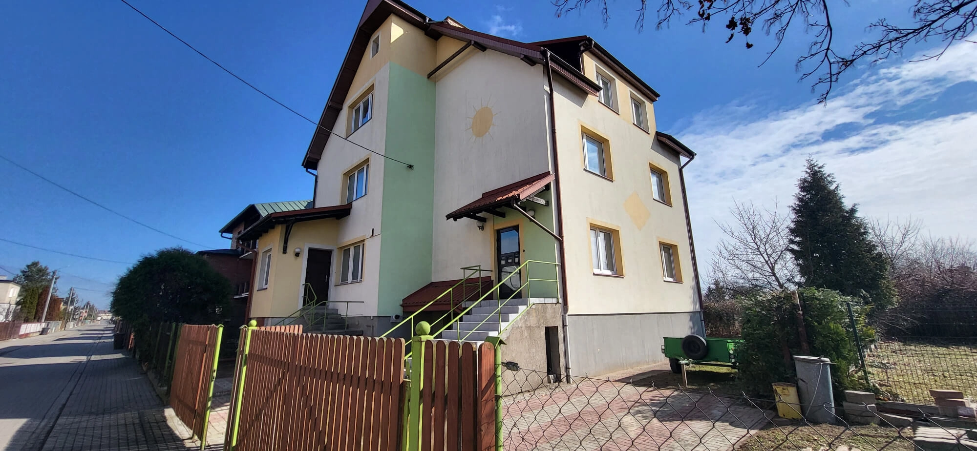 Dom zbudowany w 1998r. o pow. użytkowej 273,76m2. Dom jest w dobrym stanie, pokoje z drewnianą podłogą, schody dębowe, nowe okna, łazienki wymagają remontu. Dom ma dwa wejścia, jedno wejście do biura połączonego z domem, oraz osobne wejście do części mieszkalnej domu. Grube ściany domu wraz z nową termo izolacją.
