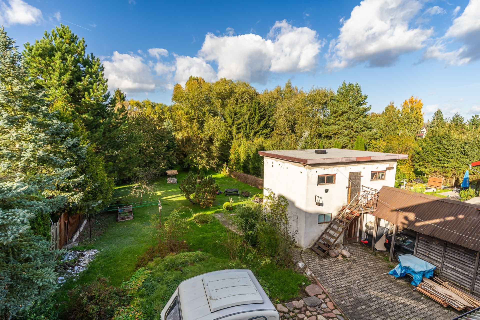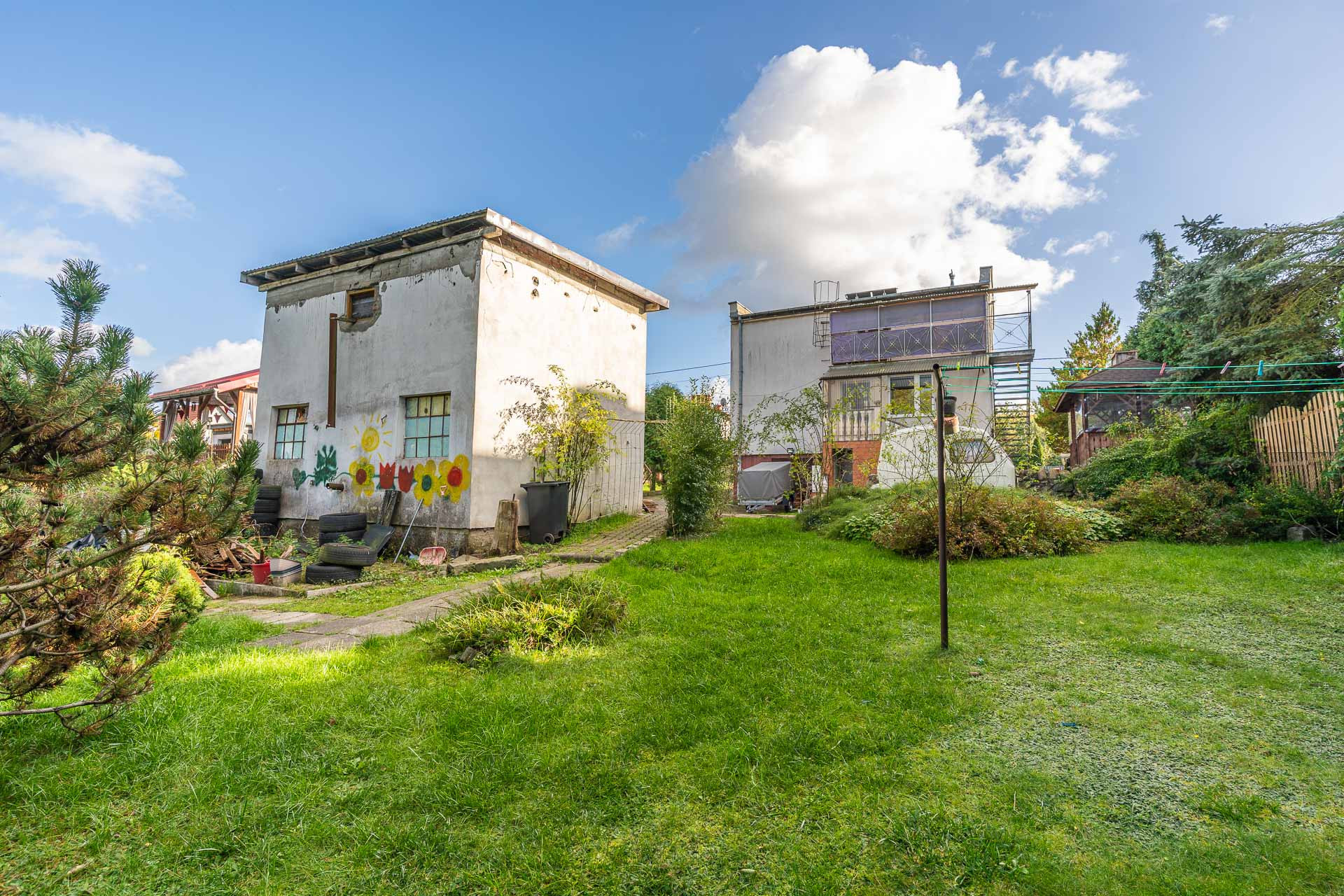 Posesja jest ogrodzona, znajdziemy tutaj również wolnostojący budynek gospodarczy.