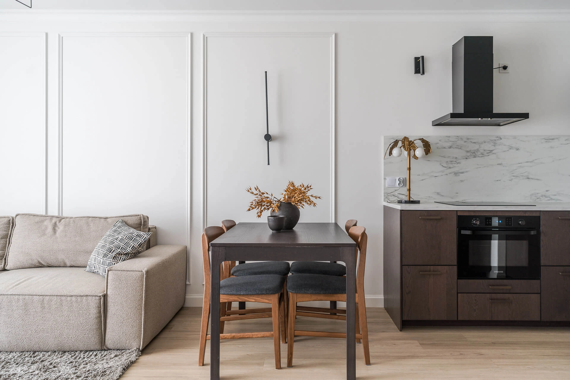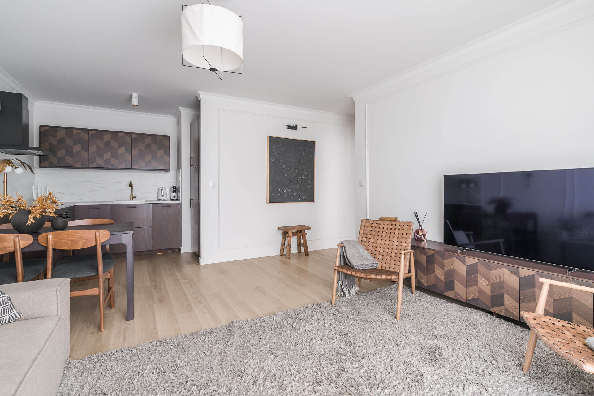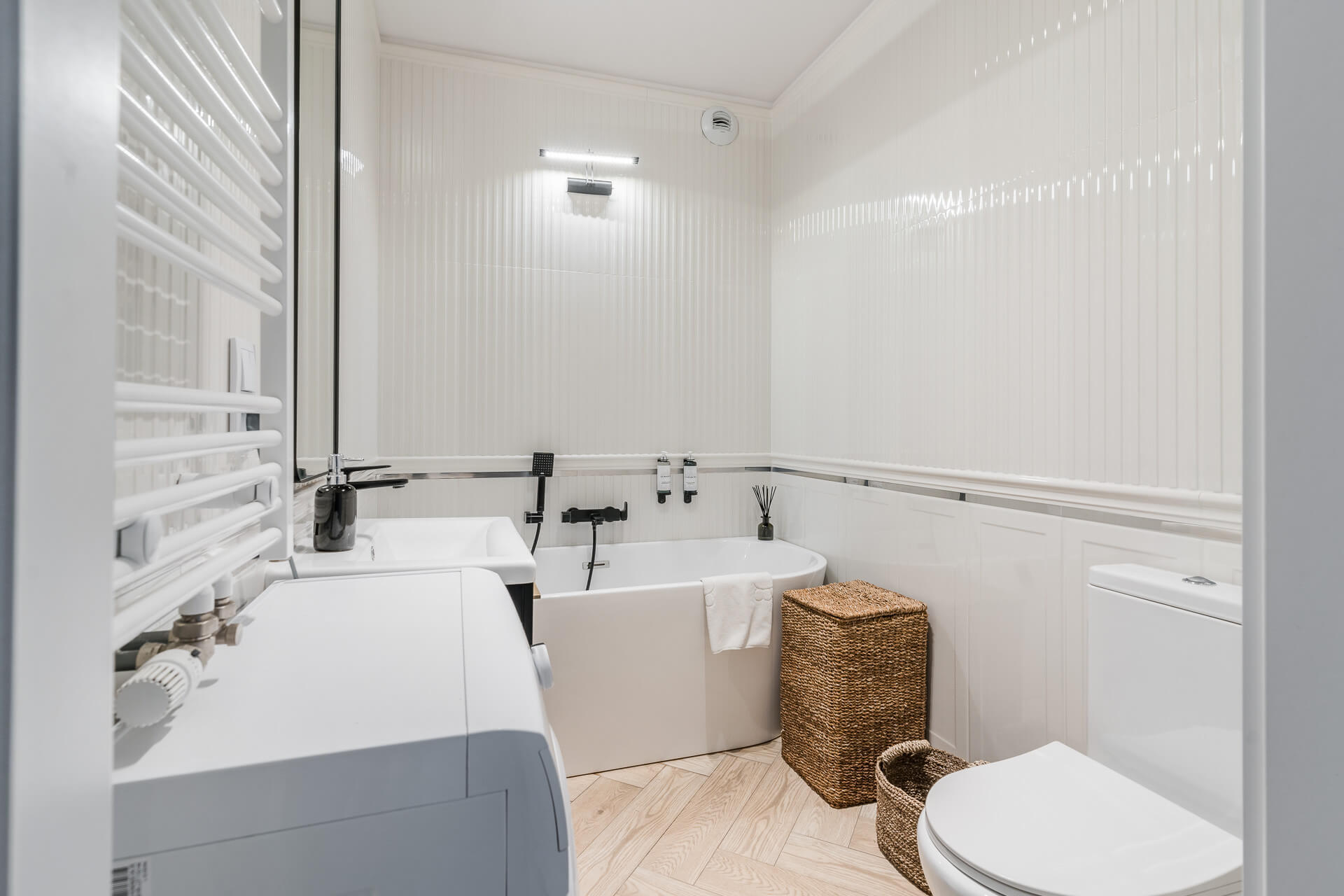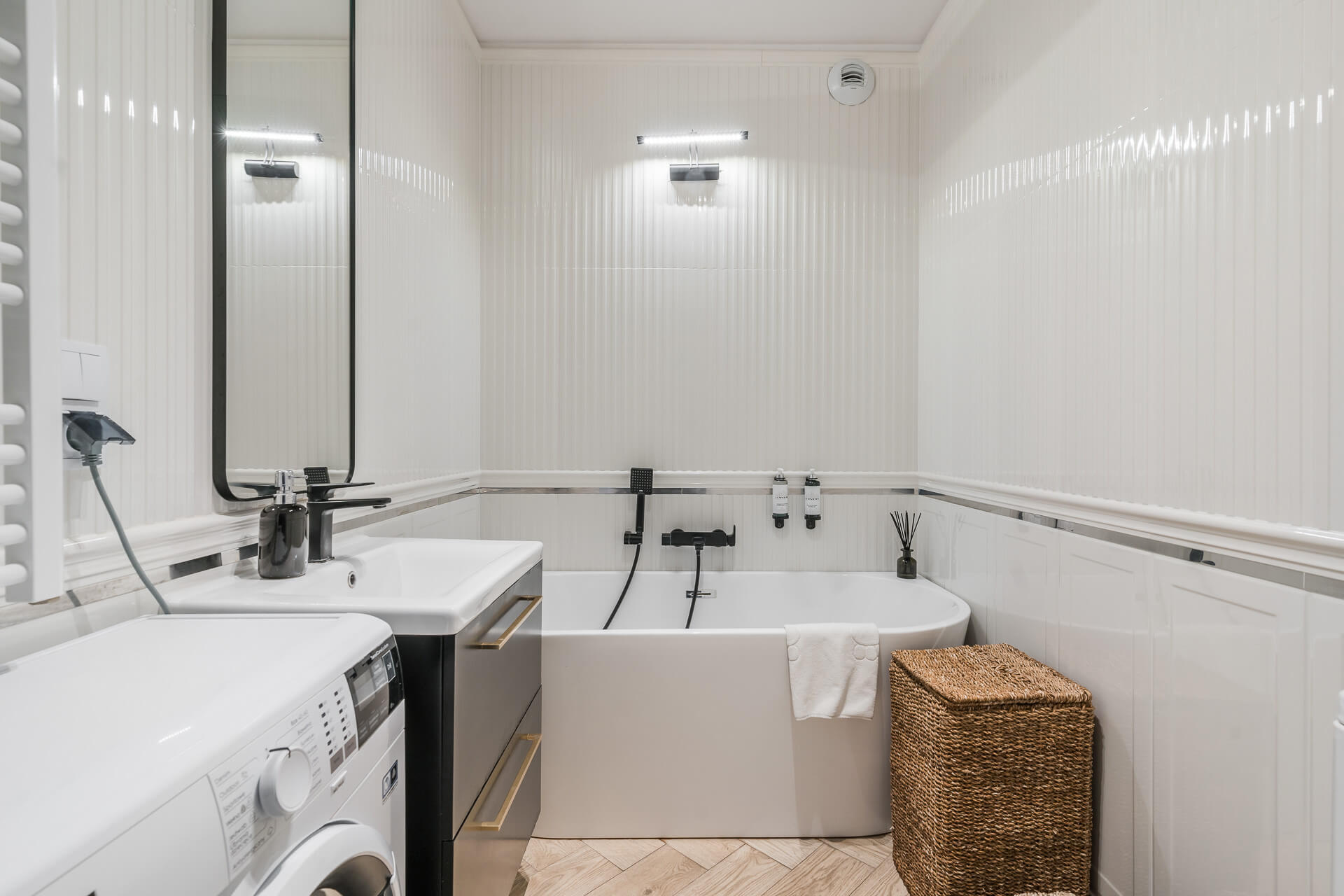 Apartament wykończony w przytulnym i eleganckim stylu, z dbałością o detale i przy użyciu wysokiej jakości materiałów. Wszystkie zabudowy zostały wykonane na wymiar przez stolarza, a wyjątkowym atutem jest elegancka, wolnostojąca wanna. W cenie pozostaje pełne wyposażenie, w tym sprzęt AGD: telewizor, pralka, lodówka, piekarnik, okap oraz zmywarka, a apartament jest gotowy do wprowadzenia od zaraz.