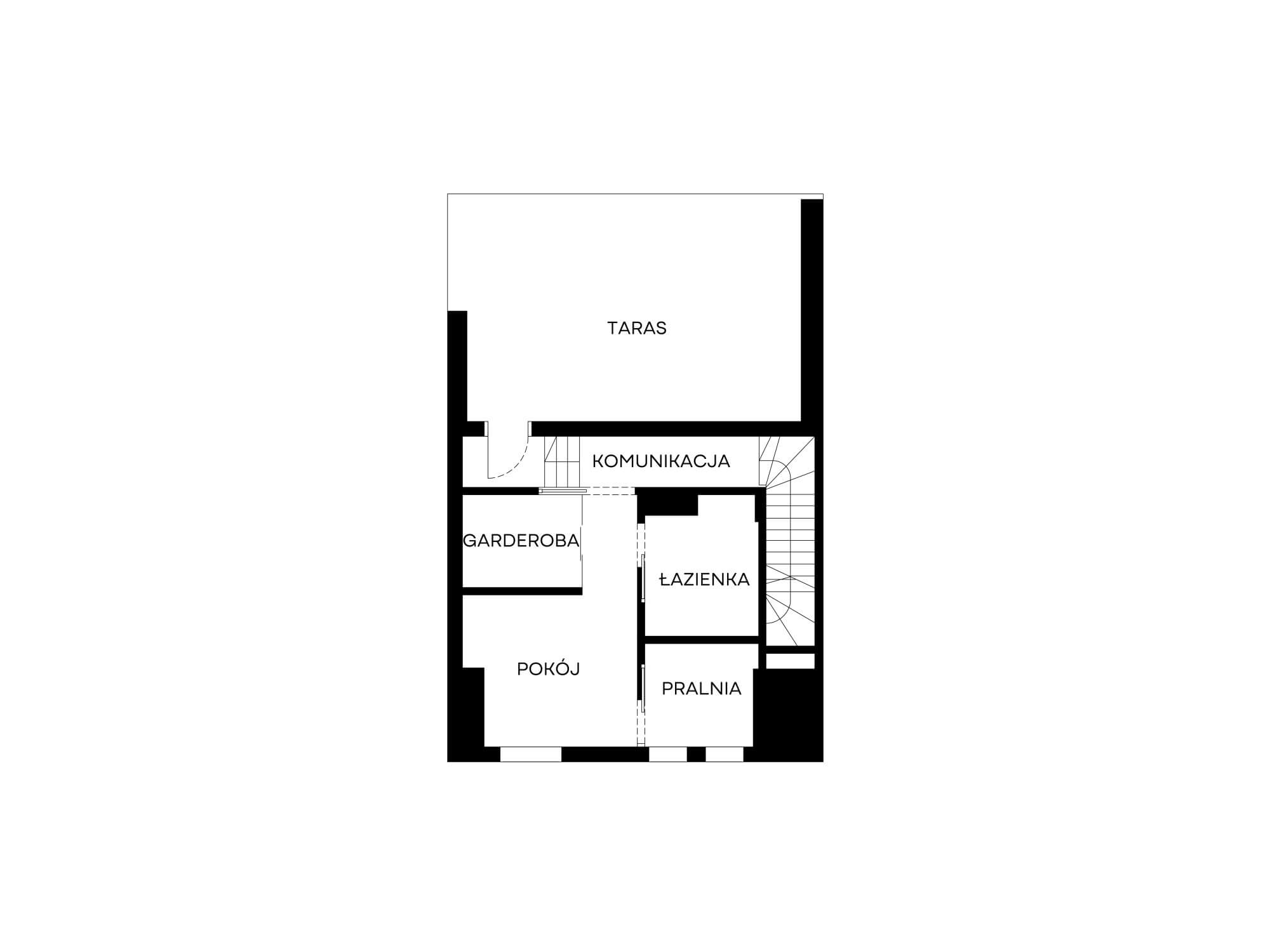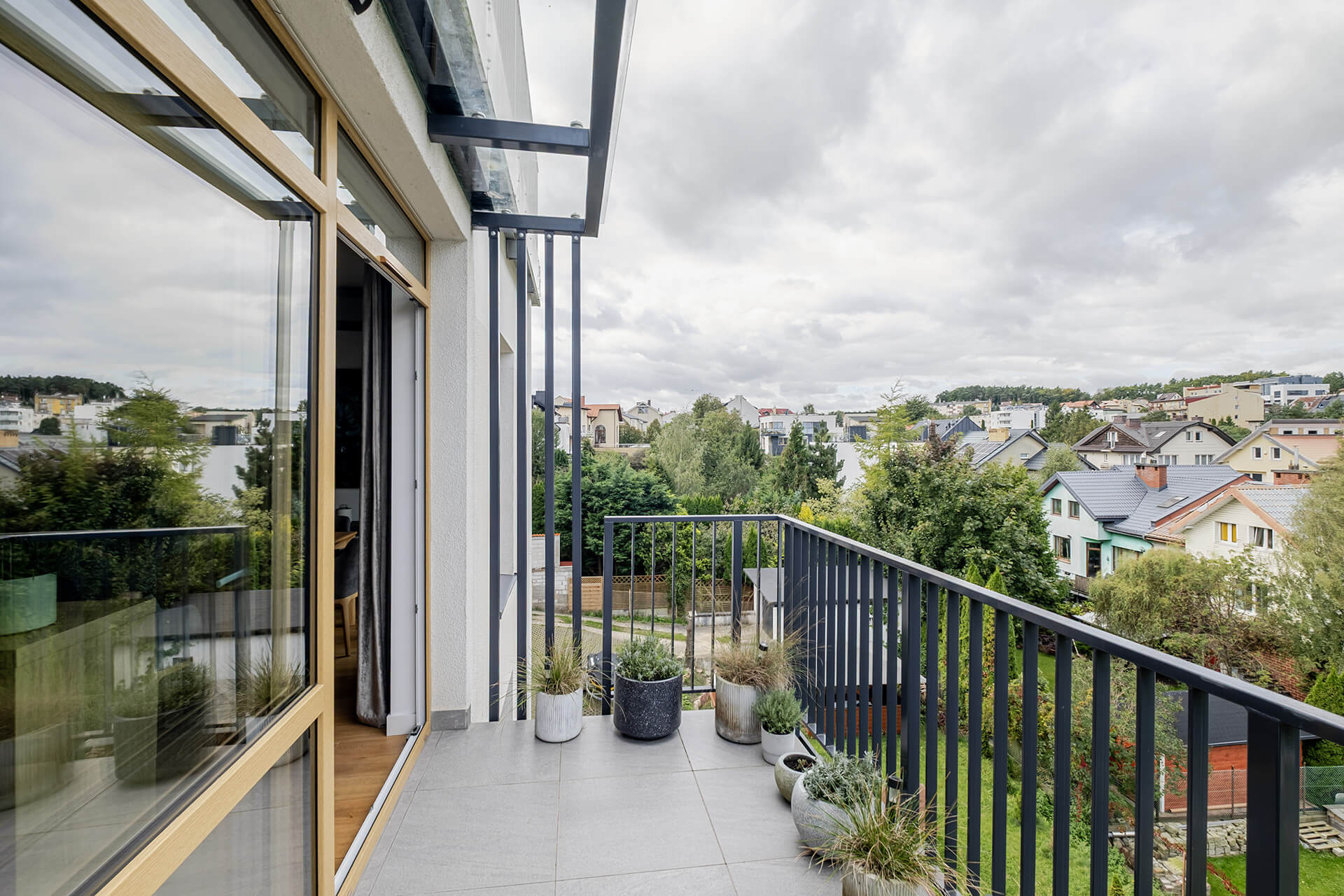 Na kolejnej kondygnacji znajduję się sypialnia z garderobą, łazienką oraz pomieszczenie na pralkę i suszarkę. Z tego piętra jest też wyjście na taras z którego rozprzestrzenia się widok na Mały Kack.