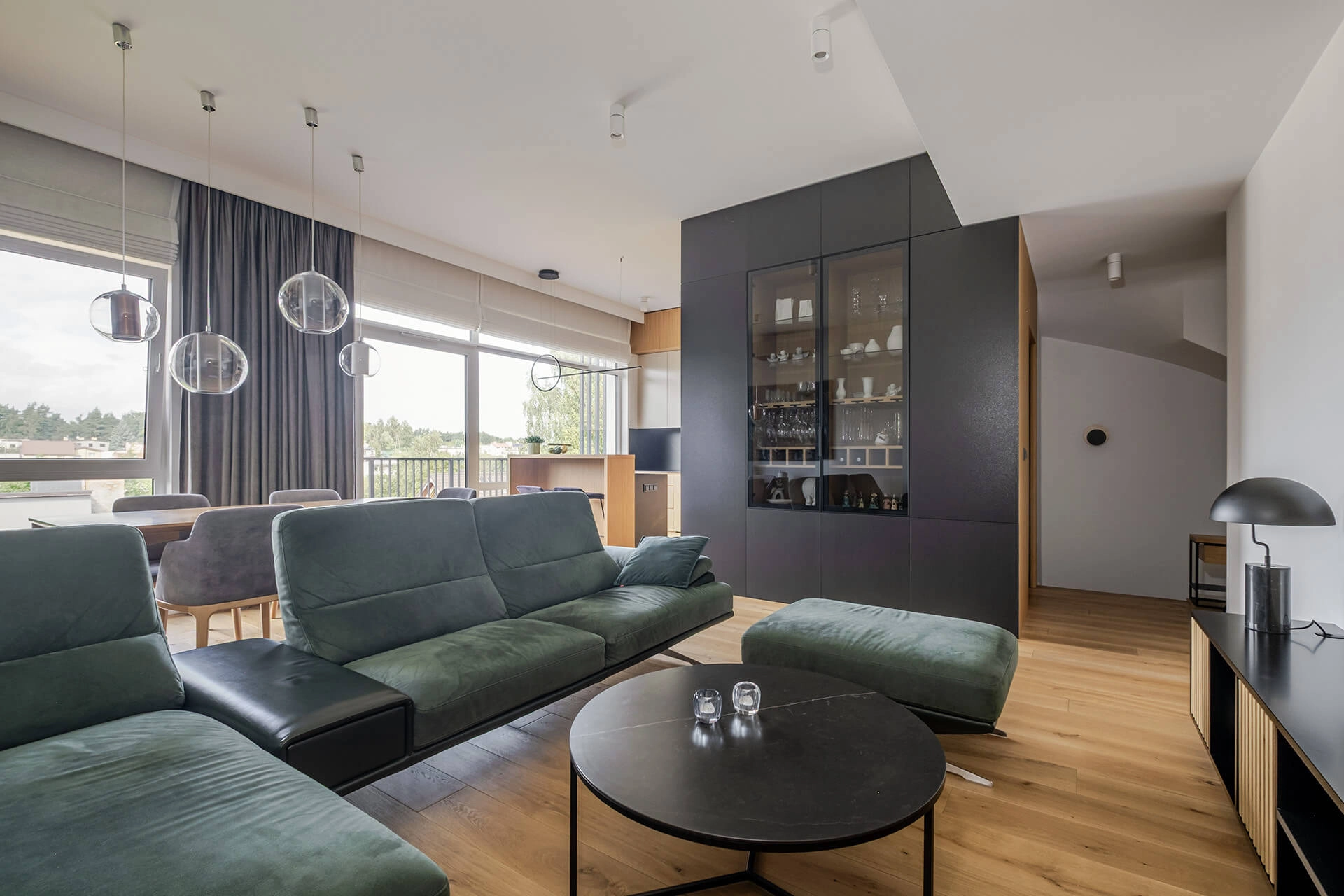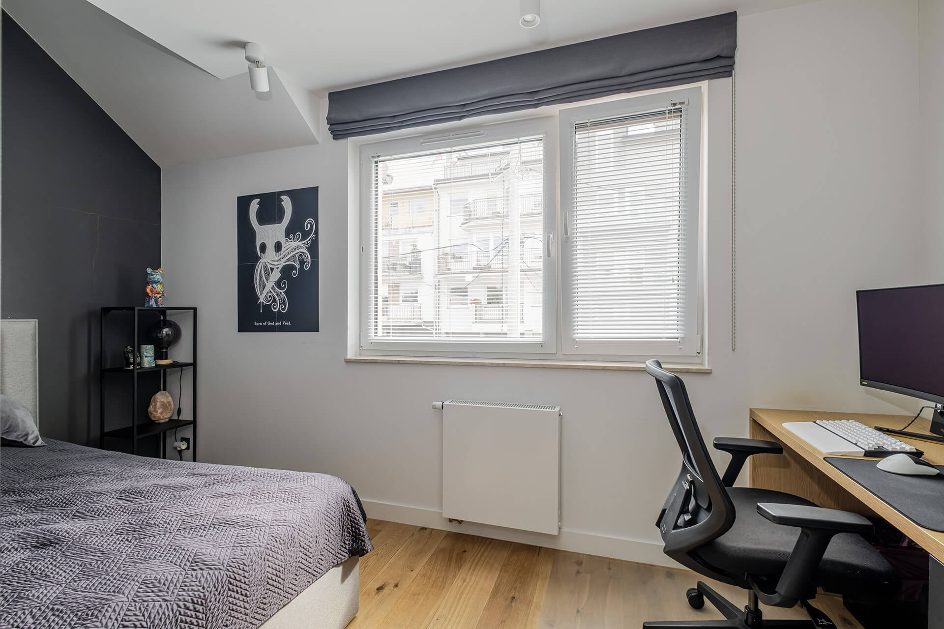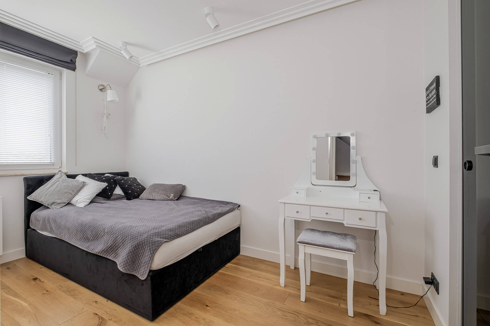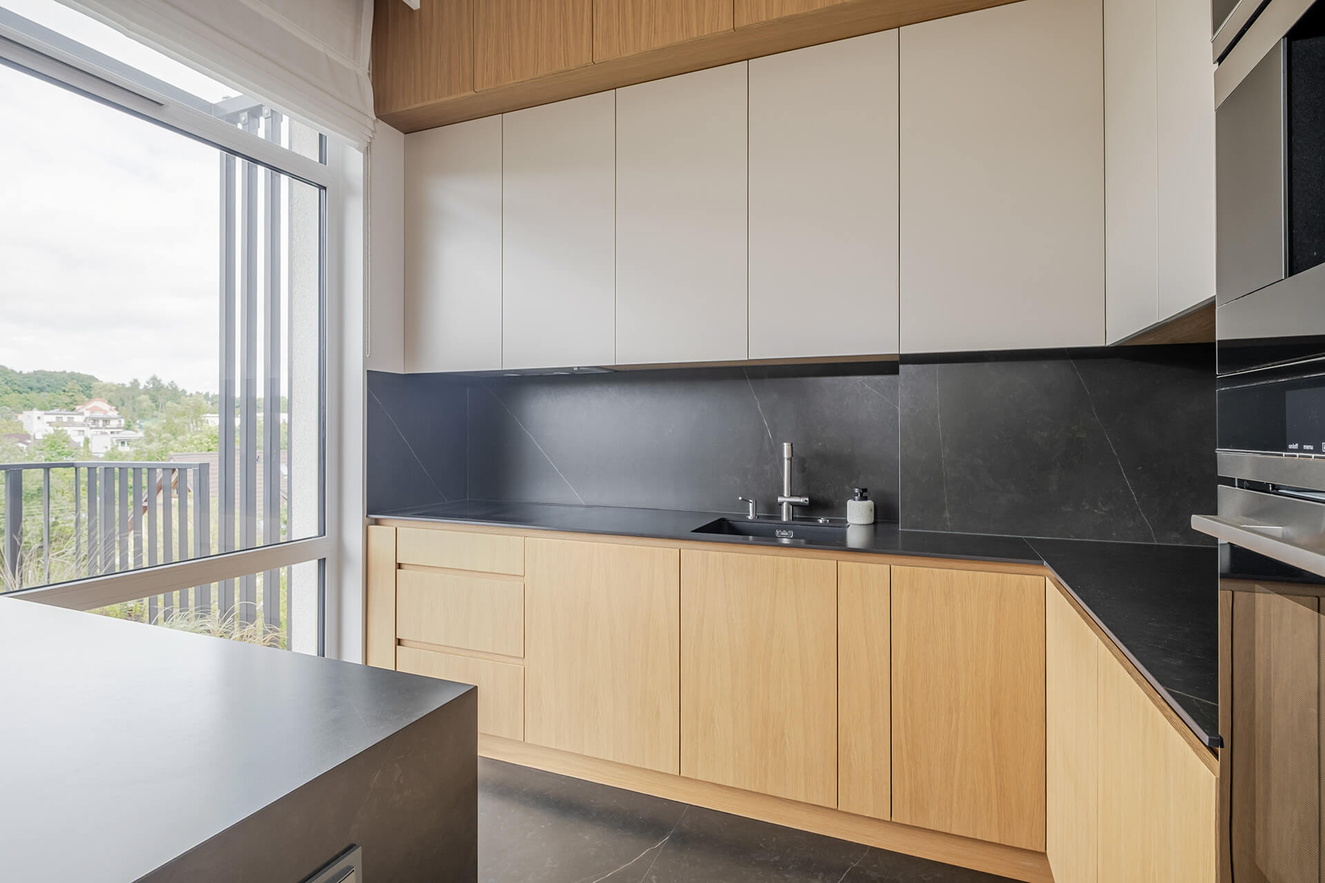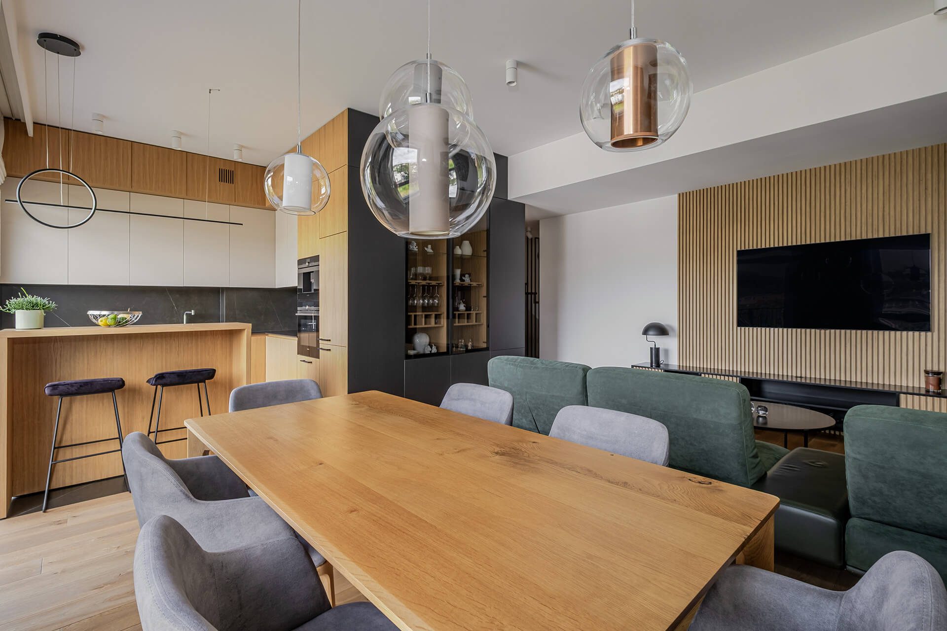 Cały apartament wykończony w najwyższym standardzie, a jego rozkład i funkcjonalność zapewnia wysoki standard i komfort życia codziennego. Wszystkie elementy drewniane są wykonane z dębu a kuchnia jest ze spieku kwarcowego.