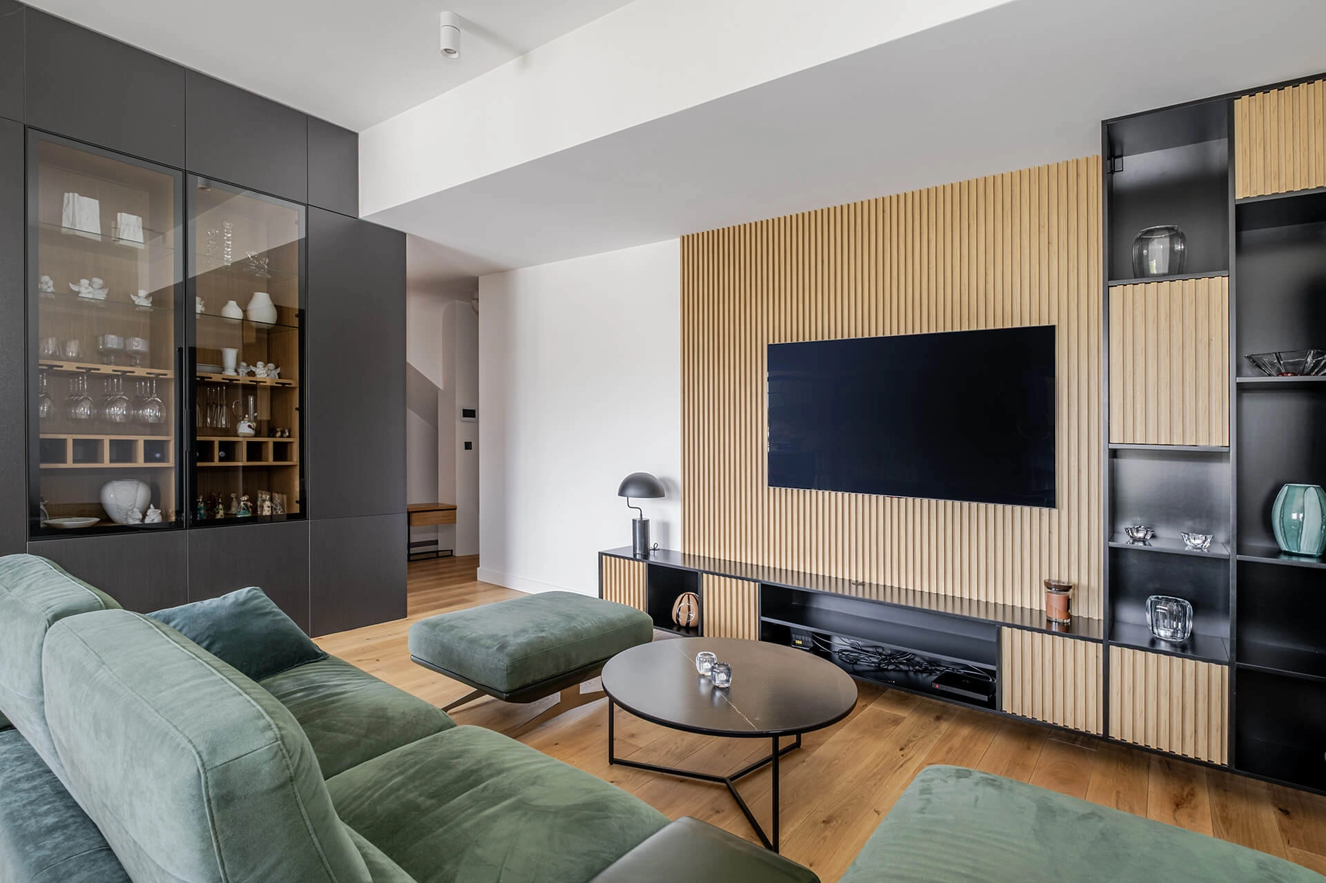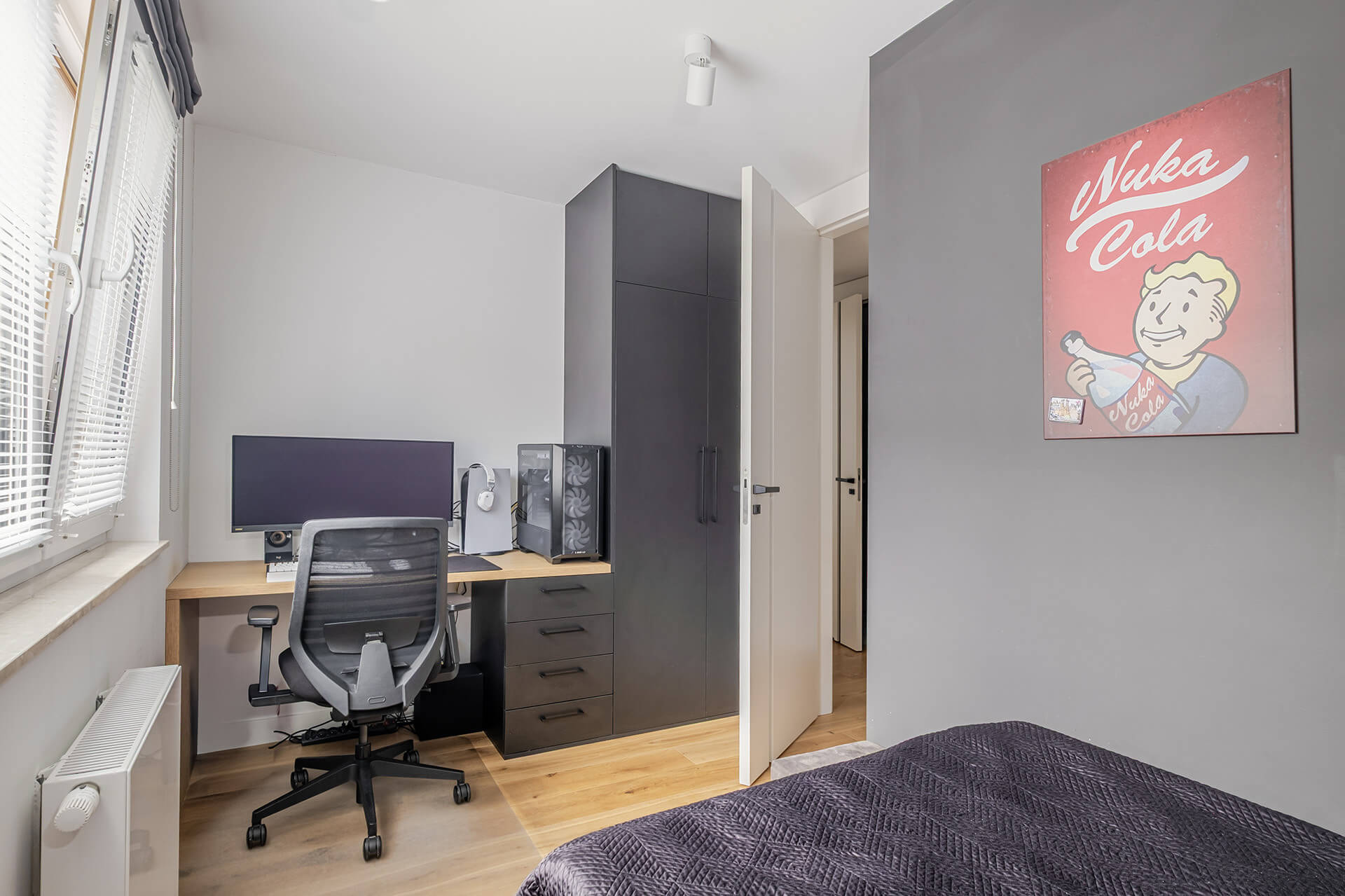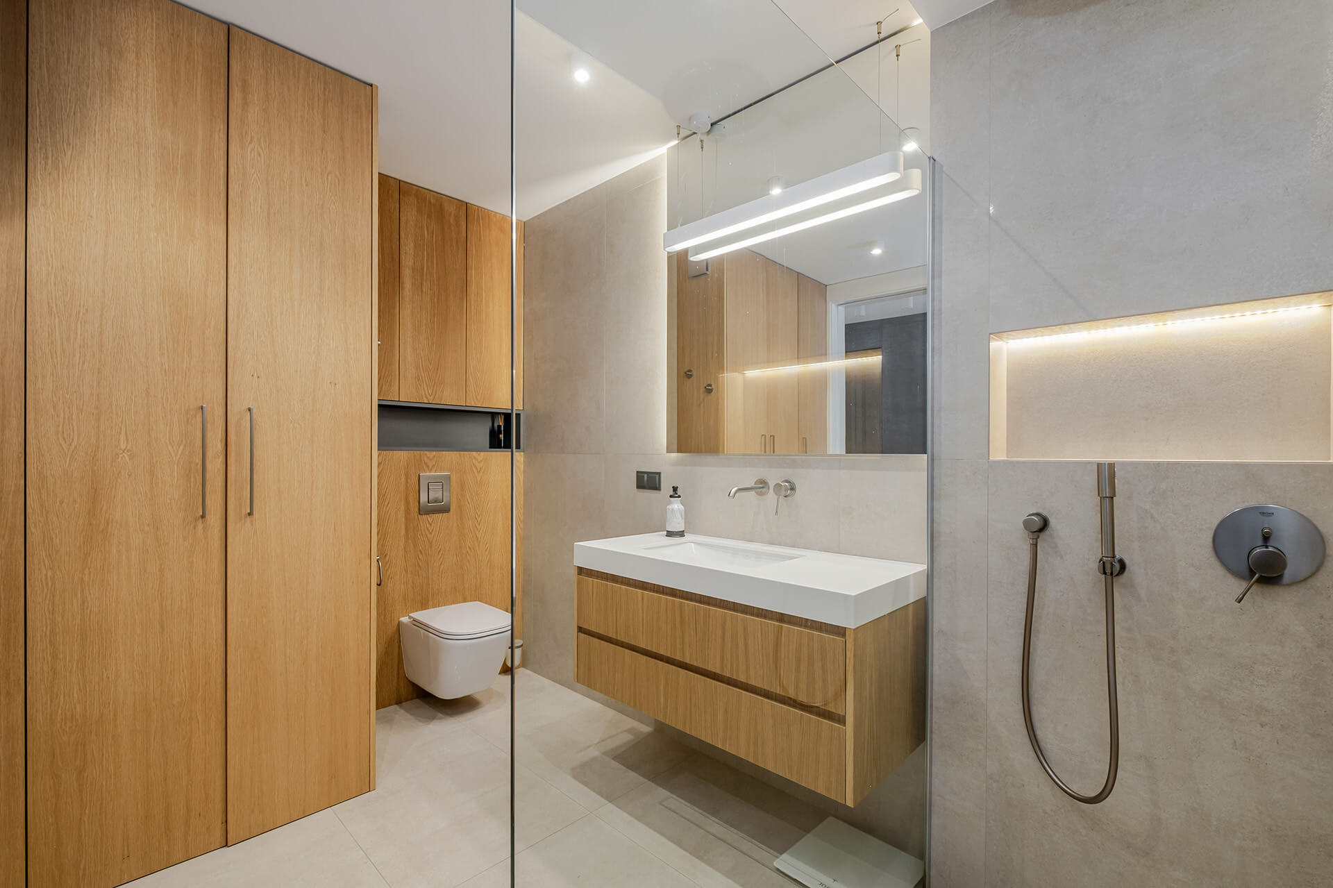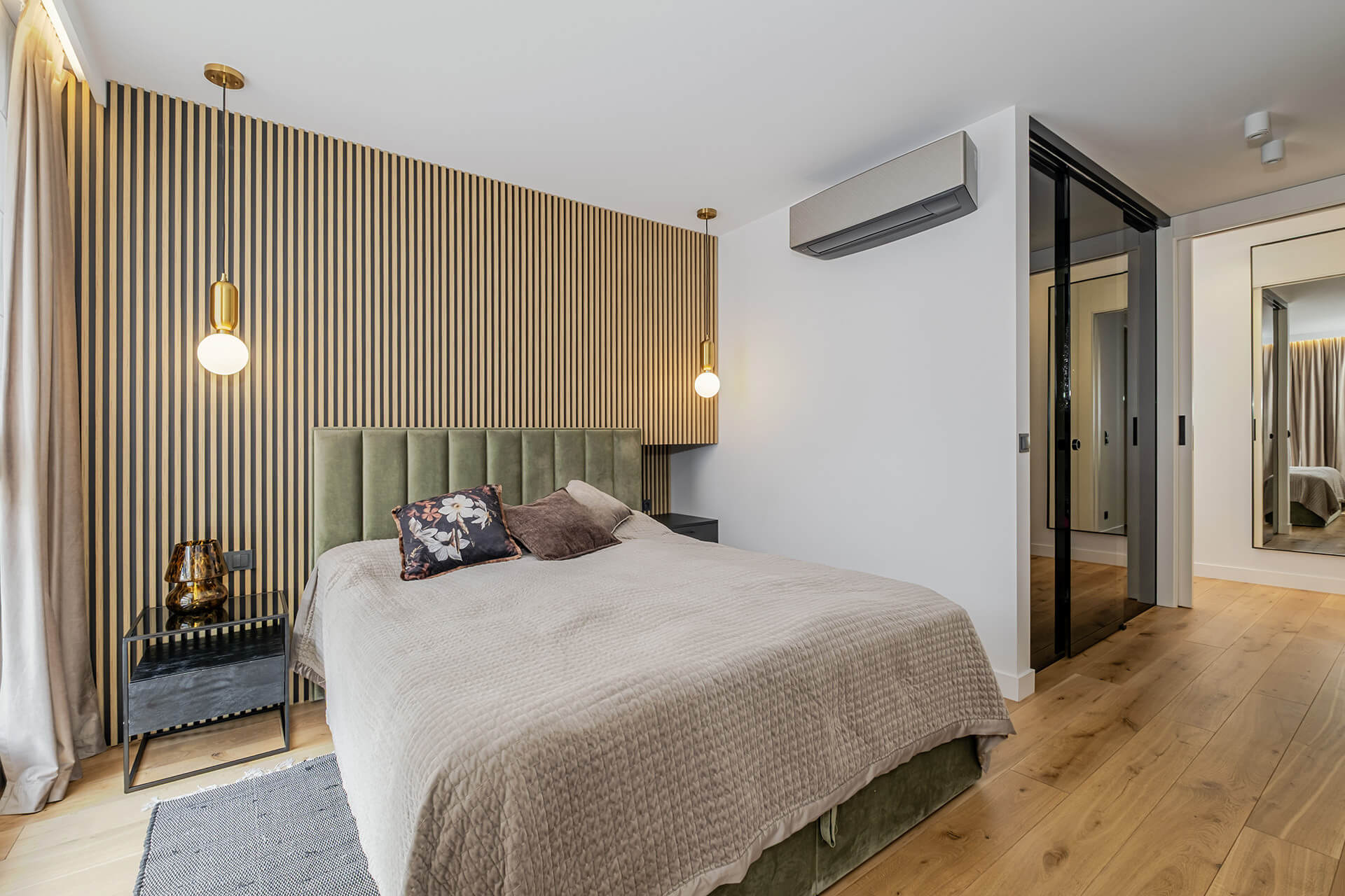 Cały apartament wykończony w najwyższym standardzie, a jego rozkład i funkcjonalność zapewnia wysoki standard i komfort życia codziennego. Wszystkie elementy drewniane są wykonane z dębu a kuchnia jest ze spieku kwarcowego.