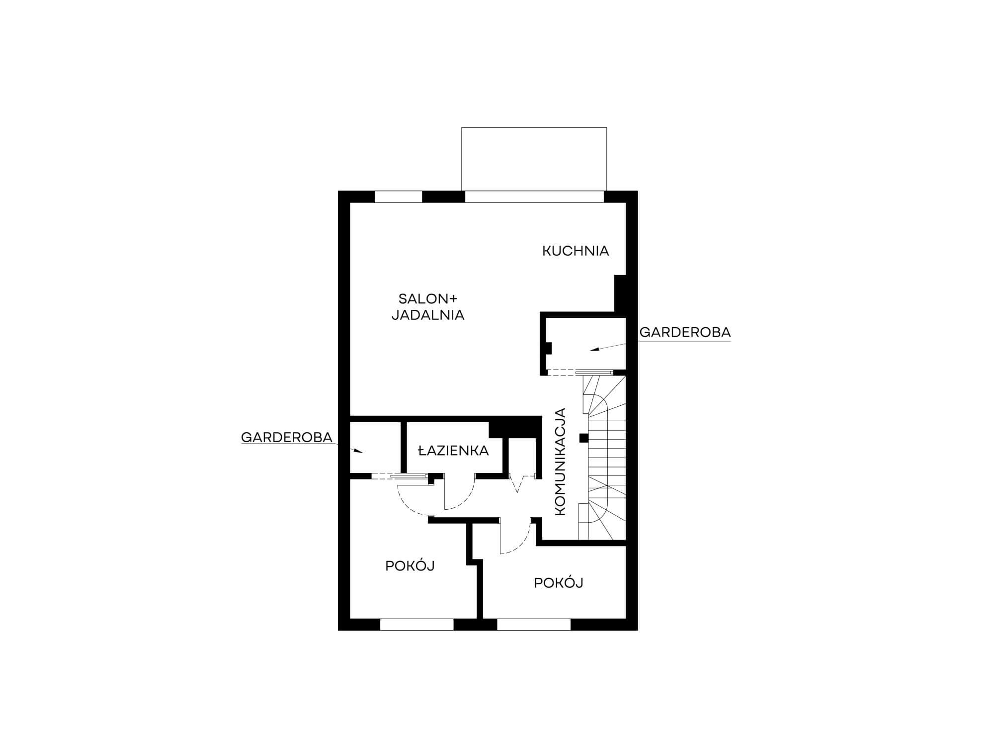 Z poziomu zero jest wejście do mieszkania i garażu (17,15m2), następnie po schodach wchodzimy na piętro na którym znajduję się salon z kuchnią oraz wyjściem na balkon a także 2 sypialnie w tym jedna z garderobą, osobna garderoba, łazienka oraz składzik.