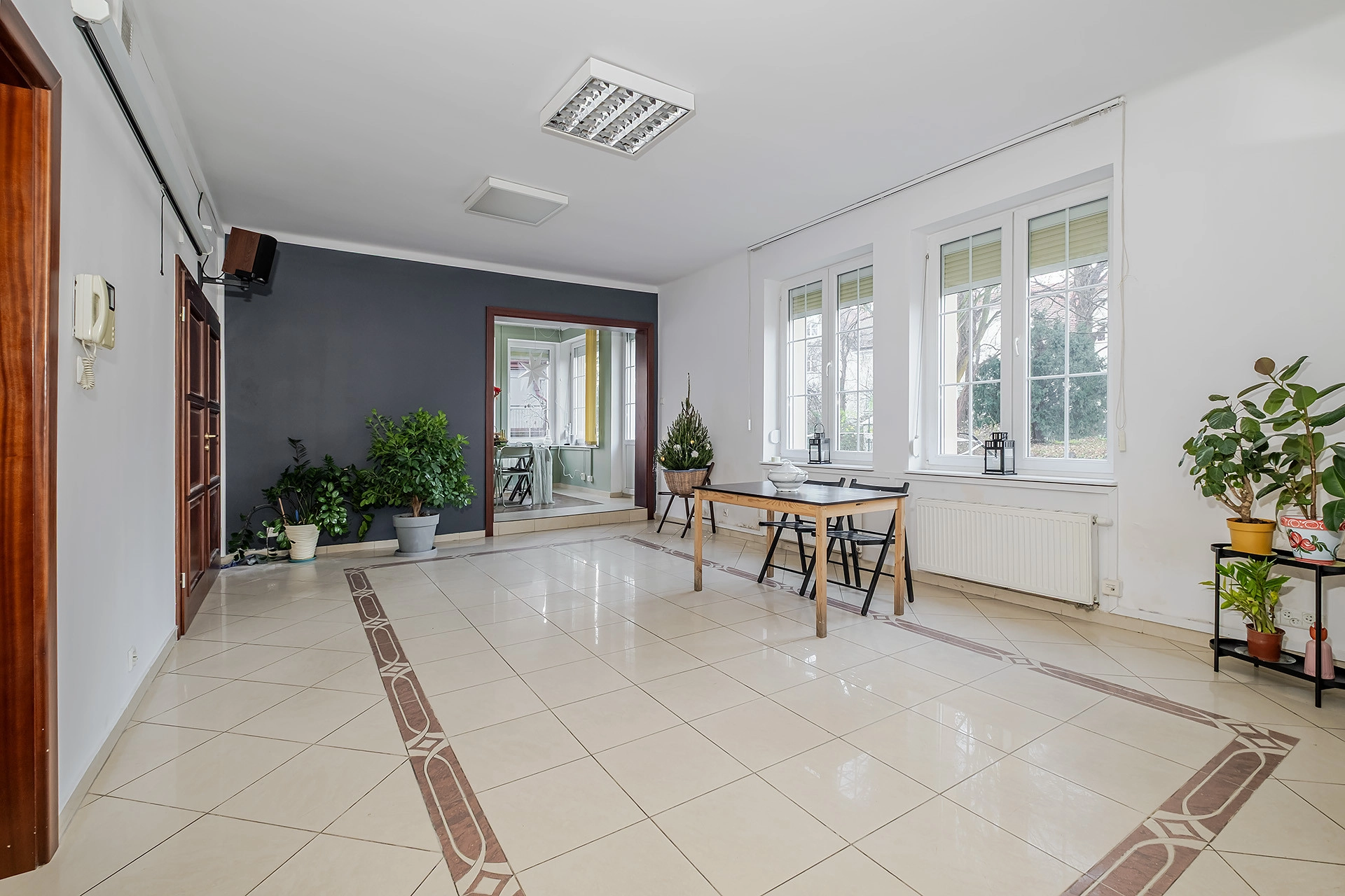 Niewątpliwym wyróżnikiem nieruchomości jest bardzo duży taras, z którego prowadzi bezpośrednie wyjście na zielony ogród dostępny dla mieszkańców. To rzadko spotykany atut w lokalach użytkowych, idealny jako strefa relaksu, miejsce spotkań biznesowych lub element prestiżowy dla klientów.