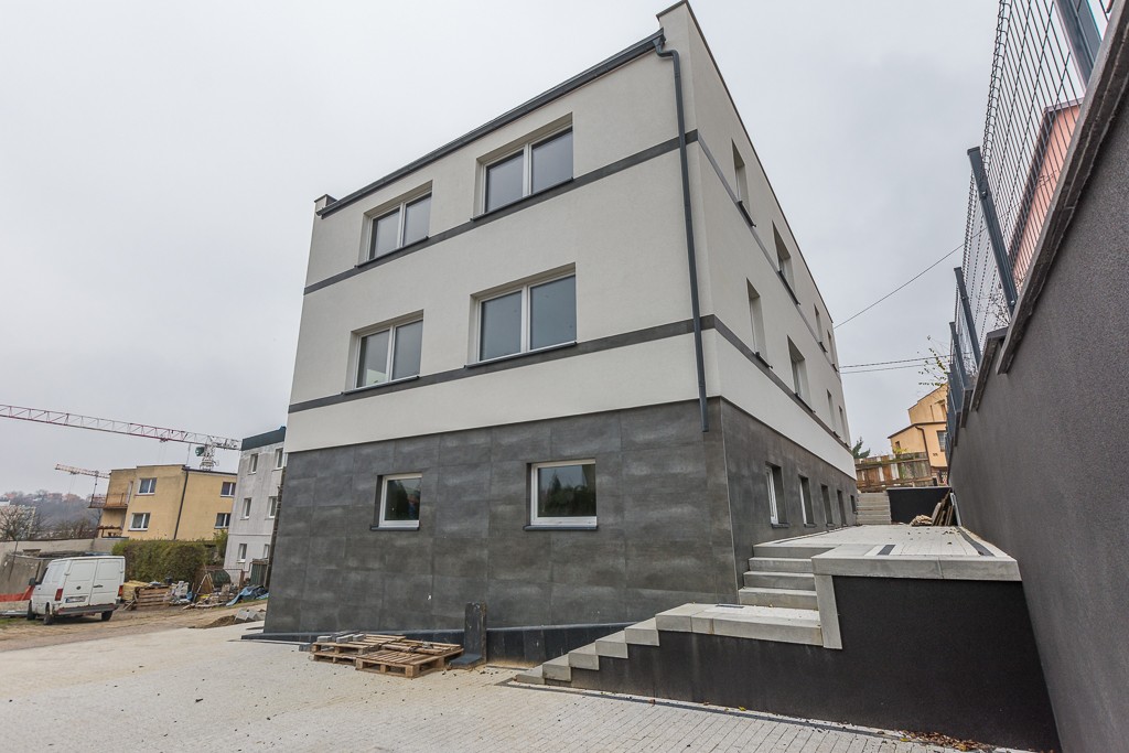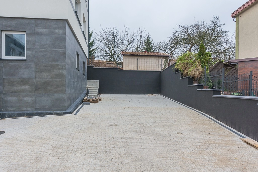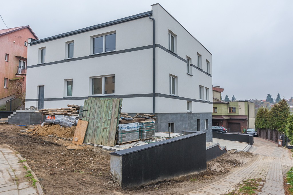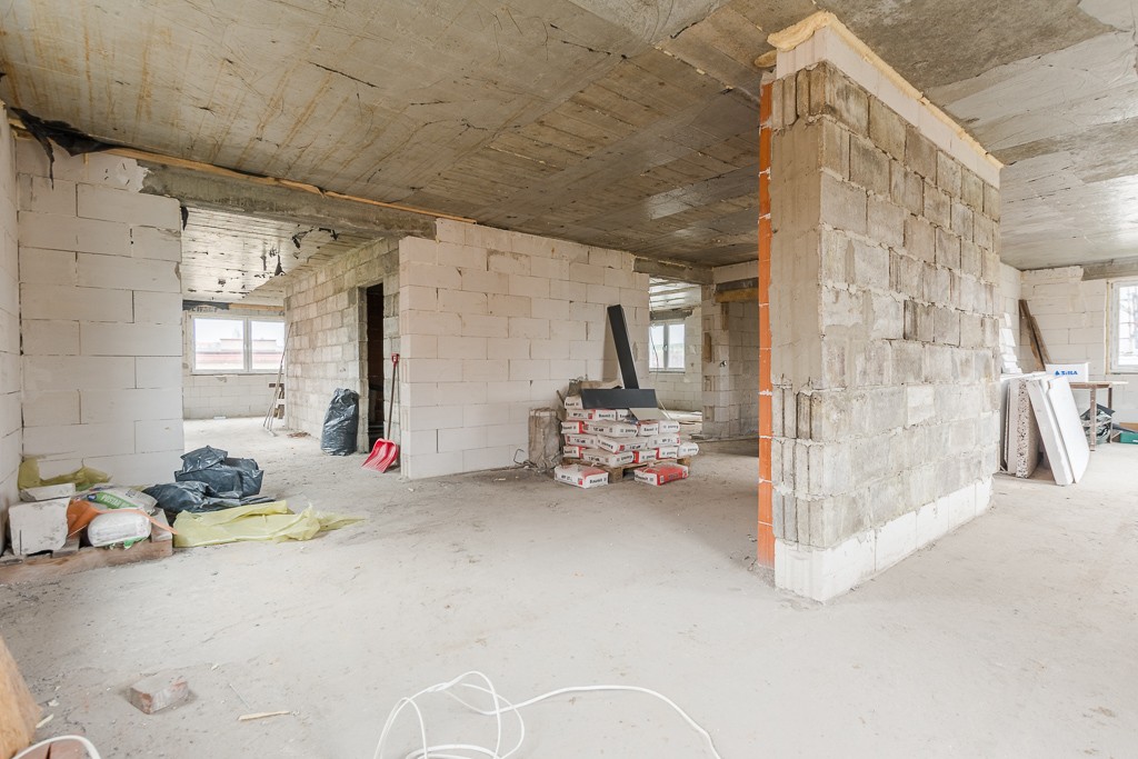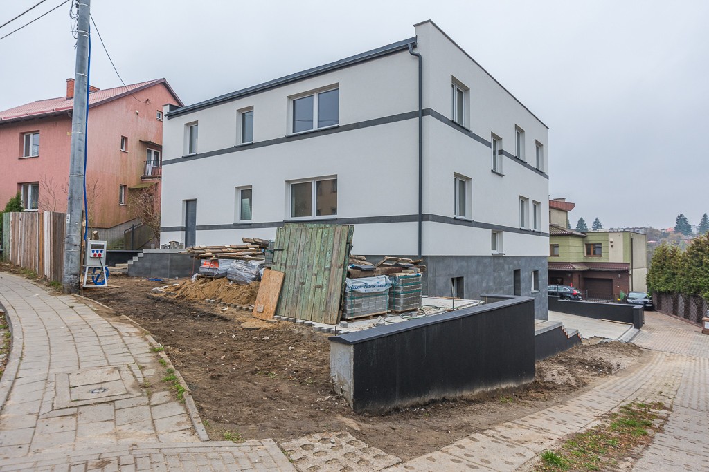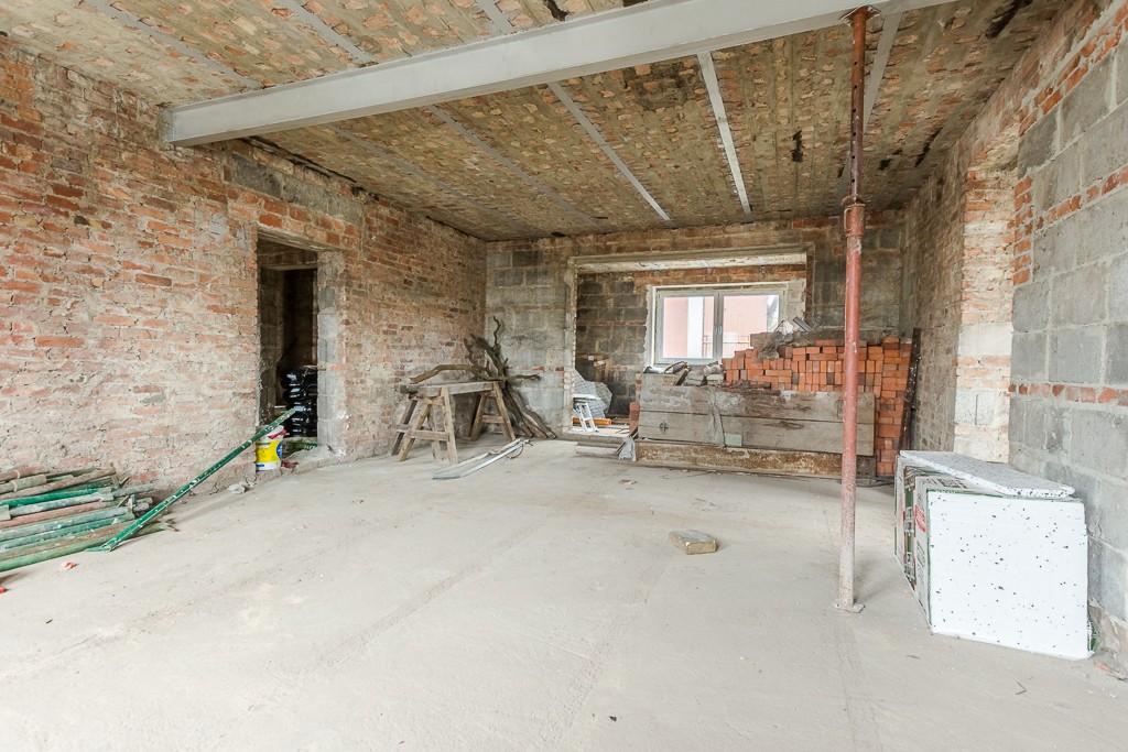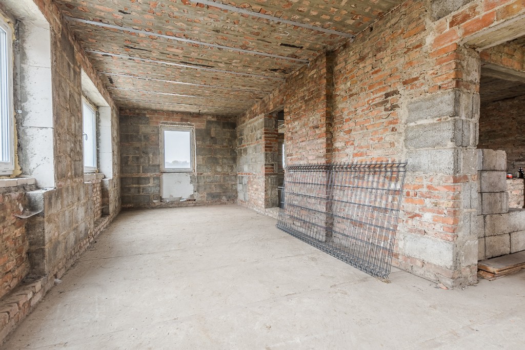 Nieruchomość ocieplona z wykonaną elewacją, teren wokół wyłożony kostką brukową. Wewnątrz do wykończenia- brak instalacji i tyków.