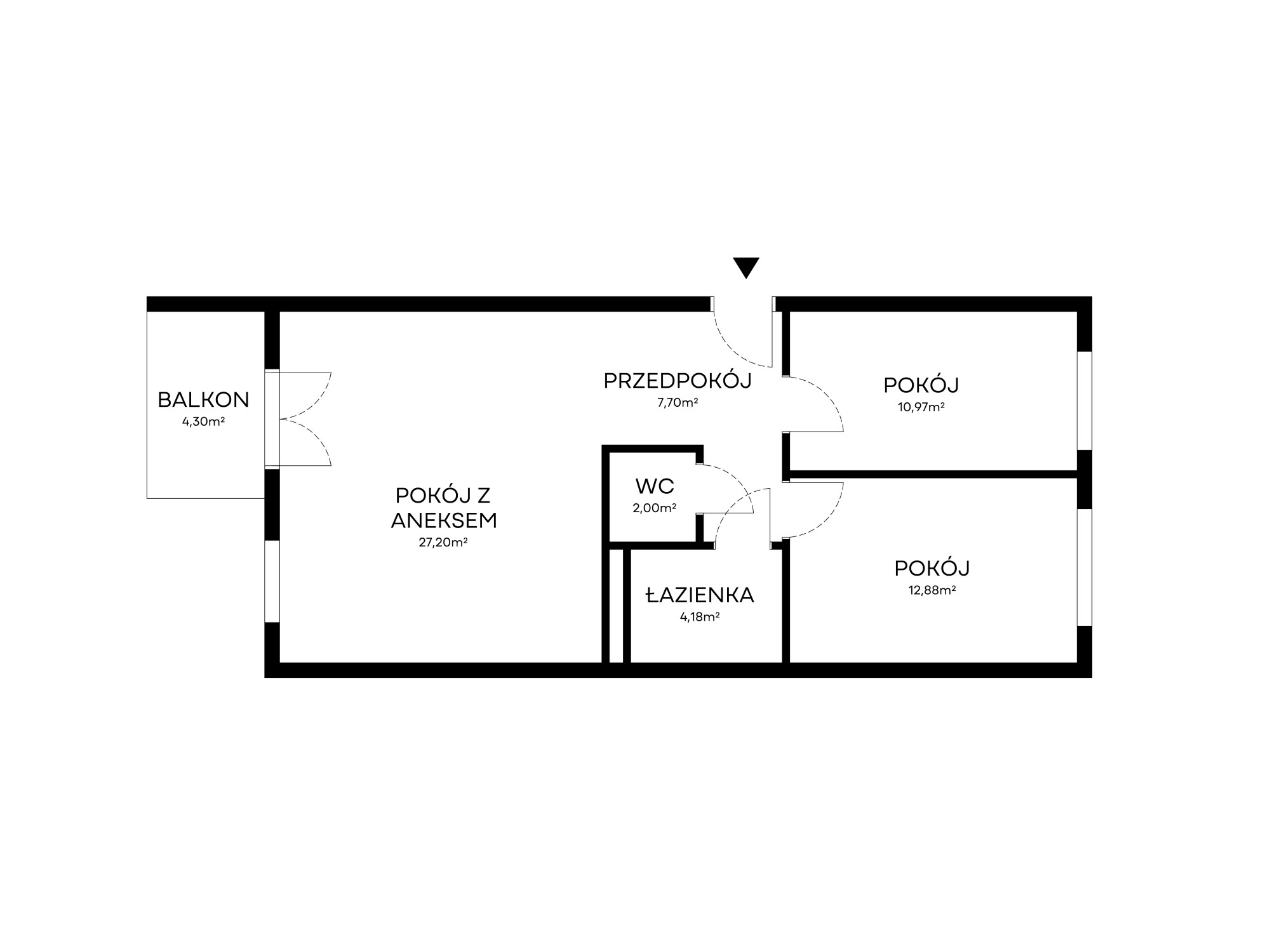 Dwustronne mieszkanie o powierzchni 66,5 m2, składające się z: