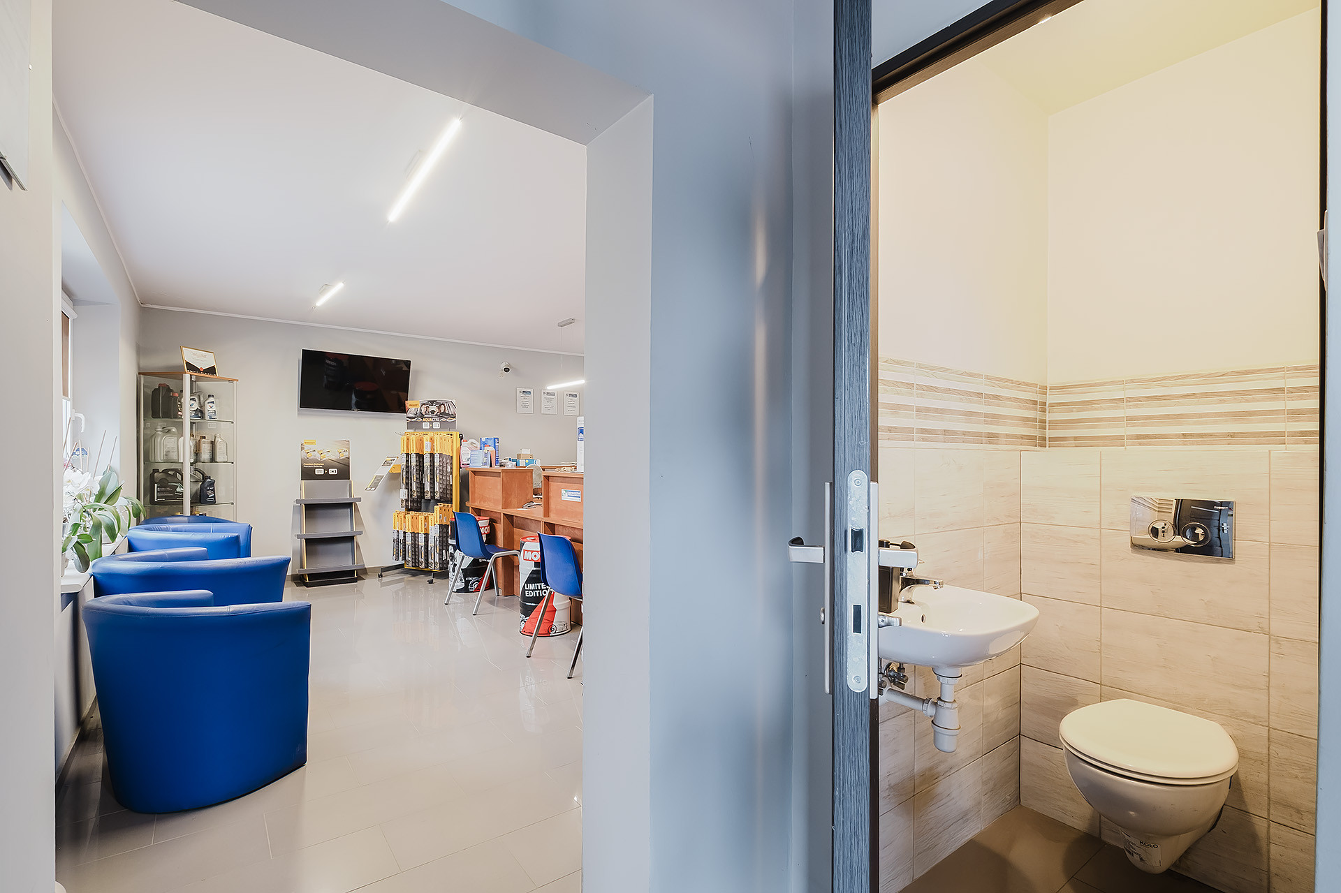 – wc (1,25 m2) z umywalką (dla klientów),