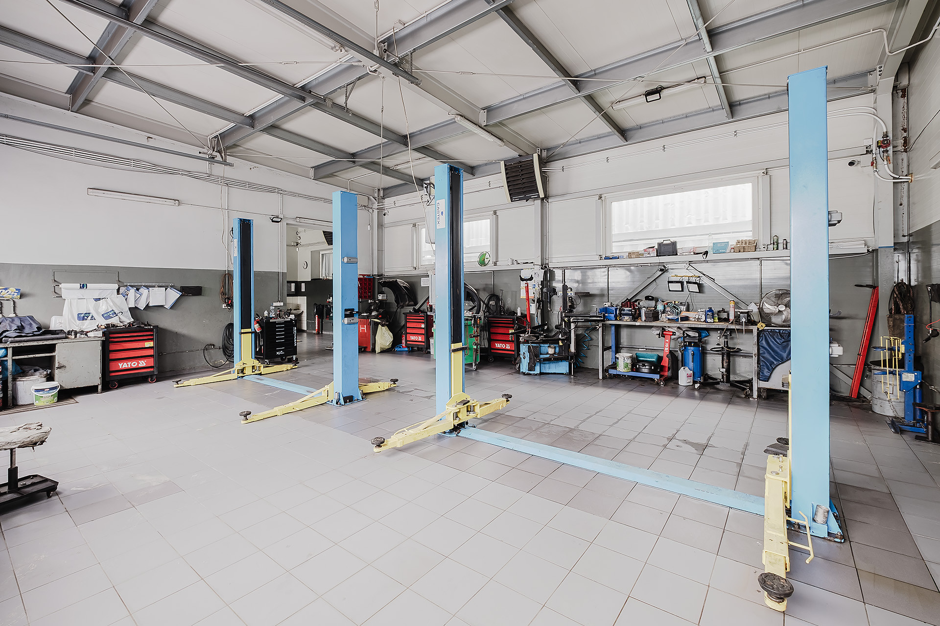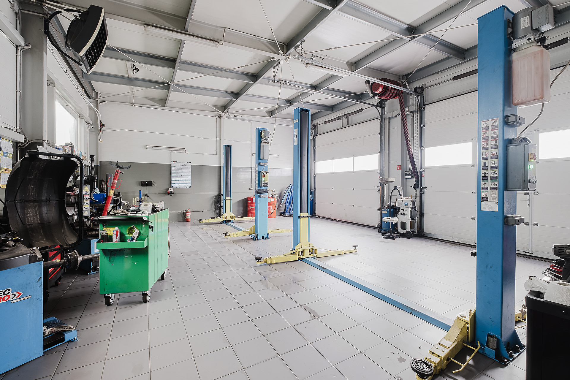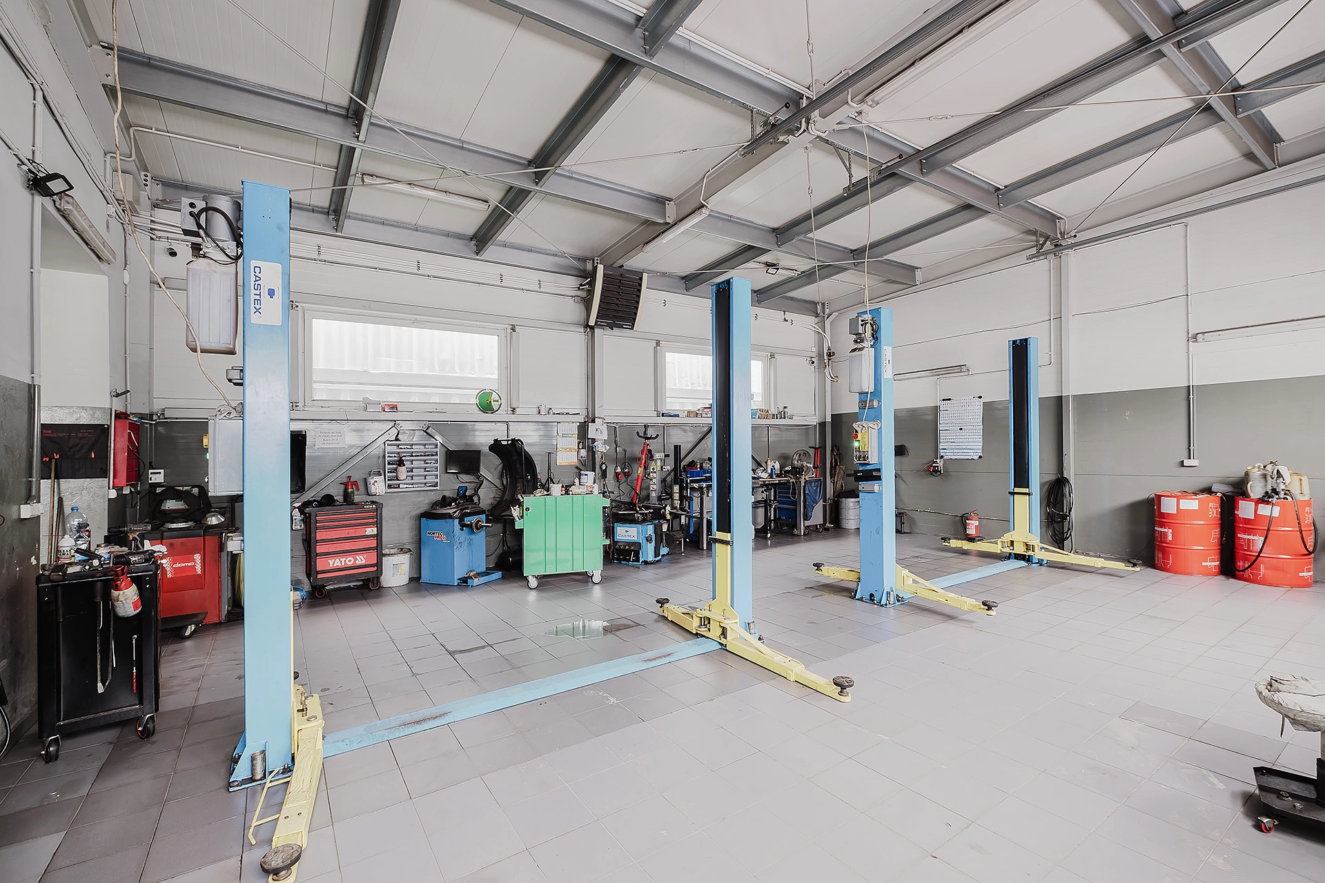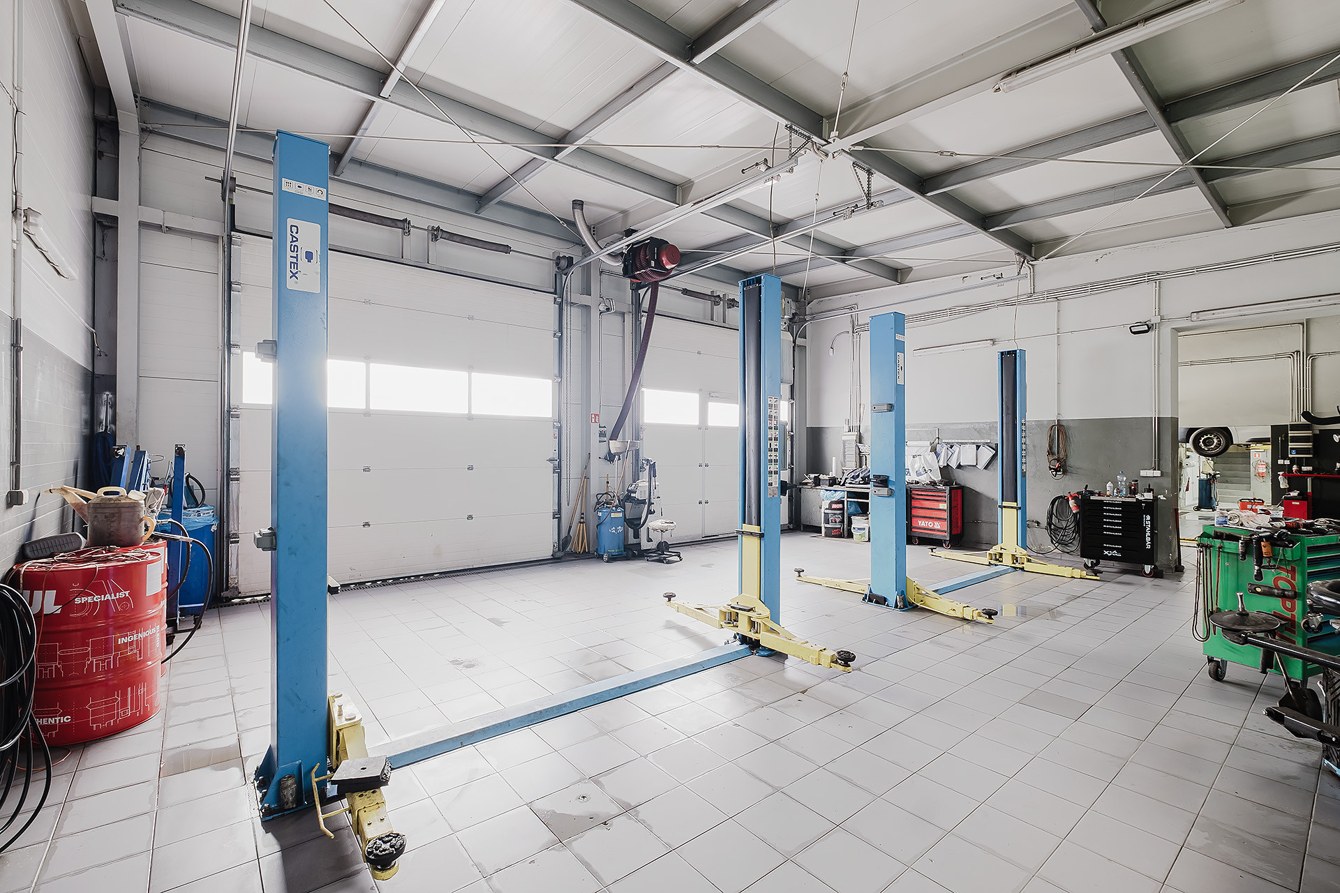 – 2 hale warsztatowe (49,88 m2 oraz 51,20 m2) mieszczące 5 stanowisk,