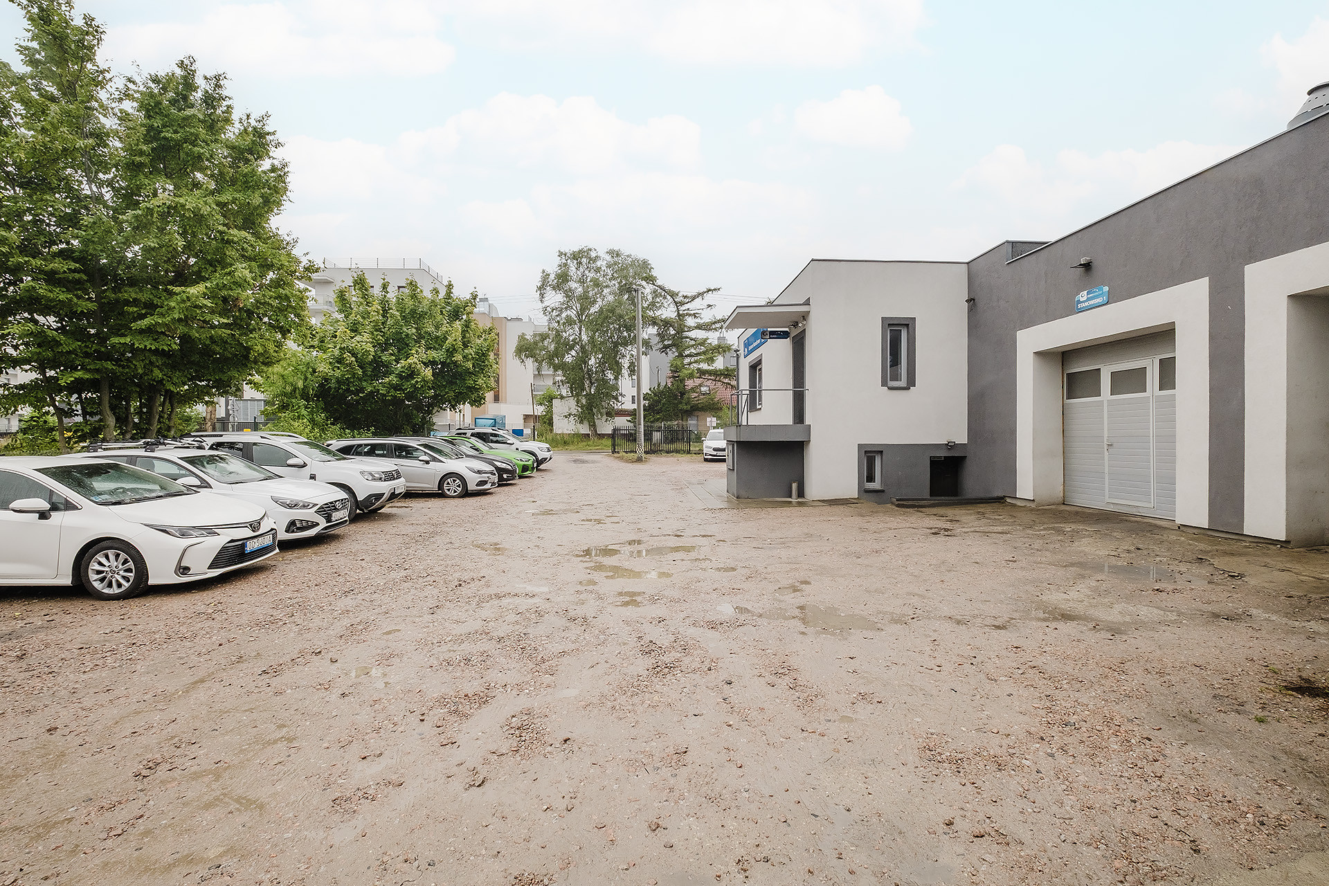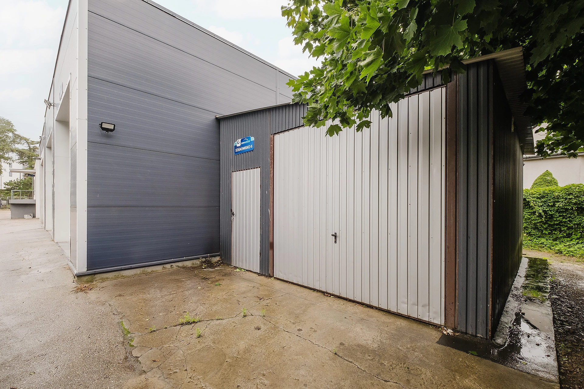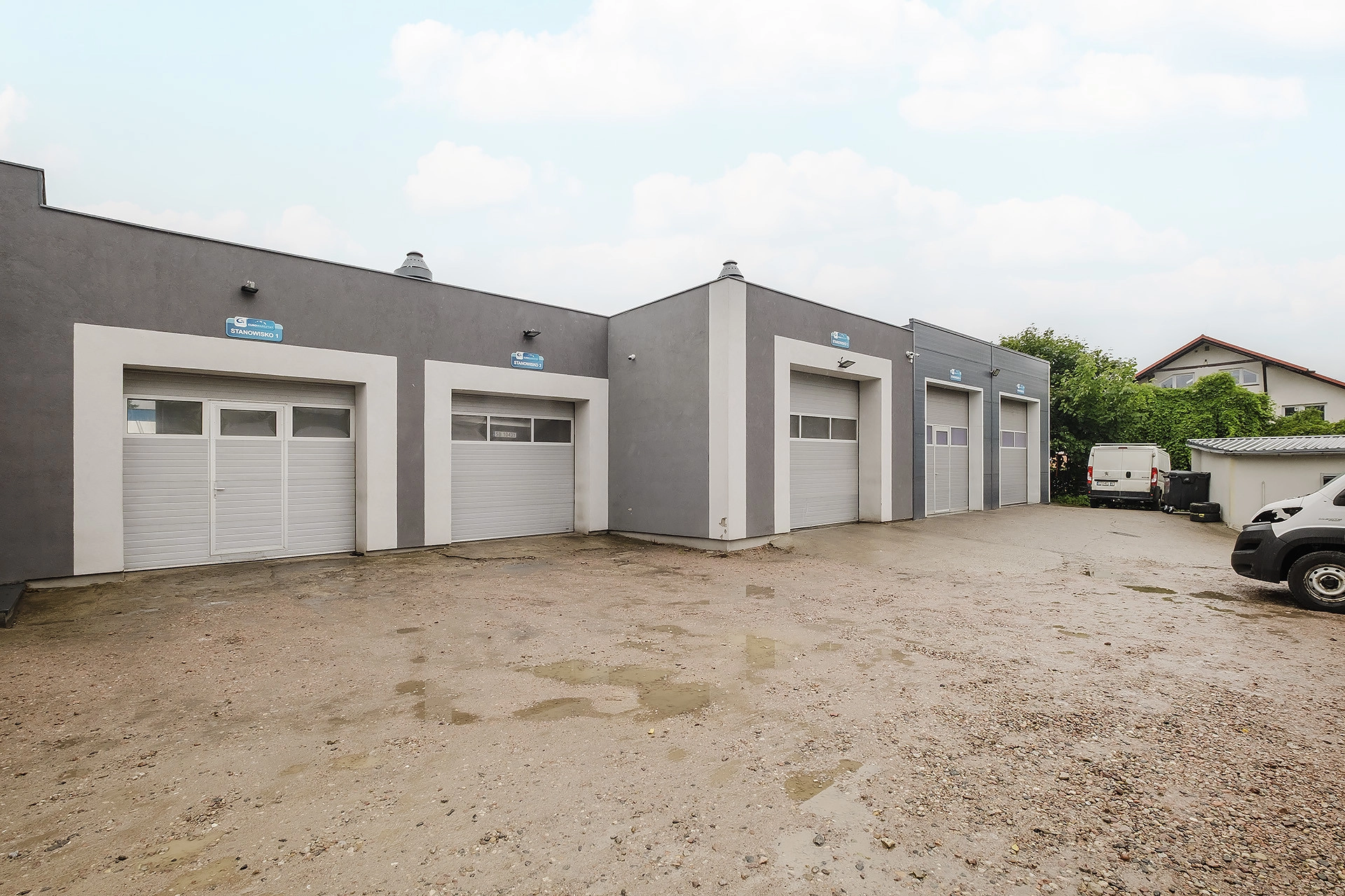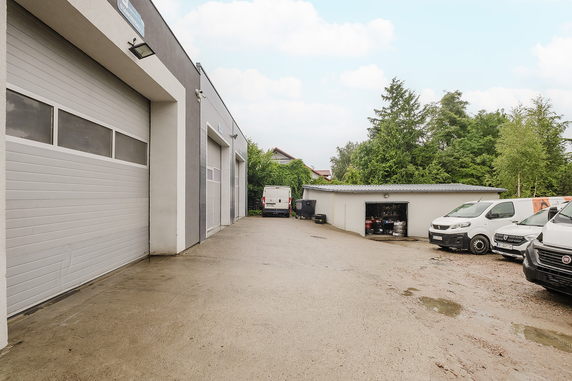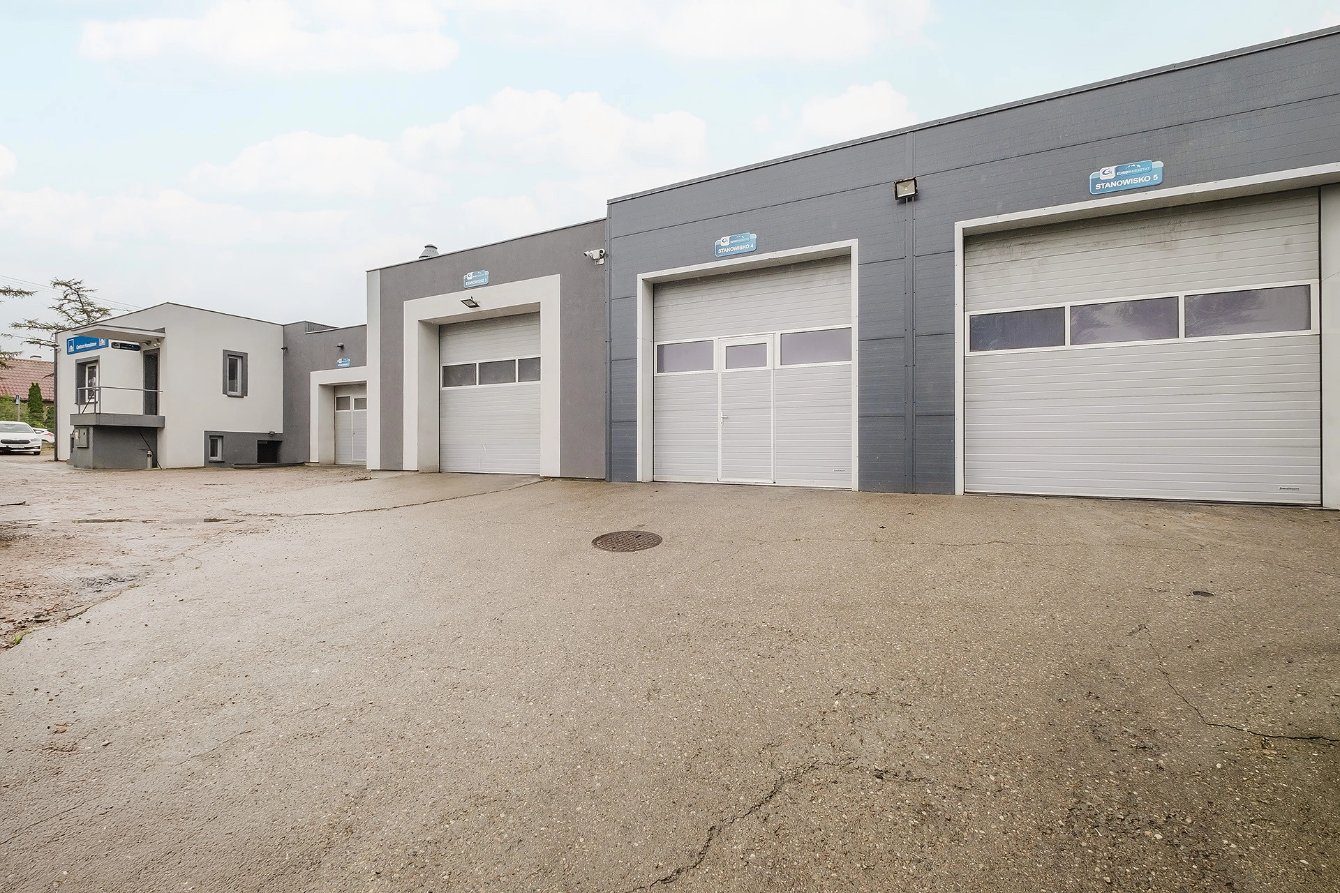 BUDYNEK: pierwotnie budynek stanowiła część biurowa, której budowę rozpoczęto w 1989 roku. Następnie, w roku 2015, obecny właściciel dobudował hale warsztatowe i stanowisko elektryka. Całość wykonana z gazobetonu, dach pokryty papą. Okna PCV, otwierane. Teren, na którym znajduje się warsztat, jest ogrodzony stalową siatką, a wjazd na niego odbywa się poprzez automatycznie otwieraną bramę. Wszystko monitorowane, podłączone pod funkcjonującą instalację alarmową. Na terenie nieruchomości znajdziemy ok. 20 miejsc postojowych.
