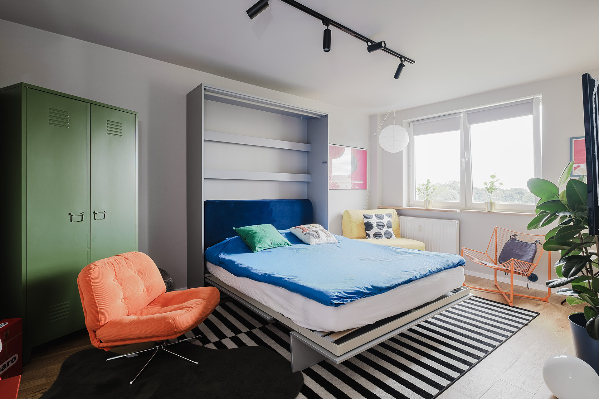 Mieszkanie przeszło generalny remont – od nowych instalacji po najdrobniejsze detale wystroju. Wszystko jest świeże, nowoczesne i gotowe na nowych właścicieli. Kuchnia w zabudowie na wymiar zachwyca funkcjonalnością i designem – zmywarka, piekarnik z funkcją mikrofali, lodówka z zamrażarką, płyta grzewcza – wszystko na gwarancji. W przedpokoju ukryto praktyczną szafę wnękową z pralką, a łazienka z prysznicem walk-in i odpływem liniowym zapewnia codzienny komfort. W części dziennej zastosowano inteligentne rozwiązania: wygodne łóżko/półkotapczan Lenart 160×200 oraz rozkładany fotel 90×200, dzięki czemu w komfortowych warunkach mogą nocować 2-3 osoby.