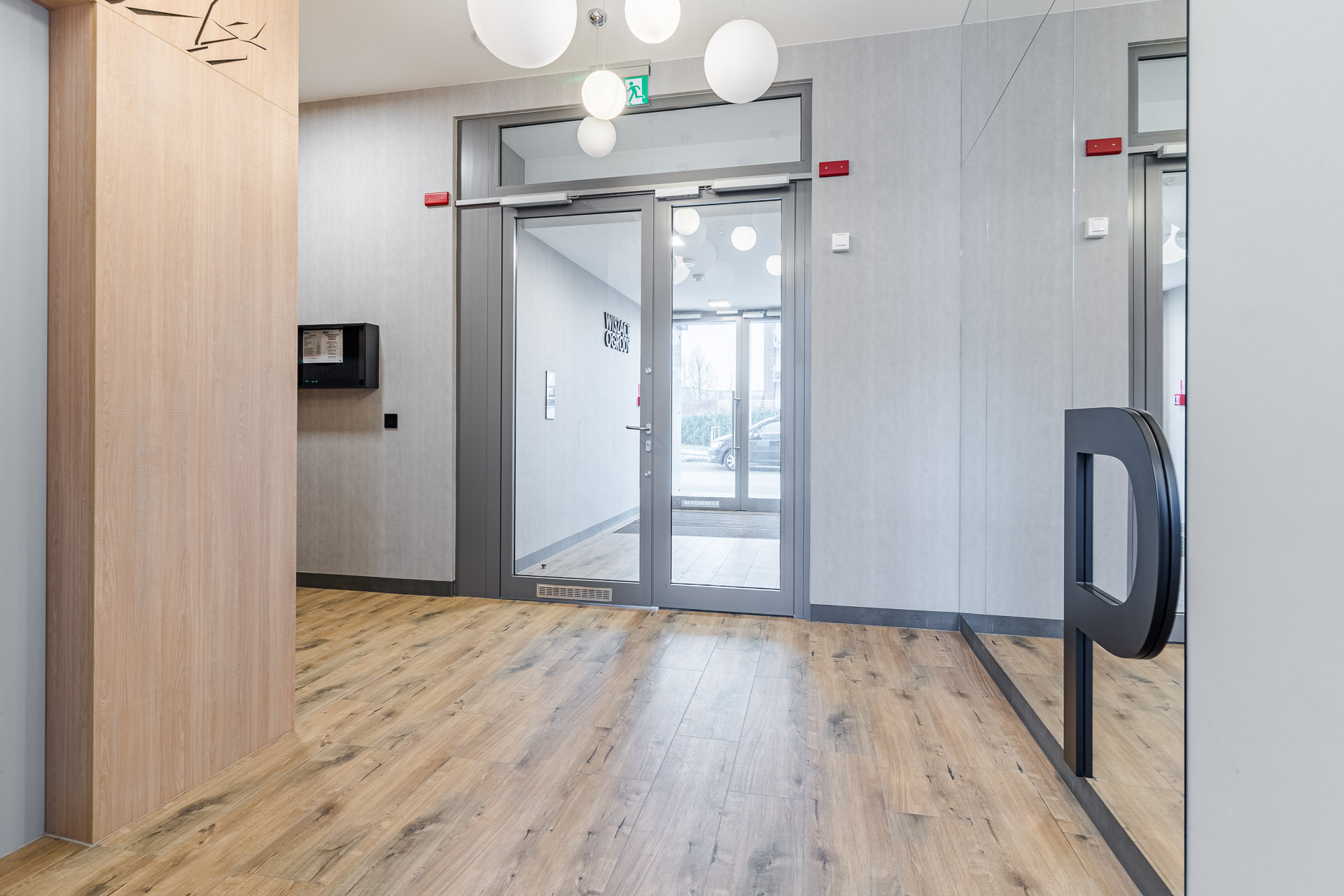 BUDYNEK: Nowy pięciopiętrowy blok o nowoczesnym wyglądzie. Budynek posiada m.in. cichobieżną windę, podjazd dla osób niepełnosprawnych, halę garażową.