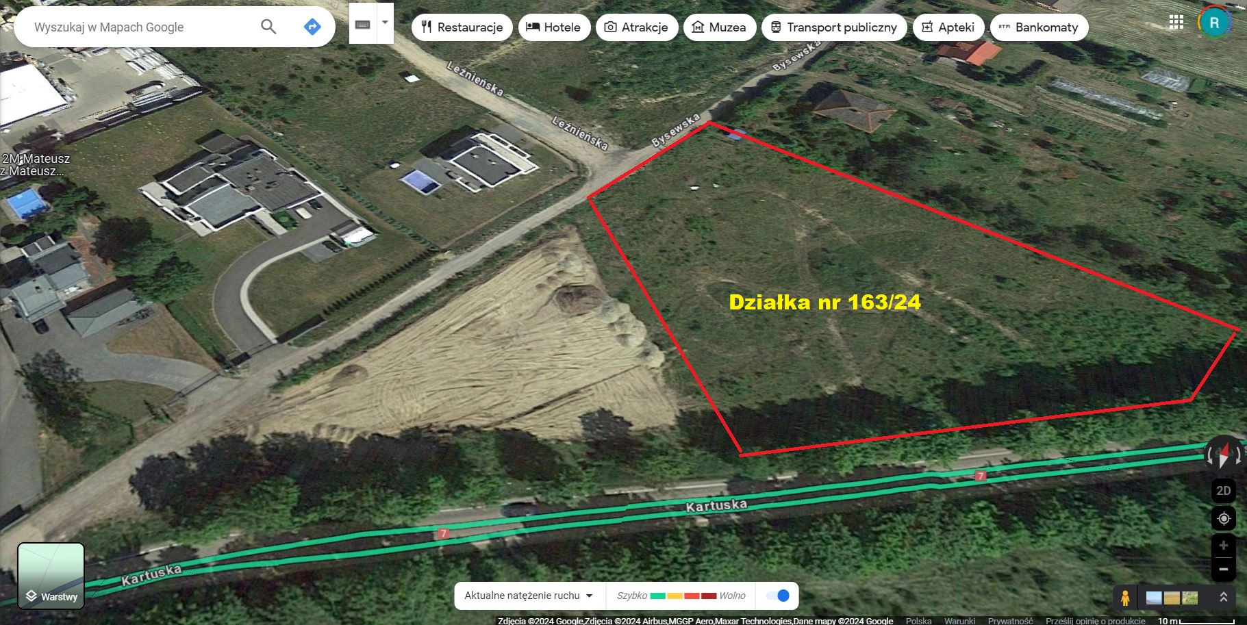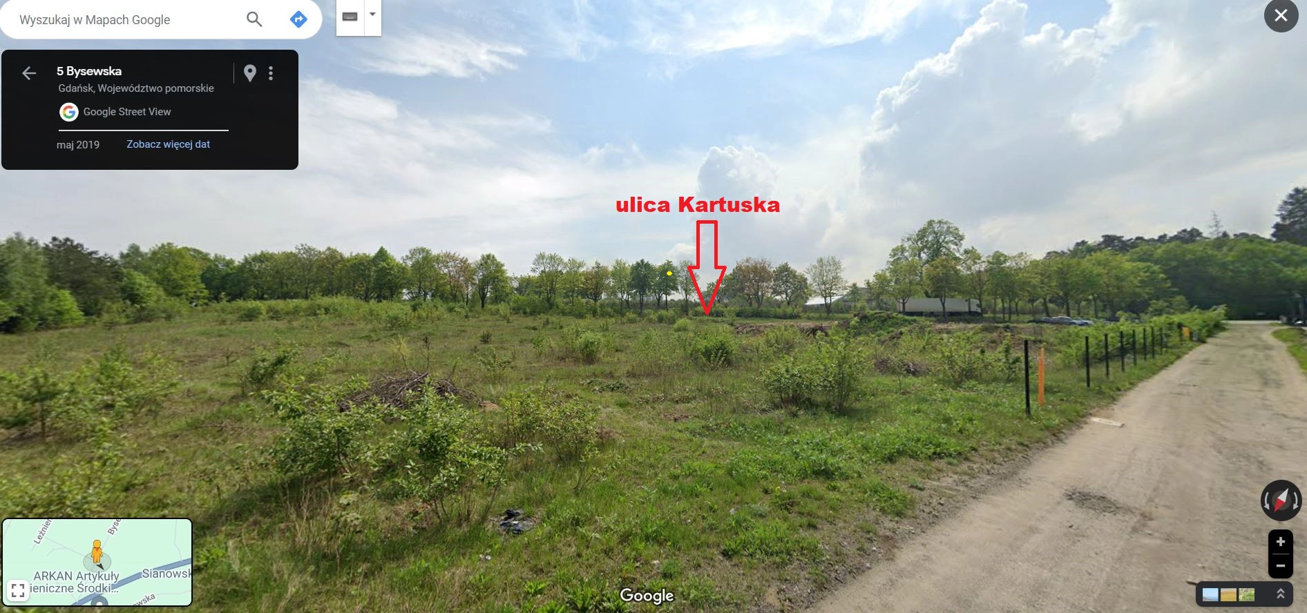 KOMUNIKACJA: Działka ulokowana bezpośrednio przy ulicy Kartuskiej, oraz ulicy Bysewskiej. Szybki dojazd do Obwodnicy Trójmiasta, Drogi S7, oraz A1, sprawia, że jest to miejsce do którego łatwo dojechać z wszystkich rejonów Gdańska, Sopotu, Gdyni, oraz innych miejscowości. Droga dojazdowa asfaltowa.