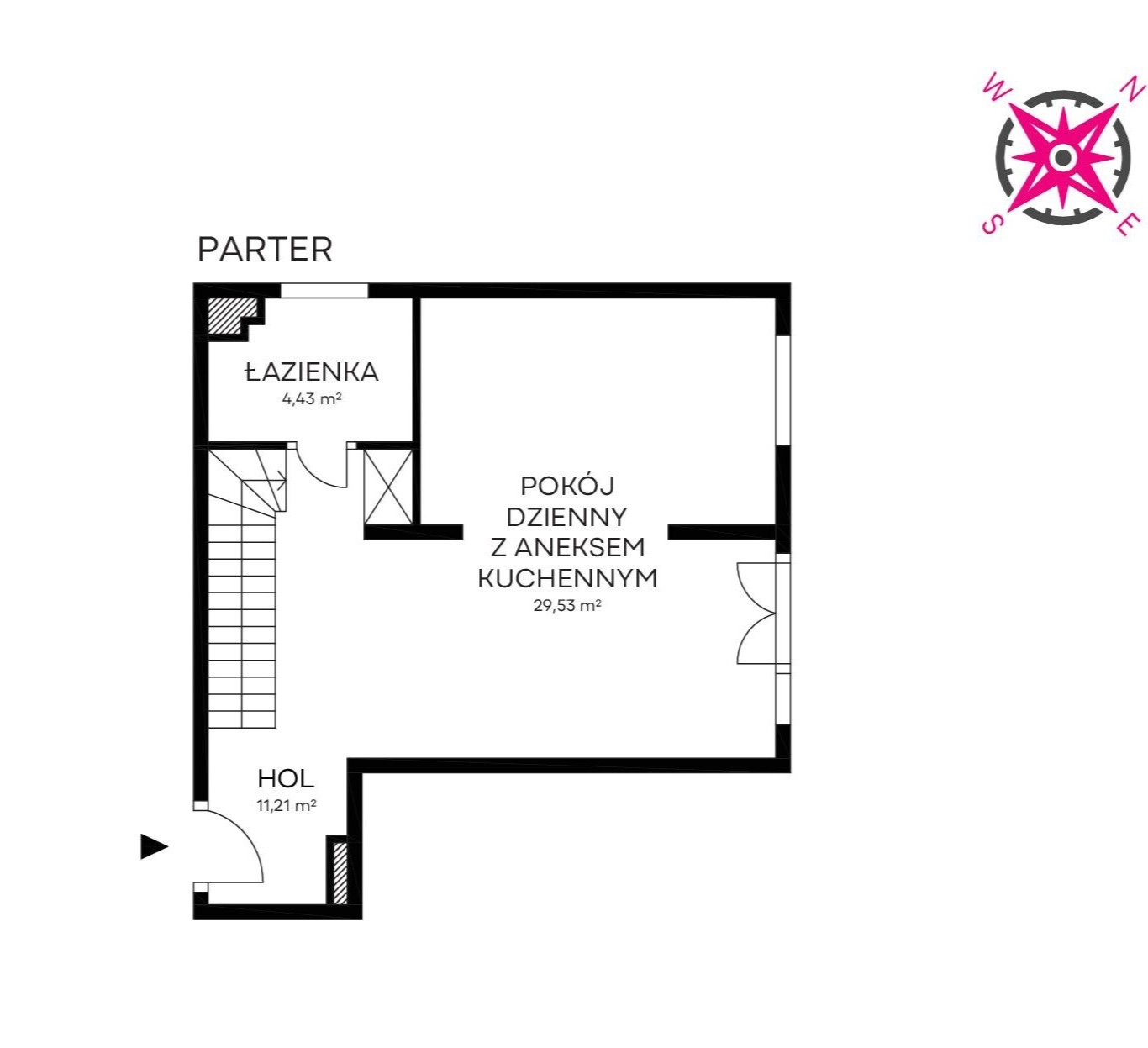 Okna PCV z wystawą skierowana na wschód (łazienki-zachód).