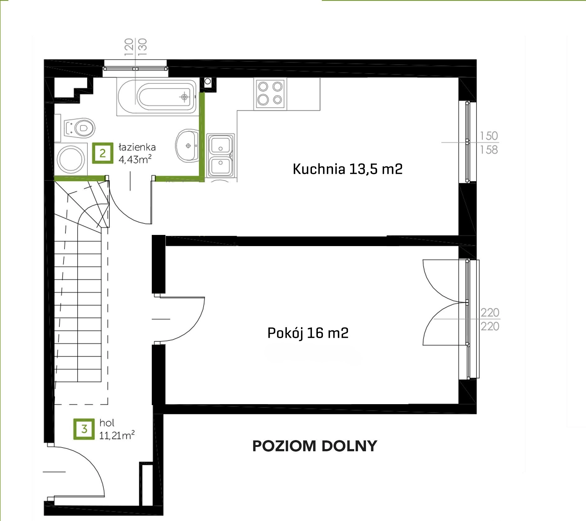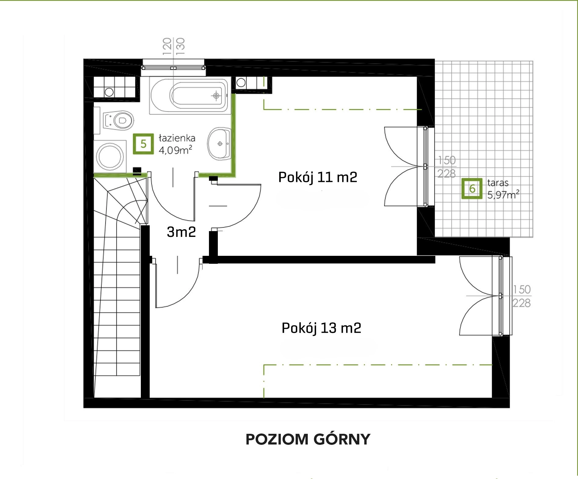 – dwie sypialnie o pow. ok 13m2 i 11 m2